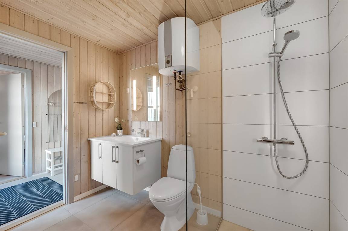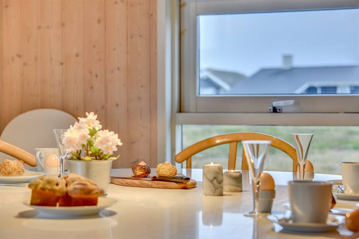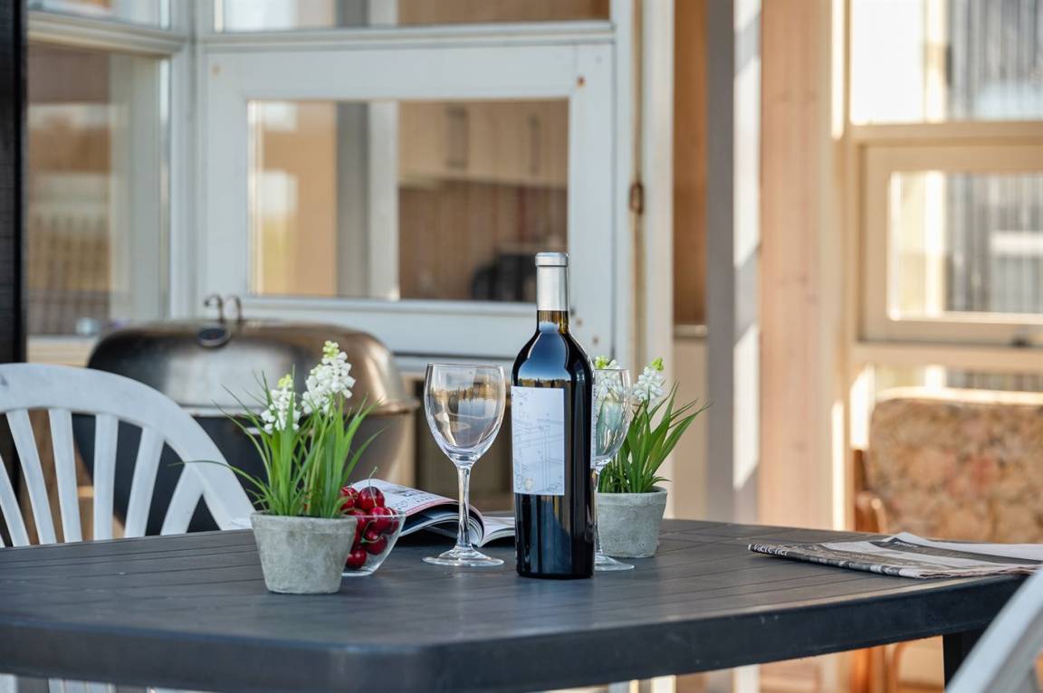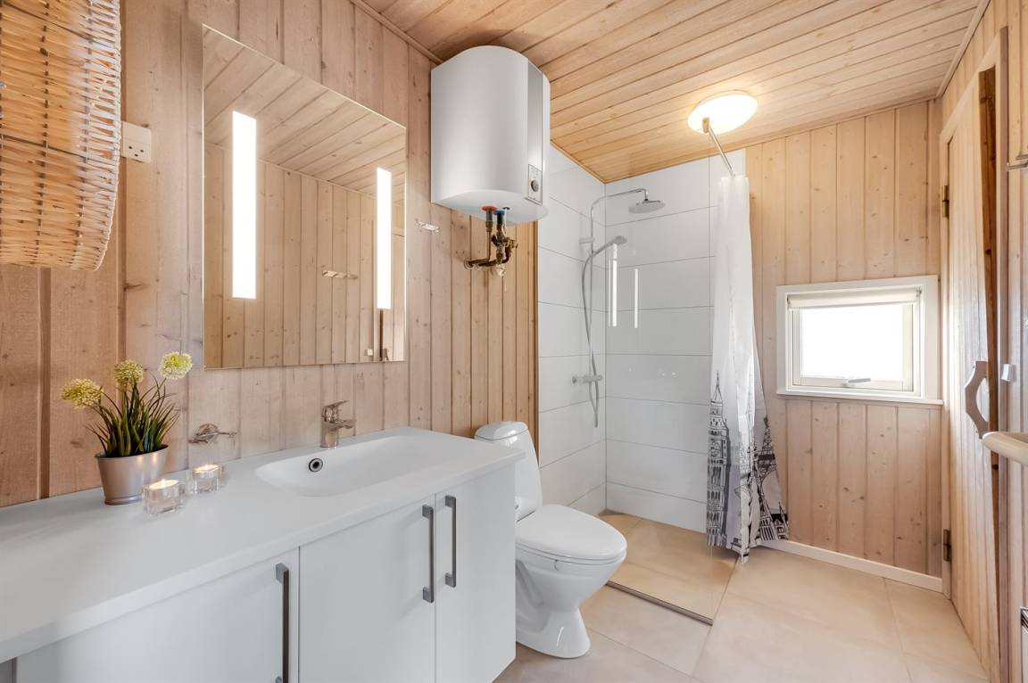 „Advice to other guests: Das Haus ist bestens für 6 Personen geeignet, für 8 Personen wird es am Esstisch sehr eng, ebenso im Wohnzimmer, da es dort nur 4 Sitzpätze gibt. Jedes Schlafzimmer hat einen bis zwei Kleiderschränke. Das modernere Bad hat leider einen sehr unangenehmen Geruch verbreitet, so dass wir auf das andere Bad bei der Sauna ausweichen mussten. (Sol og Strand konnte das Problem leider nicht lösen.) Diese Dusche war extremst verkalkt u staubig. Das warme Wasser aus dem Wasserboiler reicht für max 2 Personen zum Duschen. Die Sauna muss vor Benutzung ausgeräumt werden. Die Rattansessel, ebenso wie der einzige Ledersessel im Wohnzimmer haben schon deutlich bessere Tage gesehen. Die Ausstattung der Küche war gut, ein wenig mehr Töpfe mit passendem Deckel wäre Luxus gewesen. Die Aufteilung der Zimmer hat uns sehr gut gefallen. Die drei Terrassen konnten wir passend zur Tageszeit und Wetter sehr gut nutzen. Die Nähe zum Meer ist einfach spitze. Cleanliness: Klobrille war voll mit eingetrocknetem Putzmittel versehen die Sauna verstaubt Backbleche und Backofen waren schmutzig die Dusche in dem Bad dirket neben der Haustüre war ecklig verstaubt u verkalkt. The holiday home itself: Auf den Fotos stimmten die Anzahl der Sitzplätze nicht mit der Realität überein. Es wurde ein Sofa entnommen. Die Rattansessel weißen einen verschlissen Stoff auf Die Sauna muss für die Benutzung erst ausgeräumt werden, da diverse Dinge drin stehen Die Stühle am Eßtisch waren für die Tischhöhe zu hoch und sehr unbequem Klasse war, dass jedes Schlafzimmer einen eigenen Kleiderschrank hatte die Betten waren sehr bequem“