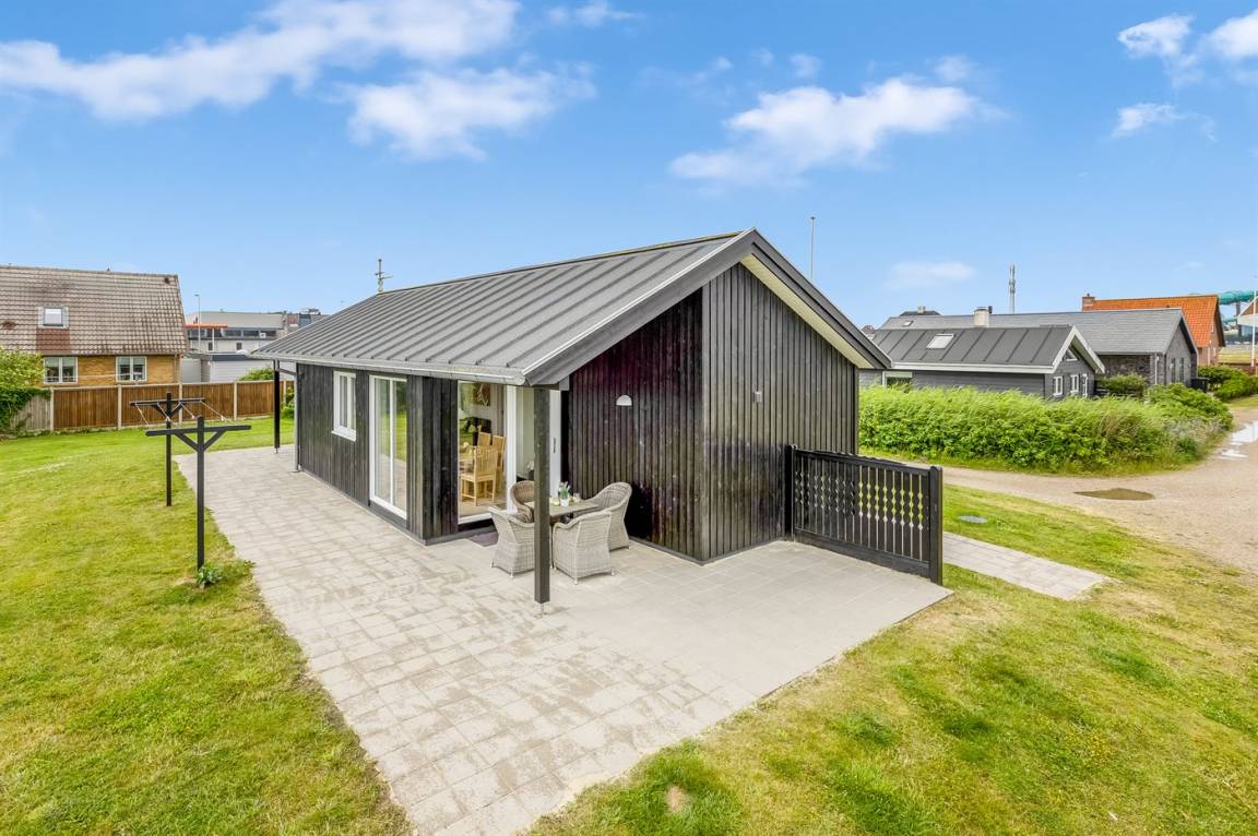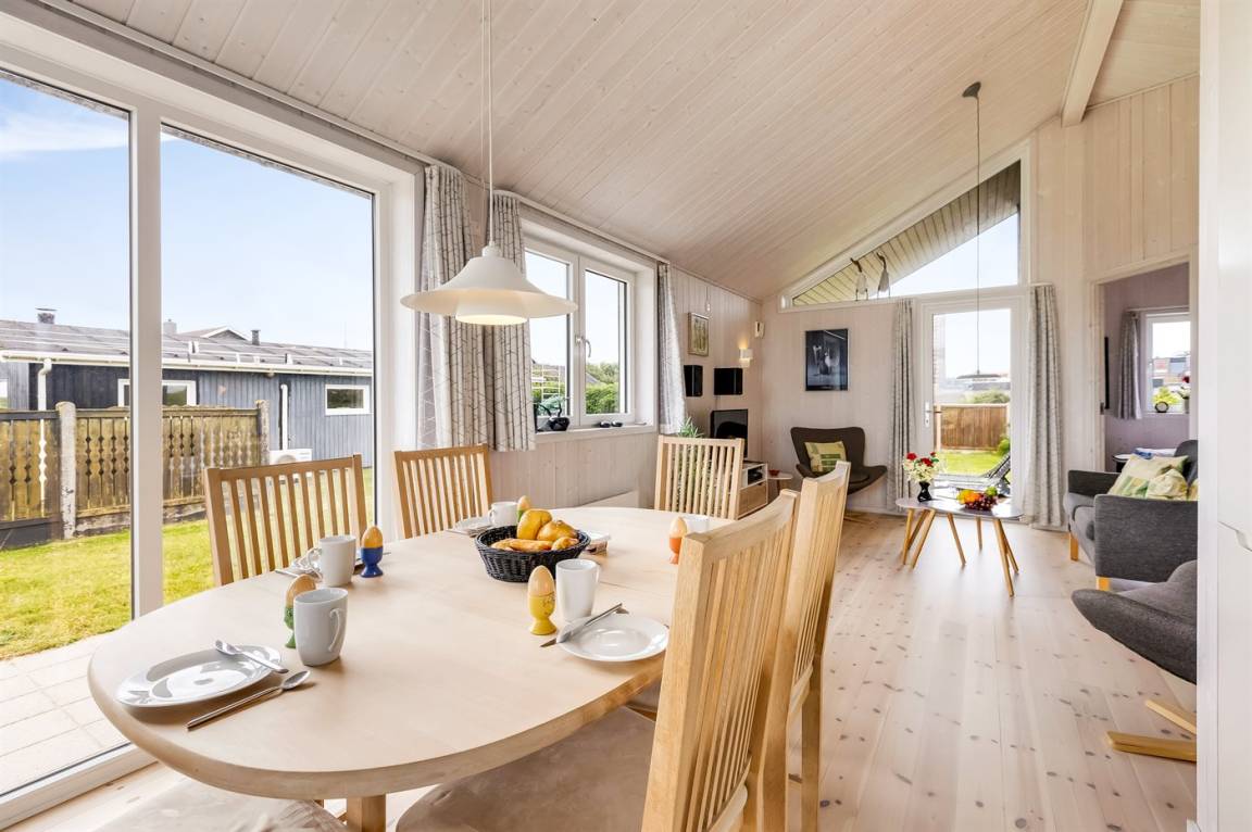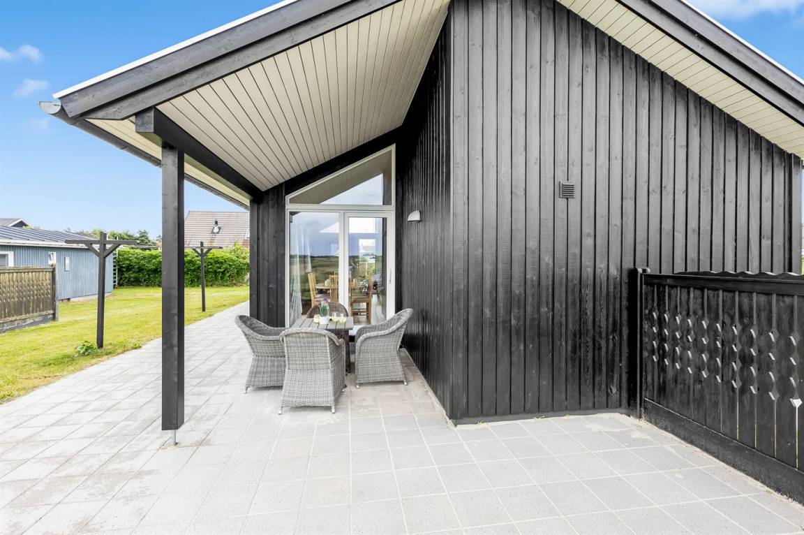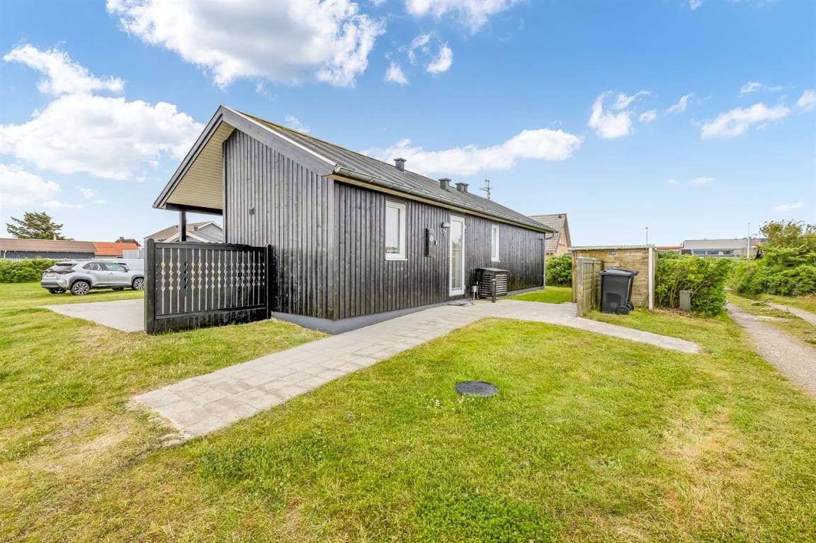 DraußenDie Ferienunterkunft liegt auf einem 1500 m² großen Naturgrundstück. Die Entfernung zum Meer beträgt 700 m. Die Entfernung zum Fjord beträgt 800 m. Die nächste Einkaufsmöglichkeit liegt 150 m entfernt. In einem Abstand von 700 m gibt es einen Golfplatz. Es steht ein 20 m² Terrassenareal zur Verfügung. Außerdem gibt es 20 m² überdachte Terrasse. Es steht ein Grill zur Verfügung. Parkplatz auf dem Grundstück.