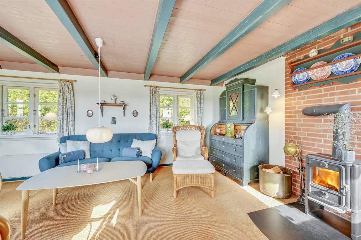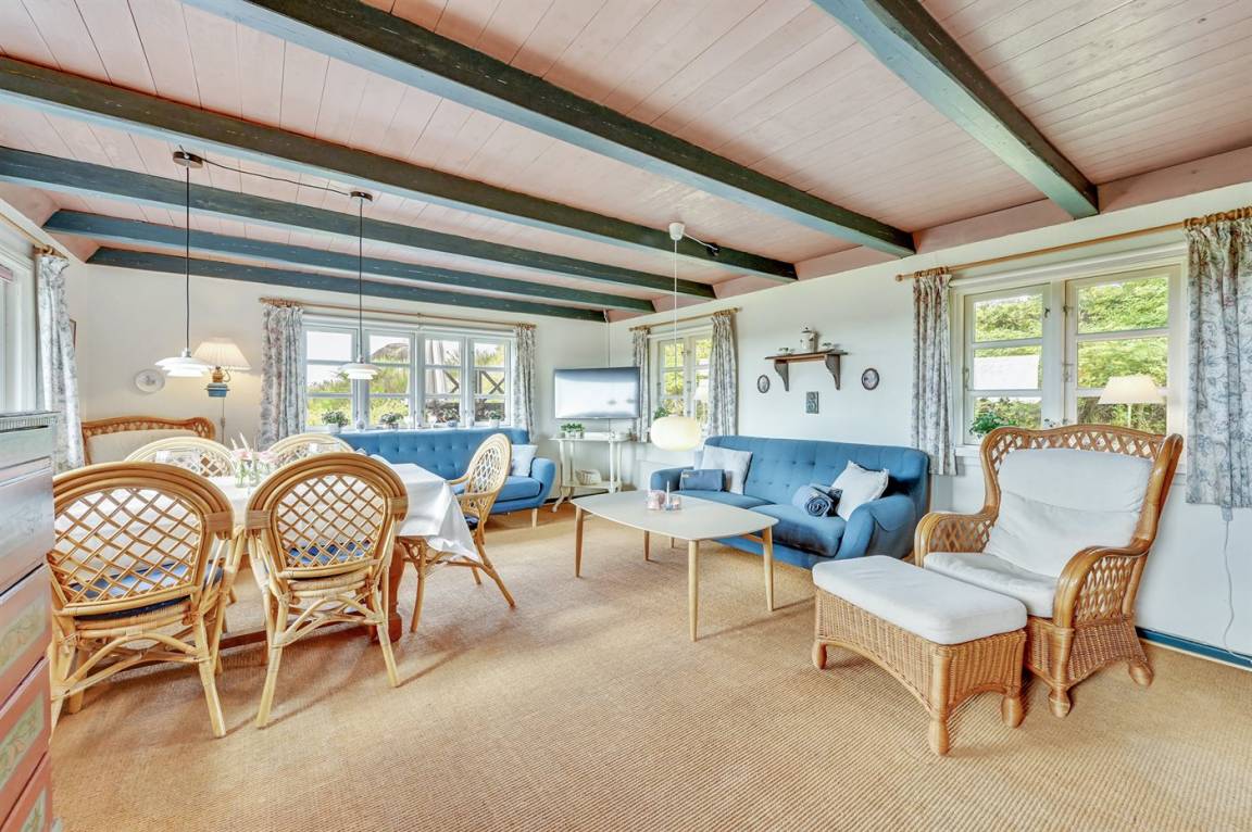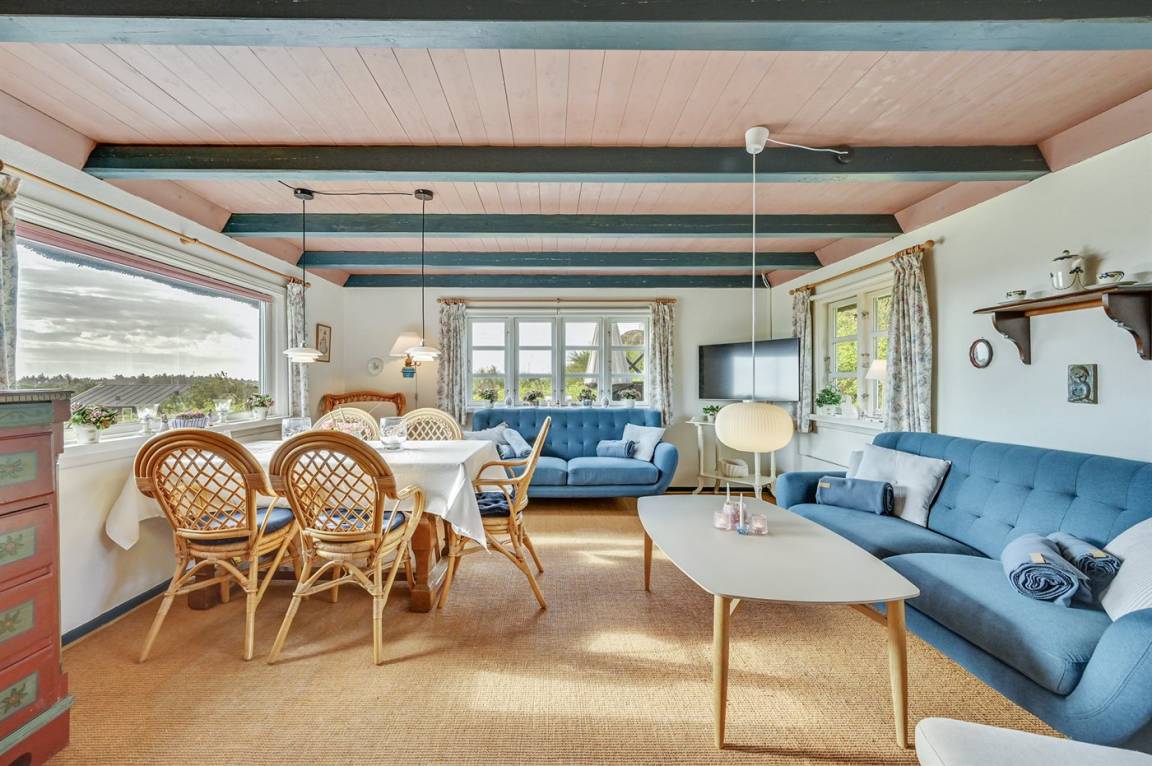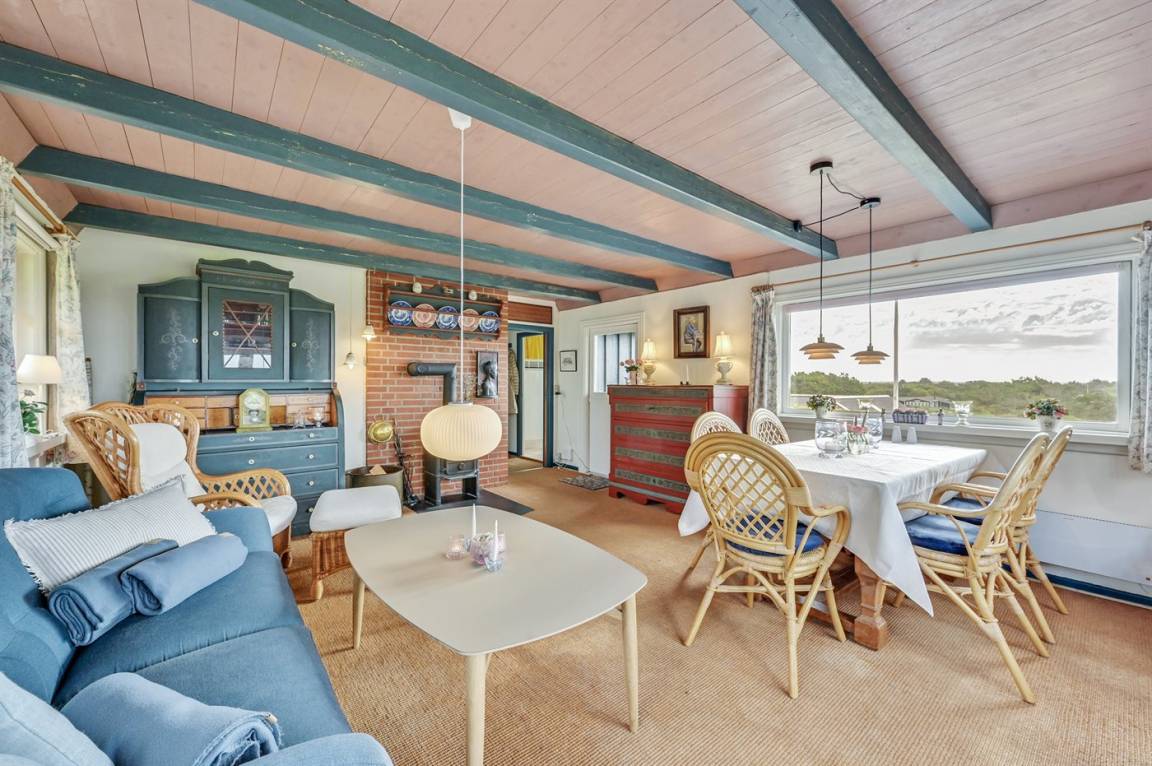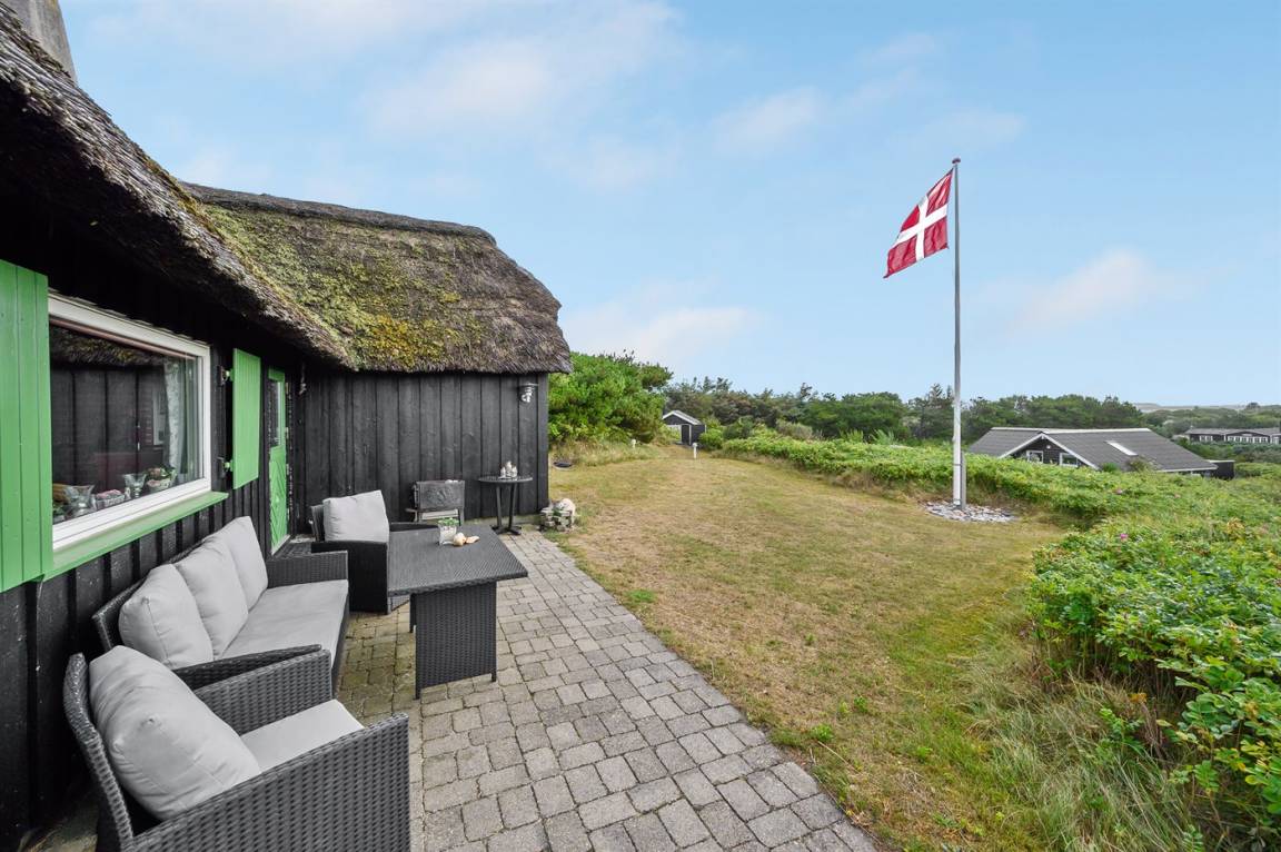 DraußenDie Ferienunterkunft liegt auf einem 1400 m² großen Dünengrundstück. Die Entfernung zum Meer beträgt 300 m. Die Entfernung zum Fjord beträgt 1500 m. Die nächste Einkaufsmöglichkeit liegt 500 m entfernt. Es steht ein 35 m² Terrassenareal zur Verfügung. Schaukel. Parkplatz auf dem Grundstück.
