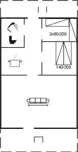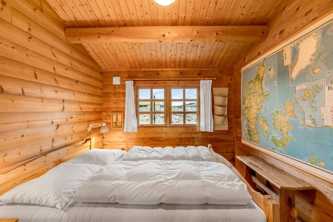 Die Schlafplätze verteilen sich auf 1 Zimmer mit Doppelbett und 1 Zimmer mit 2 Einzelbetten. Ein Ferienhaus mit einer schönen Lage - nur 5 Min. Fahrt vom Badeort Søndervig entfernt.