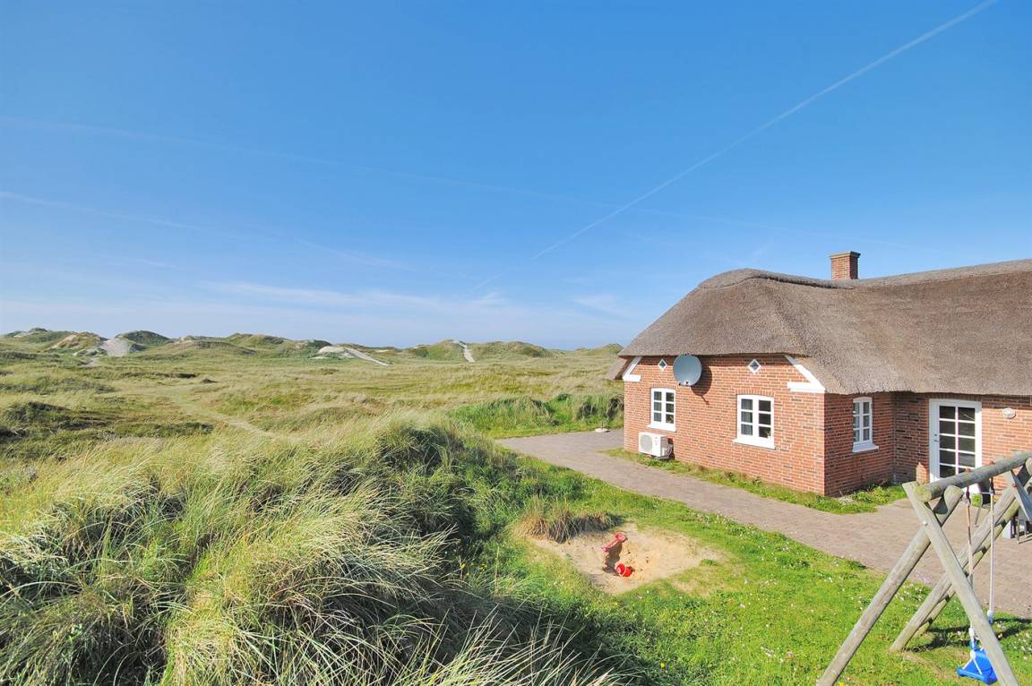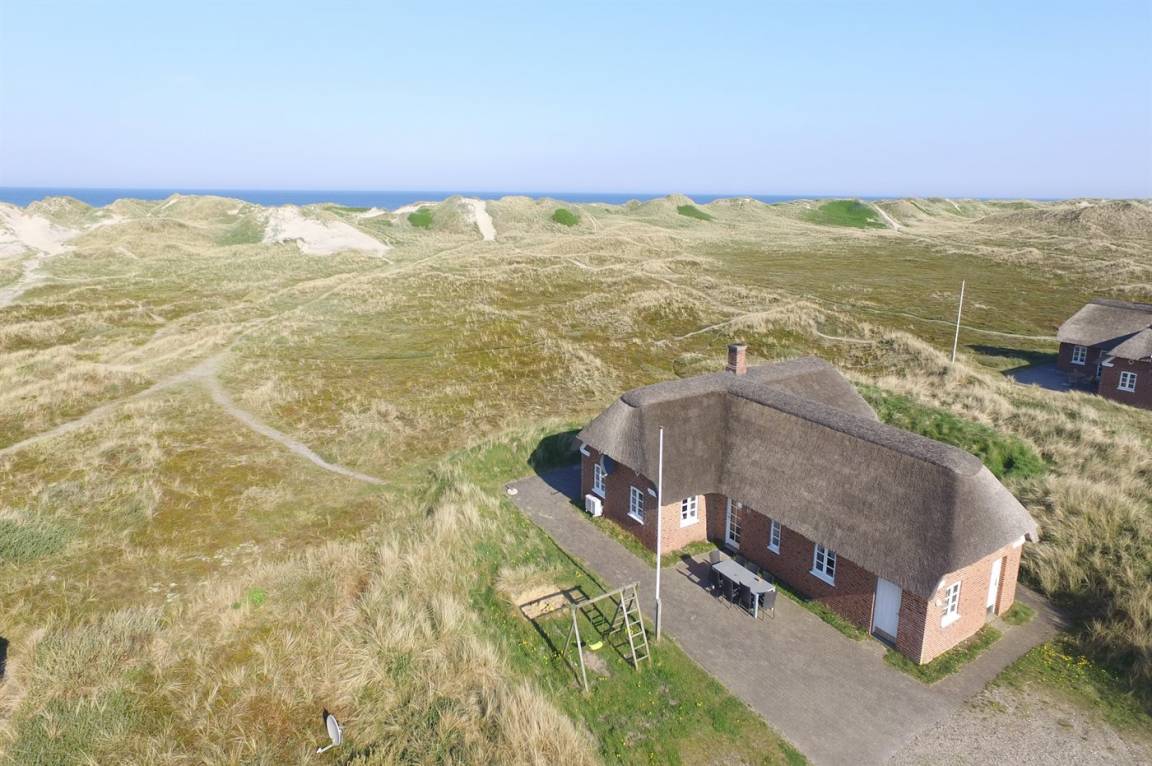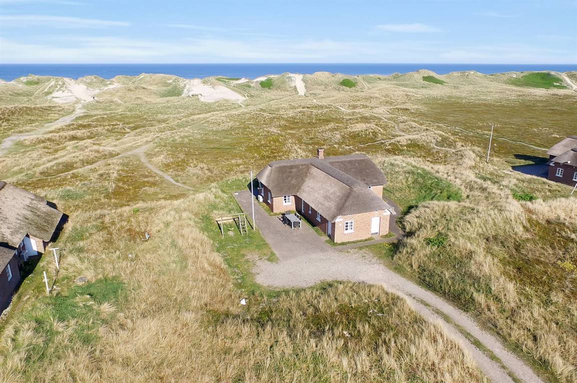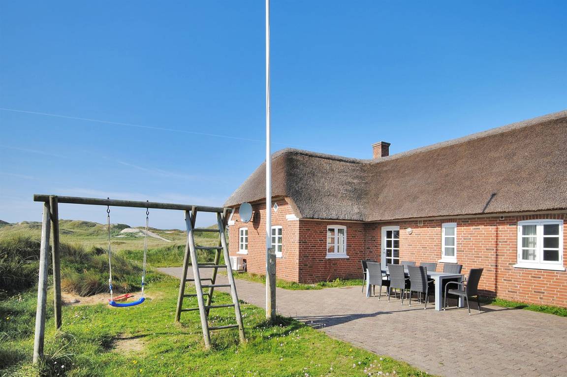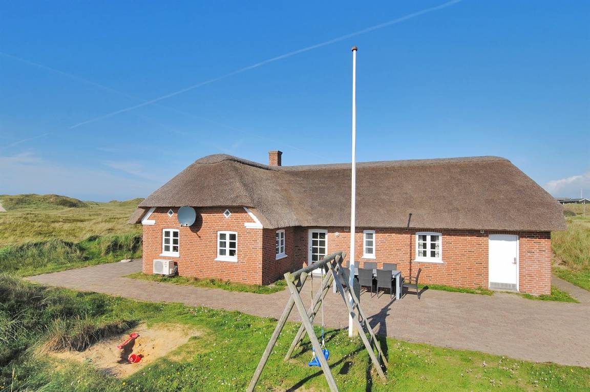 DraußenDie Ferienunterkunft liegt auf einem 2300 m² großen Dünengrundstück. Die Entfernung zum Meer beträgt 200 m. Die nächste Einkaufsmöglichkeit liegt 900 m entfernt. Es steht ein 85 m² Terrassenareal zur Verfügung. Schaukel. Sandkasten. Parkplatz auf dem Grundstück.
