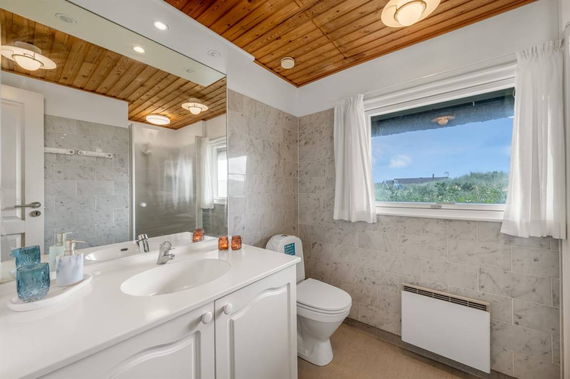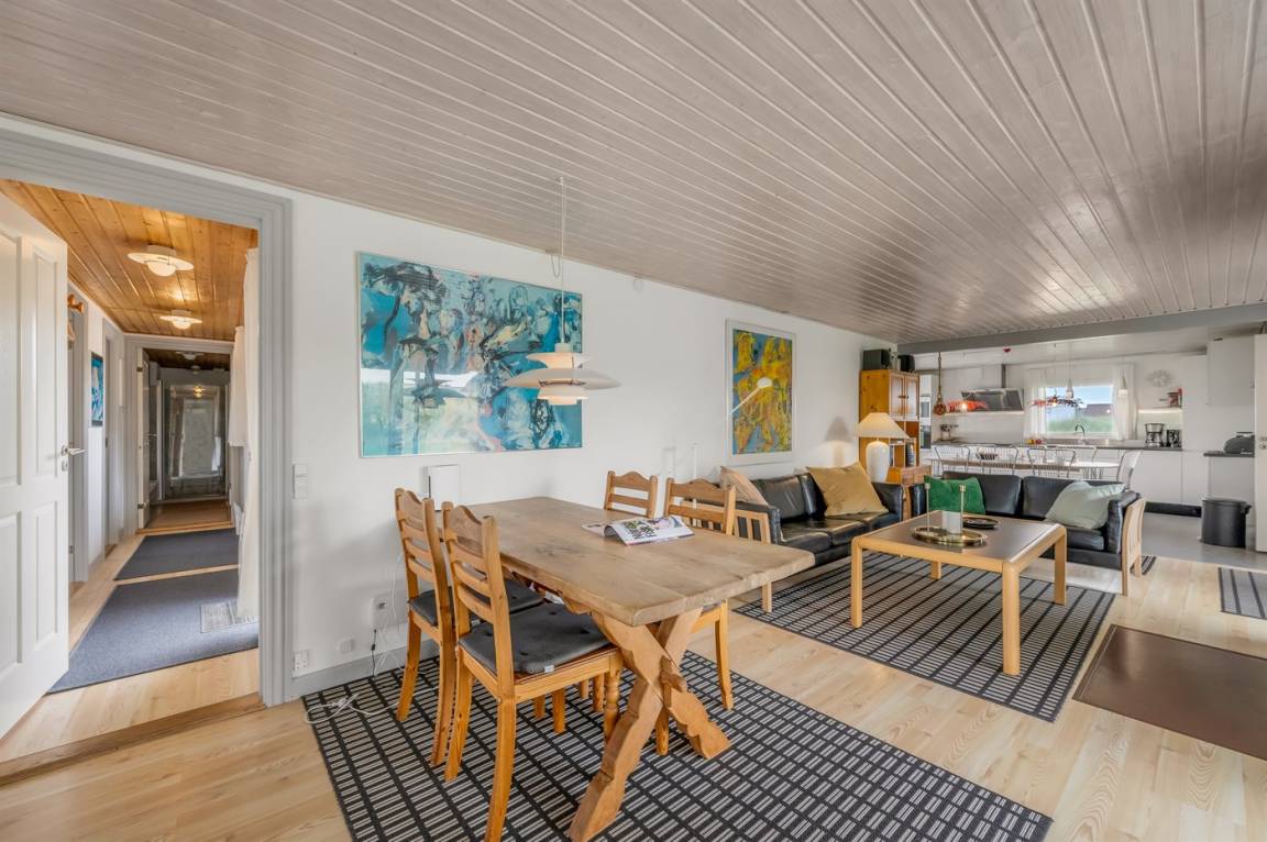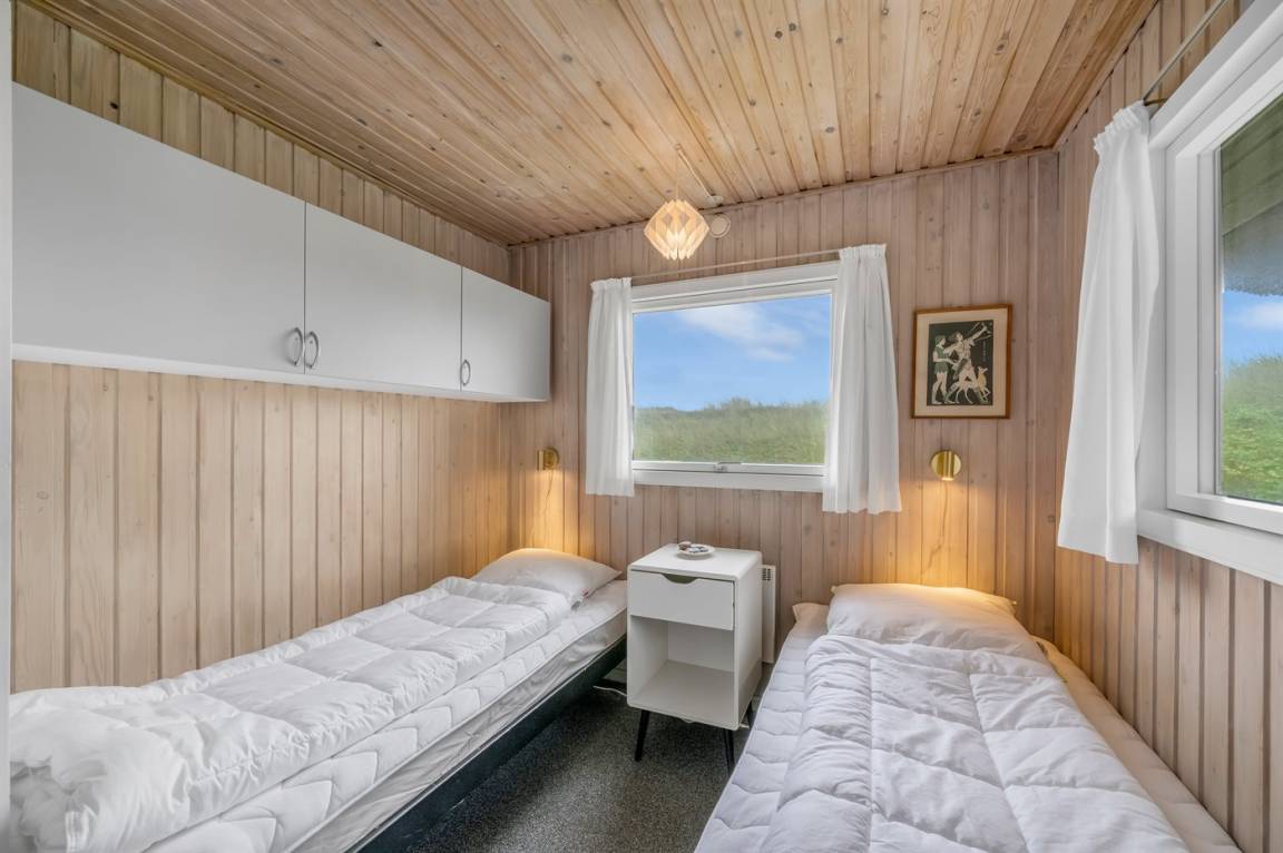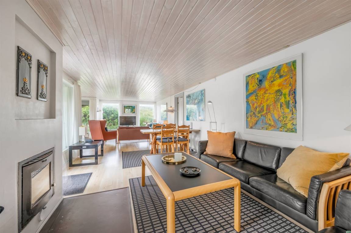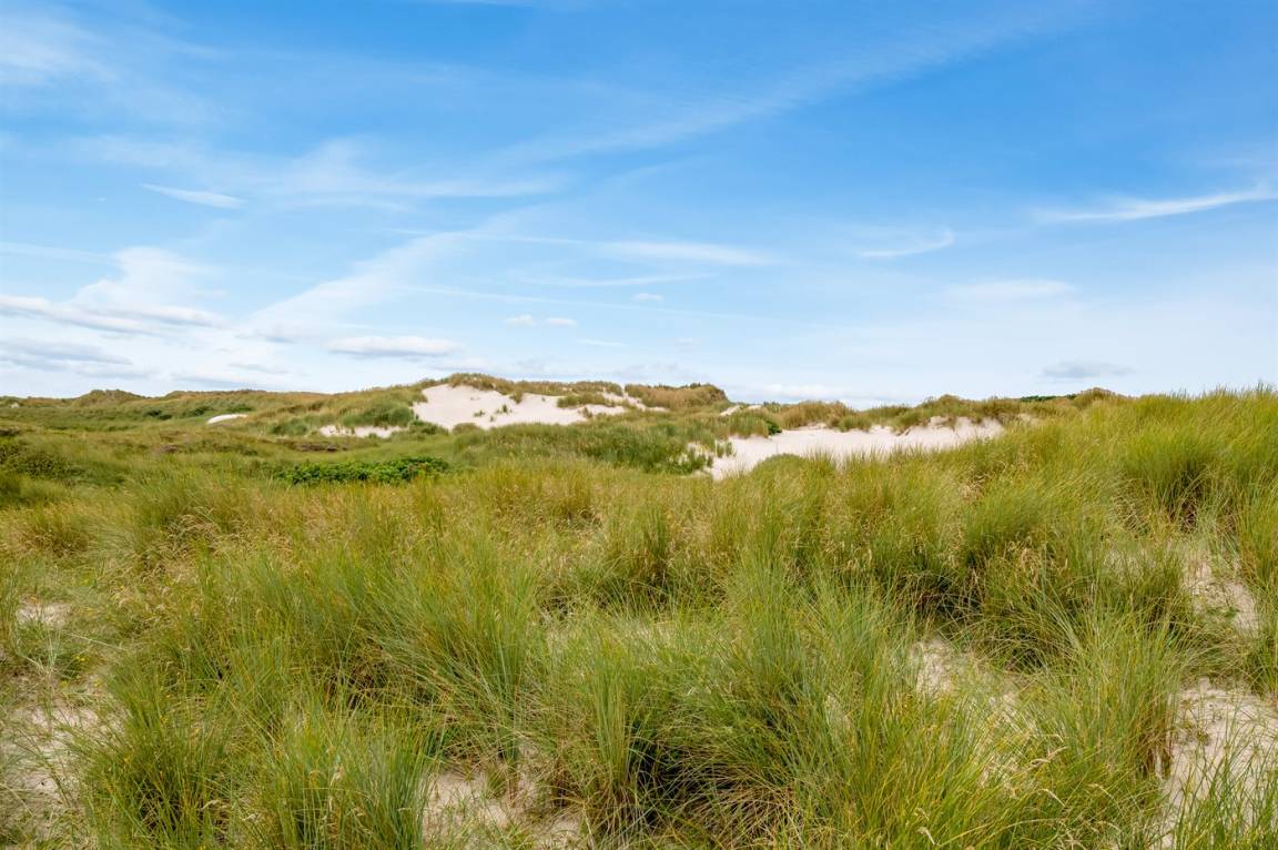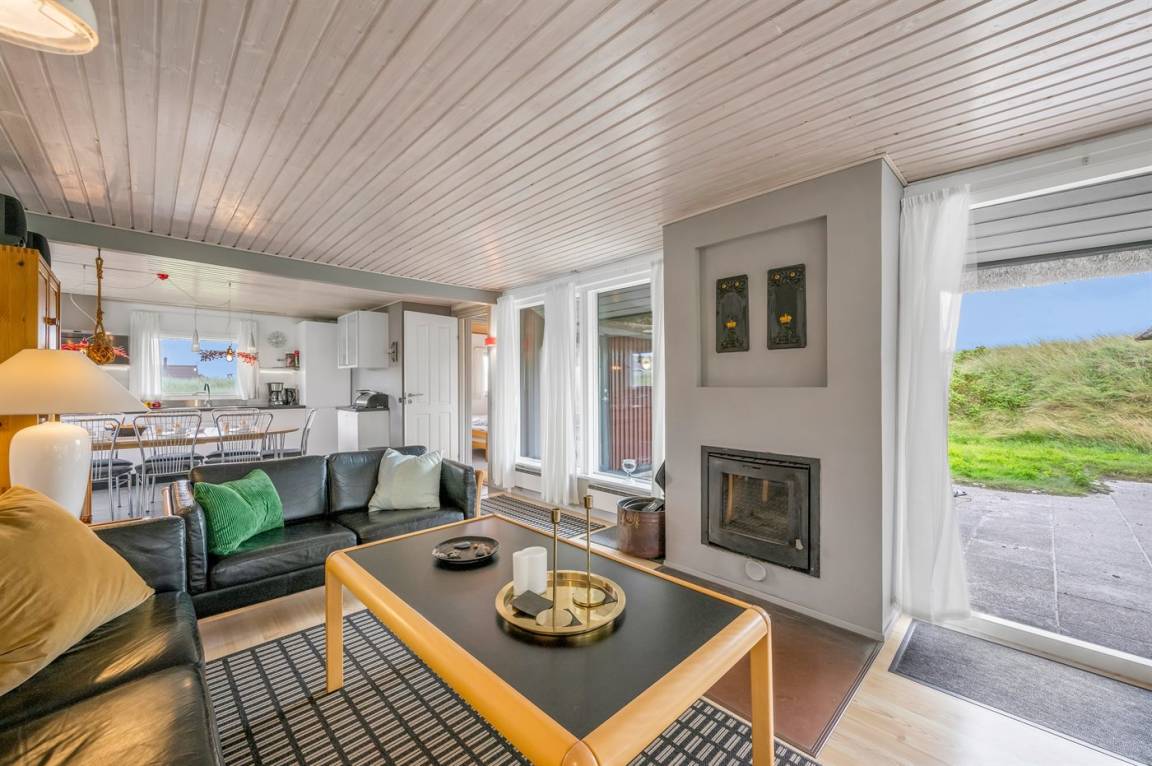 DraußenDie Ferienunterkunft liegt auf einem 16000 m² großen Dünengrundstück. Die Entfernung zum Meer beträgt 200 m. Die Entfernung zum Fjord beträgt 1000 m. Die nächste Einkaufsmöglichkeit liegt 2000 m entfernt. Es steht ein 35 m² Terrassenareal zur Verfügung. Außerdem gibt es 17 m² überdachte Terrasse. Zutritt zu einem Wintergarten. Geräteraum. Parkplatz auf dem Grundstück.