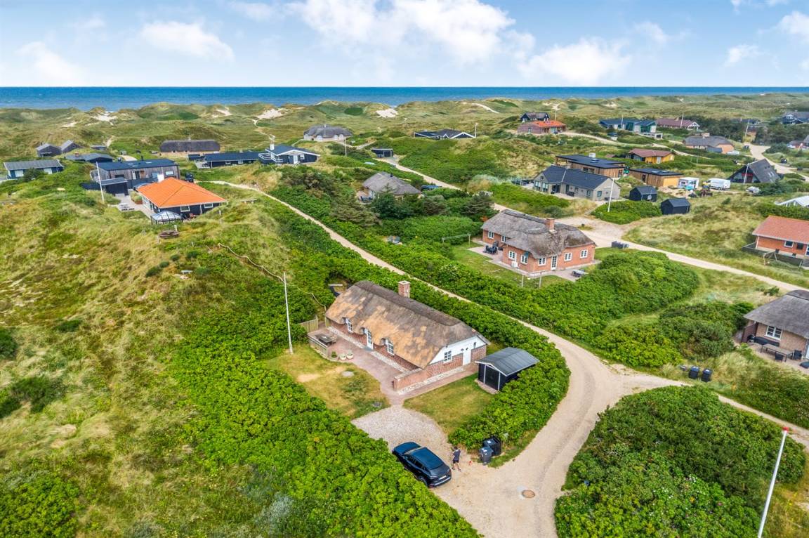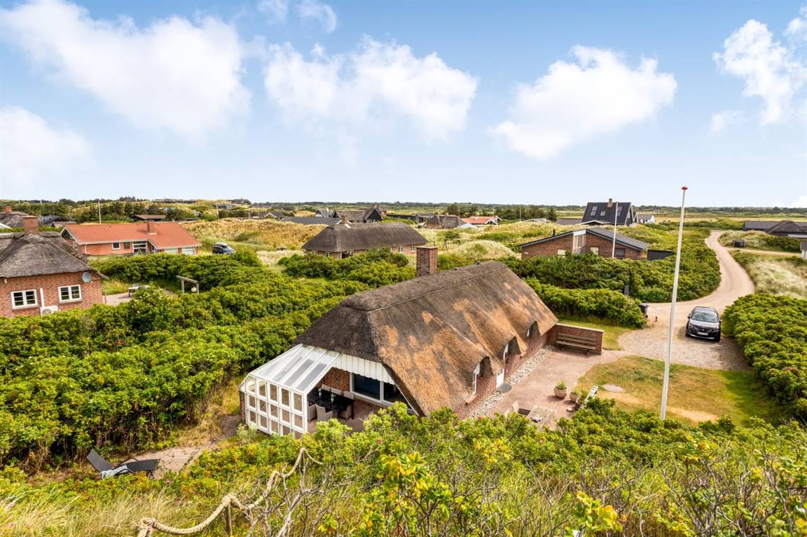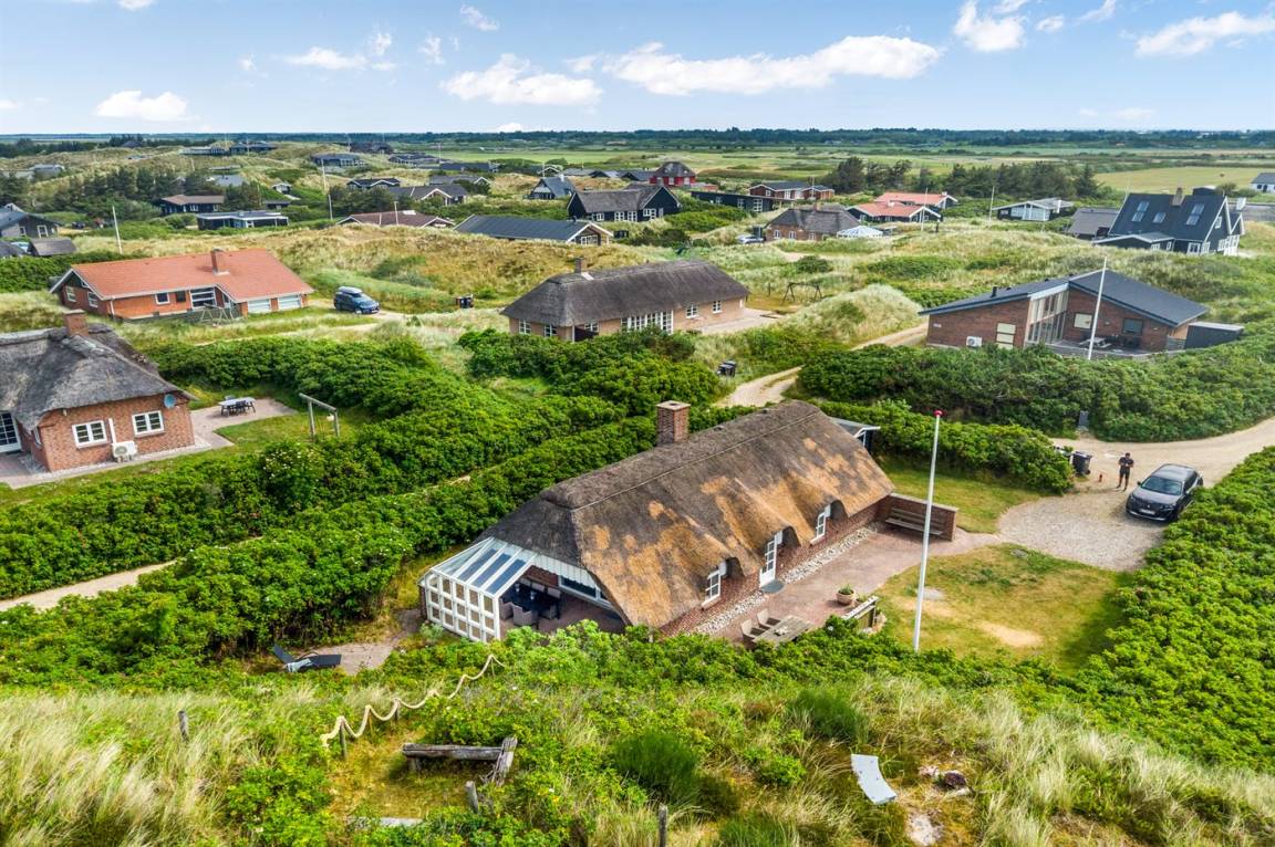 Ein reizendes und gemütlich eingerichtetes Ferienhaus mit einer schönen Lage - nur 400 m von der Nordsee entfernt. Vom Grundstück haben Sie eine phantastische Aussicht auf die Dünenlandschaft, das Meer und die Förde. Es gibt mehrere schöne Terrassen. Das Haus liegt nur wenige Minuten Fahrt vom Badeort Söndervig entfernt.