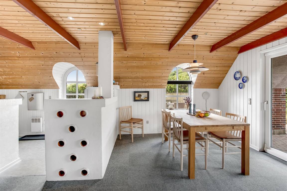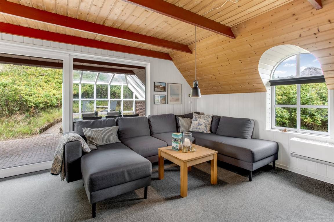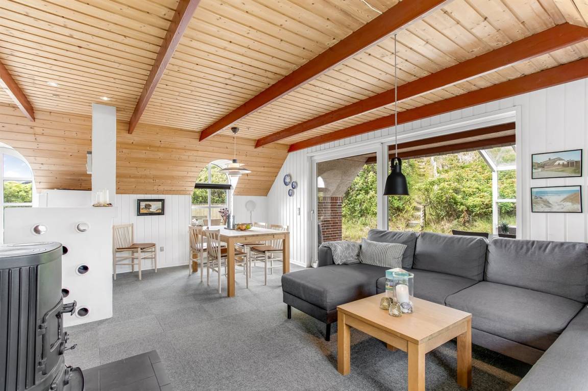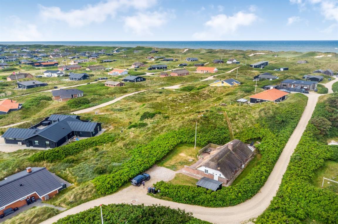 Ein reizendes und gemütlich eingerichtetes Ferienhaus mit einer schönen Lage - nur 400 m von der Nordsee entfernt. Vom Grundstück haben Sie eine phantastische Aussicht auf die Dünenlandschaft, das Meer und die Förde. Es gibt mehrere schöne Terrassen. Das Haus liegt nur wenige Minuten Fahrt vom Badeort Söndervig entfernt.