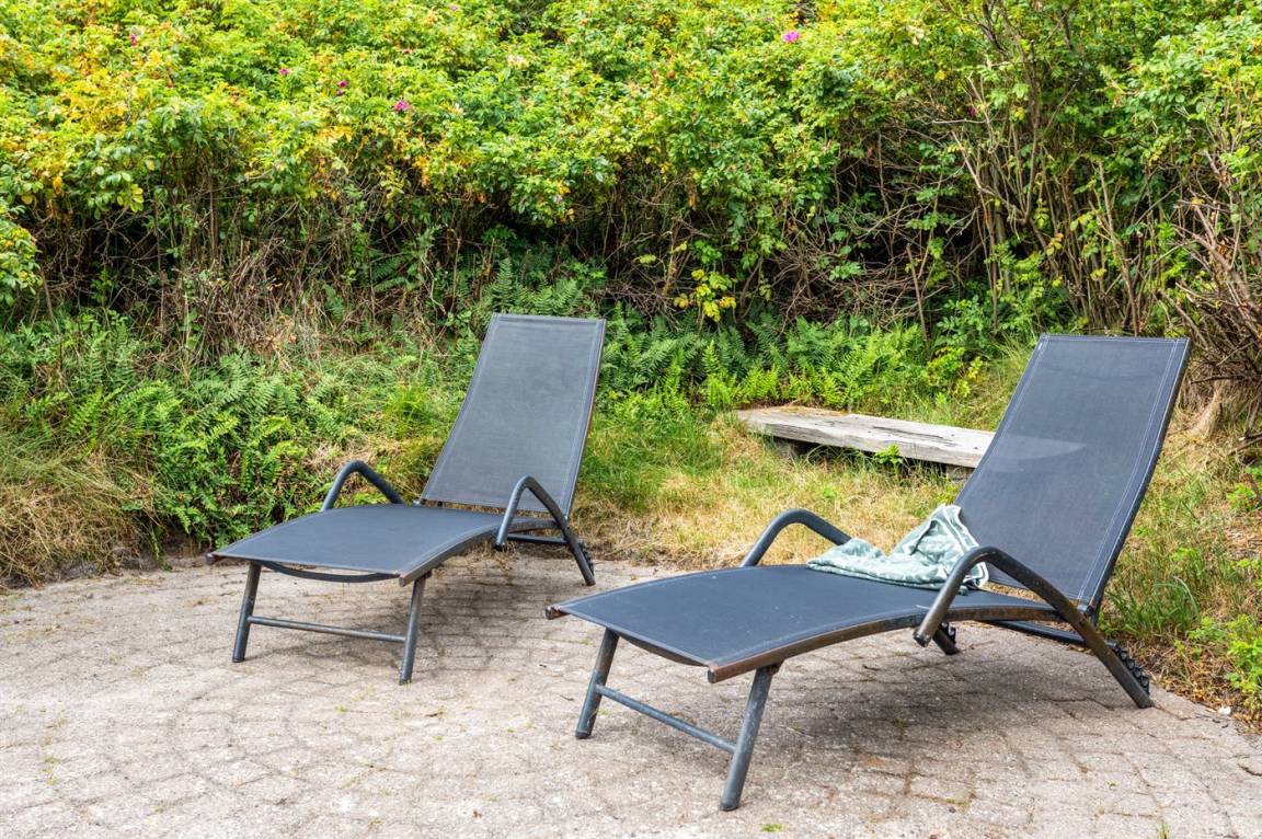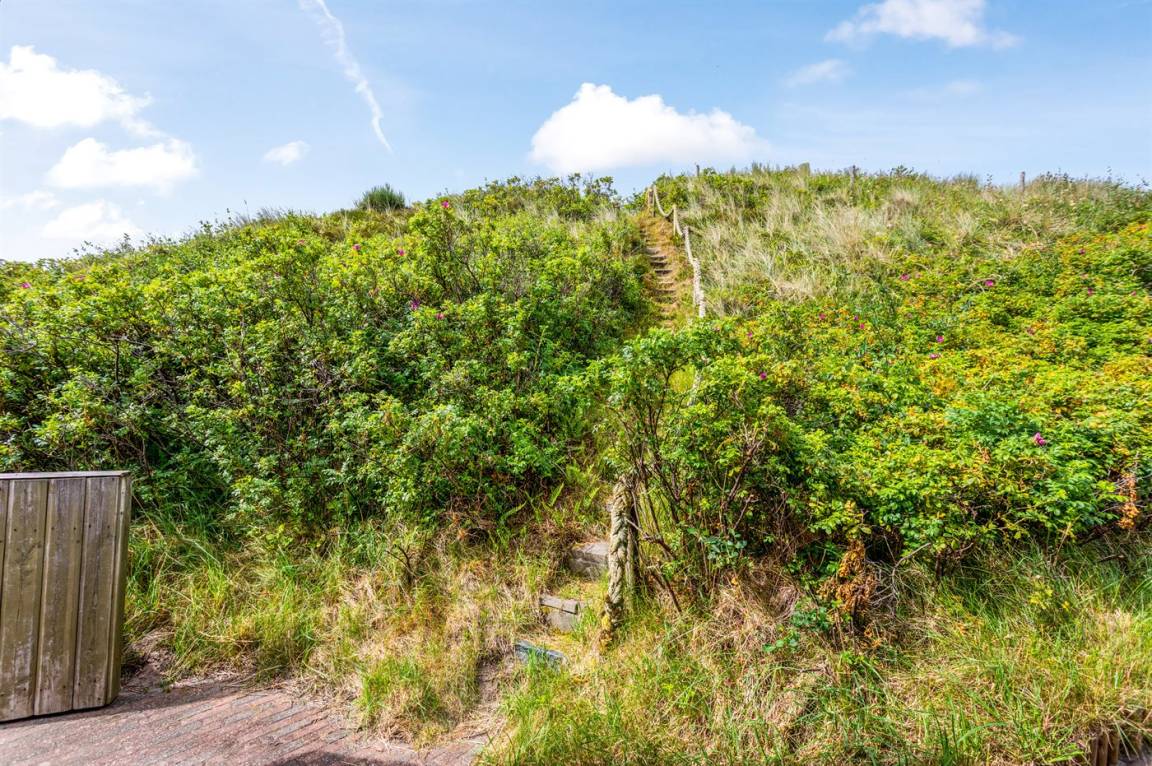 DraußenDie Ferienunterkunft liegt auf einem 1200 m² großen Dünengrundstück. Die Entfernung zum Meer beträgt 400 m. Die nächste Einkaufsmöglichkeit liegt 400 m entfernt. Es steht ein 30 m² Terrassenareal zur Verfügung. Außerdem gibt es 20 m² überdachte Terrasse. Geräteraum. Parkplatz auf dem Grundstück.