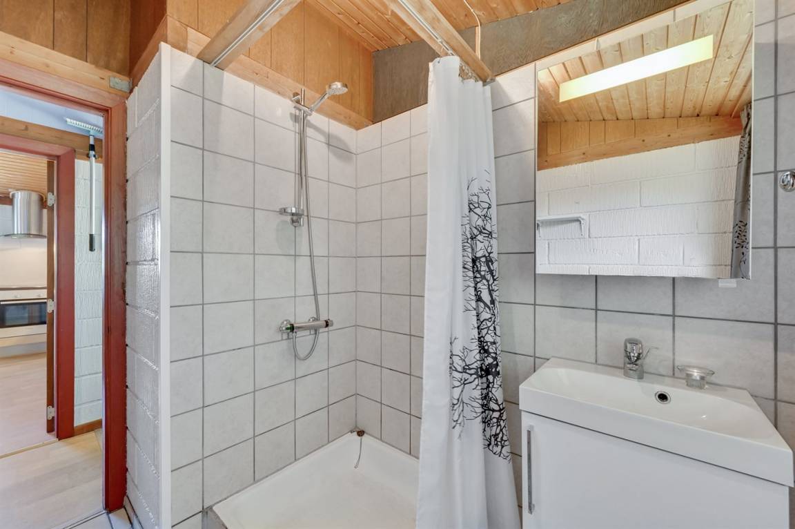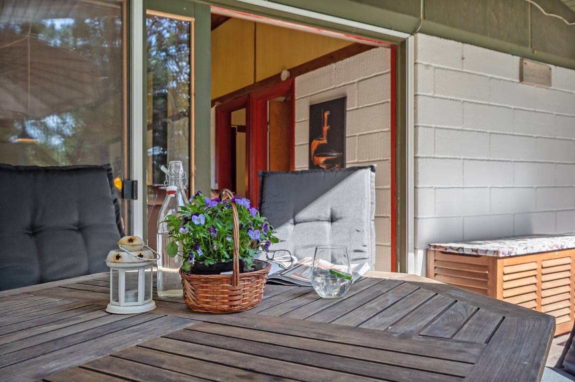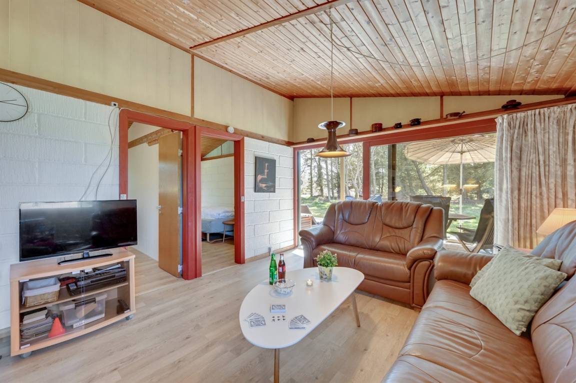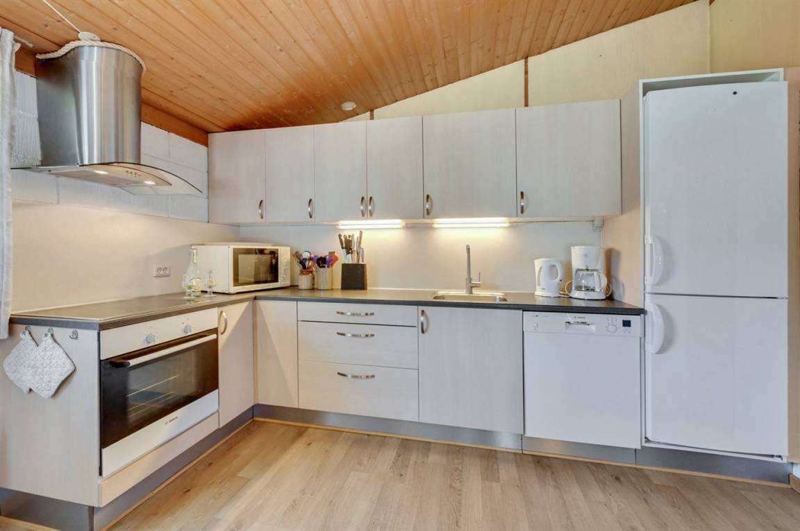 DraußenDie Ferienunterkunft liegt auf einem 2000 m² großen Naturgrundstück. Die Entfernung zum Meer beträgt 1800 m. Die Entfernung zum Fjord beträgt 700 m. Die nächste Einkaufsmöglichkeit liegt 2500 m entfernt. Es steht ein 4 m² Terrassenareal zur Verfügung. Außerdem gibt es 22 m² überdachte Terrasse. Geräteraum. Schaukel. Sandkasten. Parkplatz auf dem Grundstück.