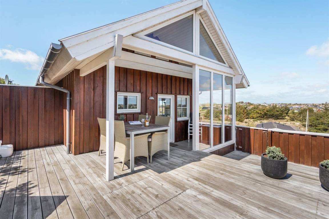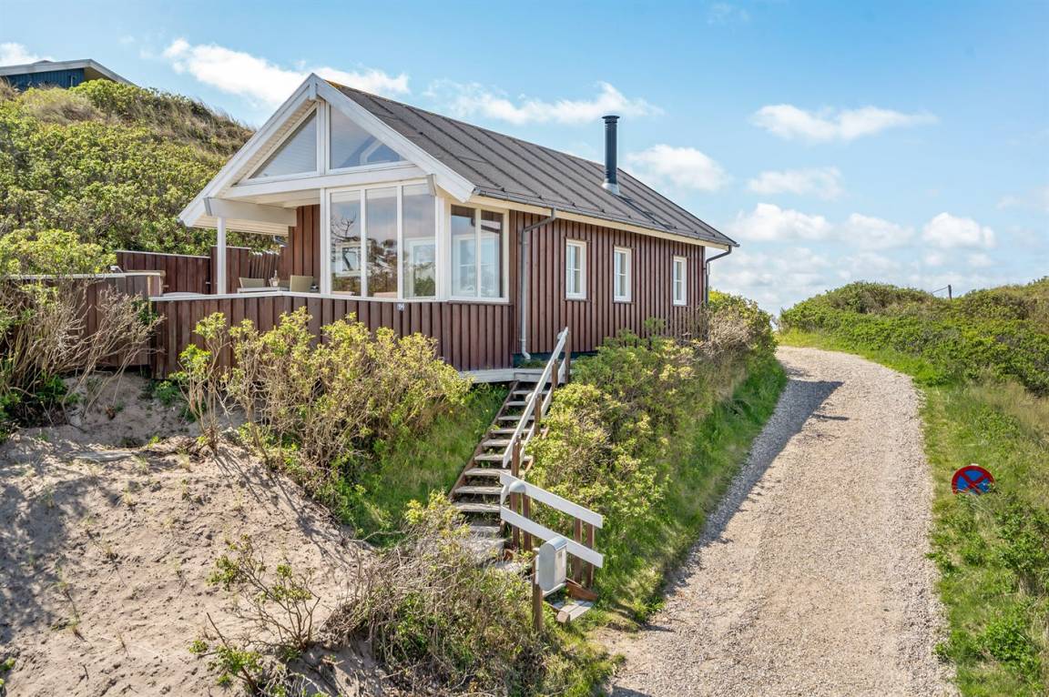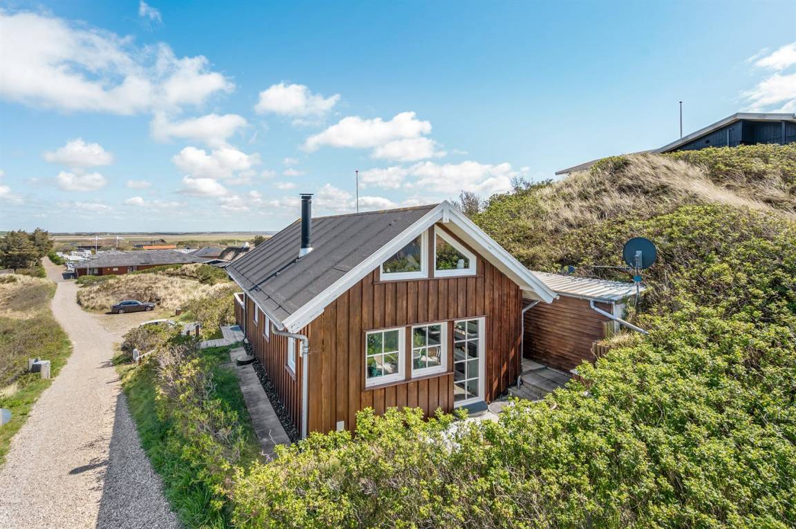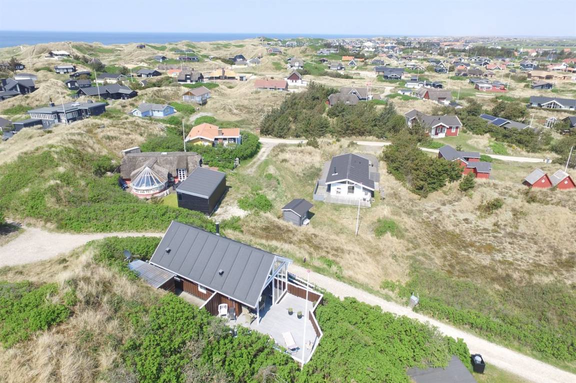 Mit Aussicht auf die Nordsee, den Ringkøbing Fjord und die Dünenlandschaft liegt dieses attraktive Ferienhaus aus Holz - 2002 gebaut - auf einem schönen Dünengrundstück in ruhiger Umgebung.