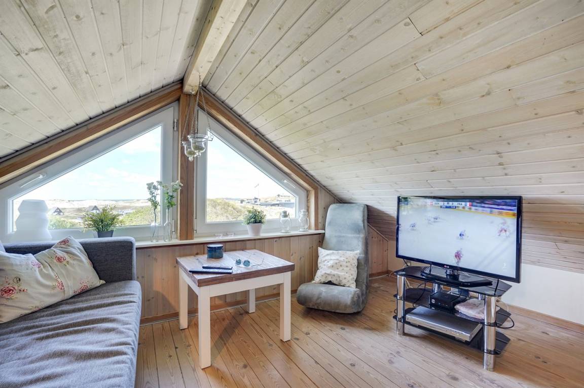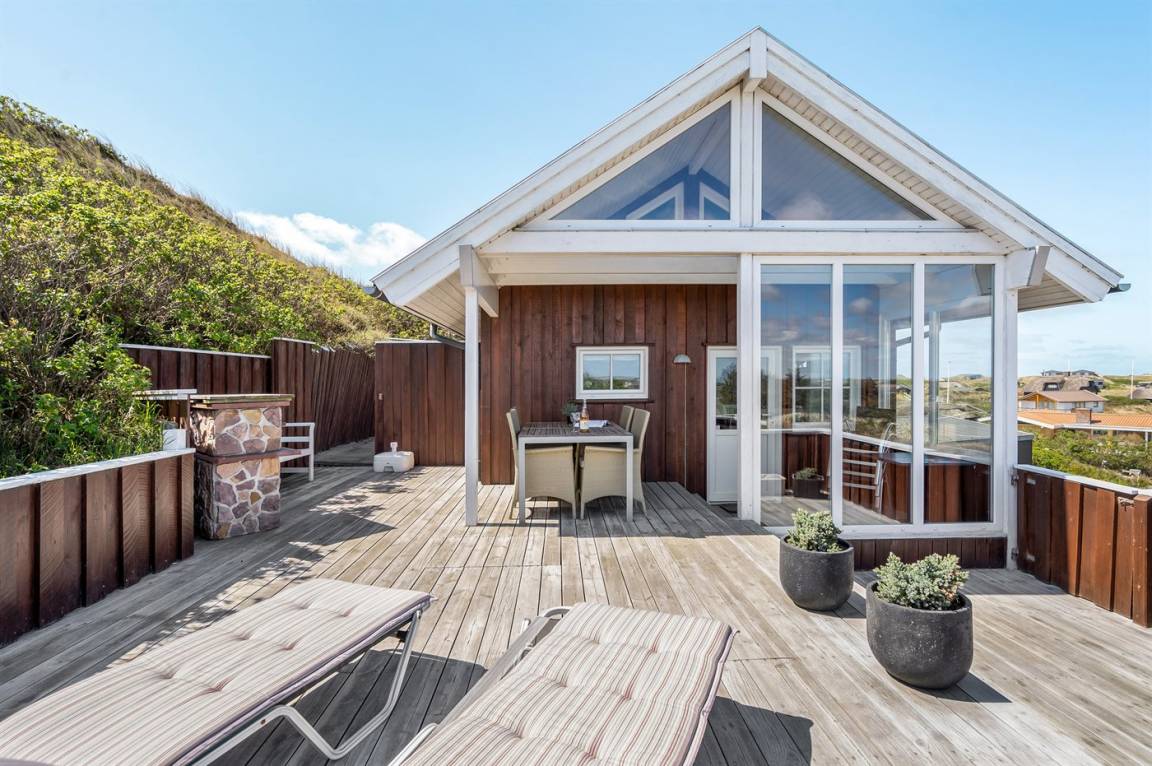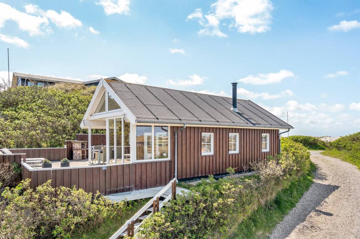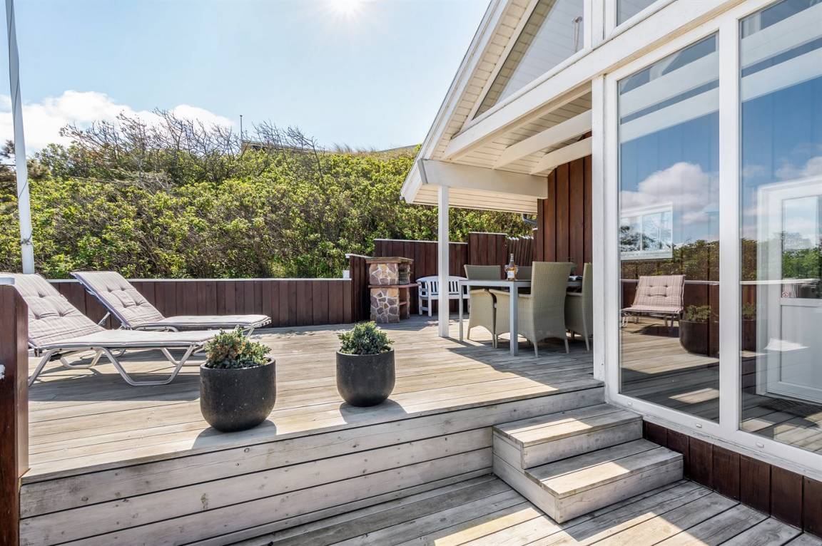 Mit Aussicht auf die Nordsee, den Ringkøbing Fjord und die Dünenlandschaft liegt dieses attraktive Ferienhaus aus Holz - 2002 gebaut - auf einem schönen Dünengrundstück in ruhiger Umgebung.