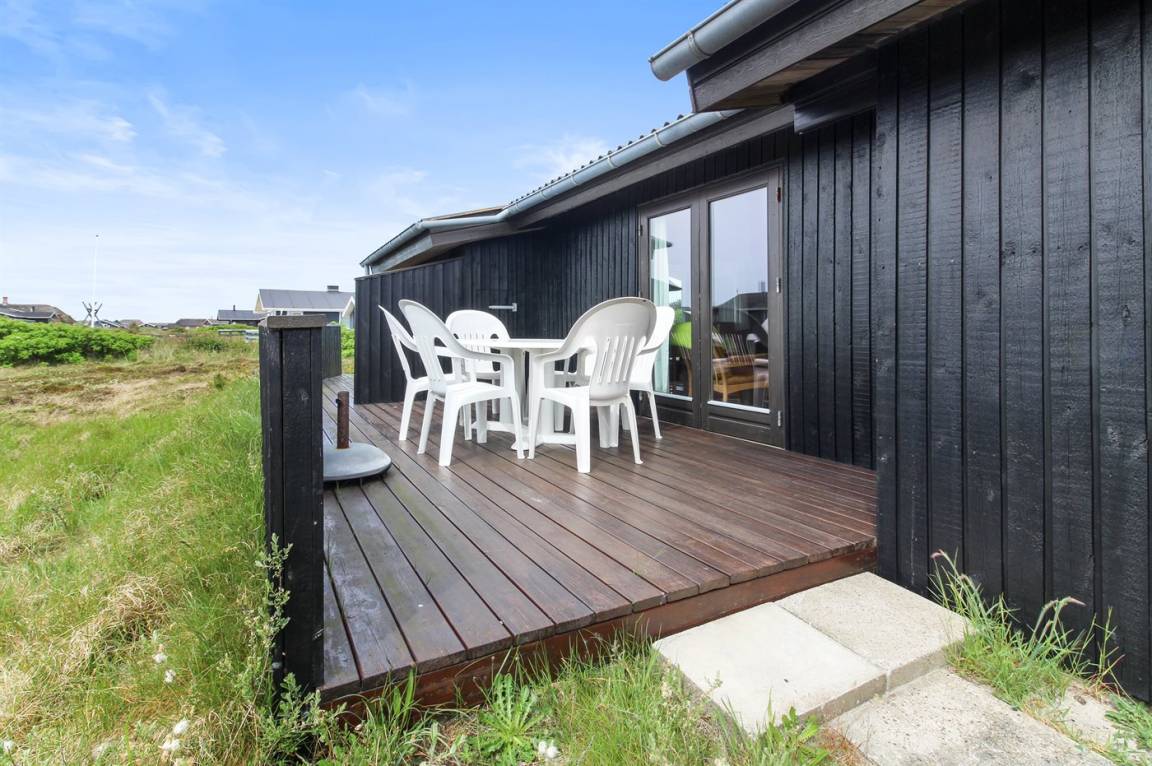 Nur 500 m von der Nordsee entfernt auf einem schönen Naturgrundstück liegt dieses gepflegte Ferienhaus aus Holz, 2009 letztens modernisiert. Terrassenareal mit Gartenmöbeln. Teils Holzböden und Teppichböden. Badezimmer mit Duschnische. Die funktionelle Küche enthält u. a. Herd mit Ceran-Feld. Im Wohnzimmer gibt es Kaminofen und TV mit digitalem Satellitenanschluss. Ferner kostenlose, kabellose Internetverbindung vorhanden (Computer ist mitzubringen). 1 Zimmer mit Doppelbett und 1 Zimmer mit Etagenbett. Großes Gästehaus mit 2 Schlafplätzen - hier können es sich die Kinder so richtig gemütlich machen. Erleben Sie die schöne Natur zu Fuß, auf dem Fahrrad oder mit dem Auto. Das Haus liegt ca. 300 m von einem Angelsee und ca. 5 Min. Fahrt von dem Badeort Søndervig entfernt. Hier gibt es einen großen, modernen Supermarkt, Restaurants, ein gute Auswahl an Läden, Minigolf und einen Golfplatz. Der Fischereiort Hvide Sande ist ebenfalls einen Besuch Wert - erleben Sie die maritime Atmosphäre am Hafen.