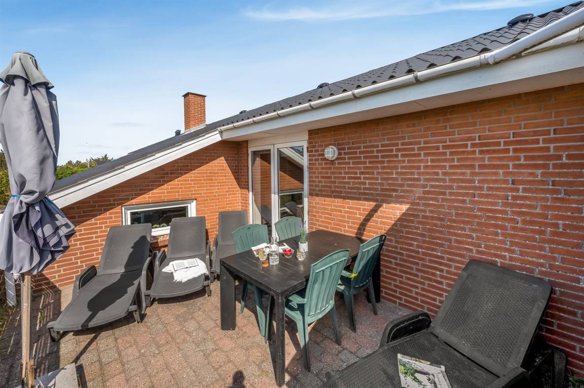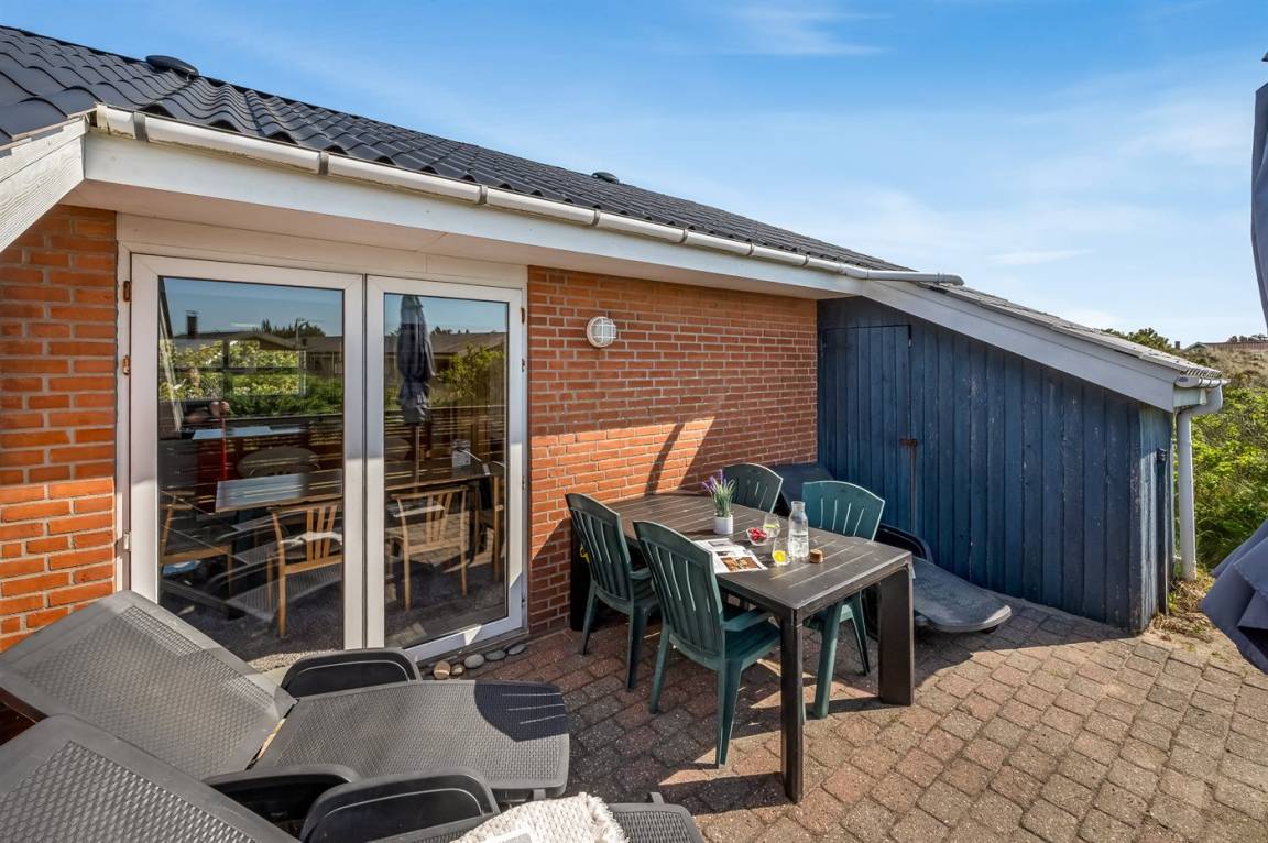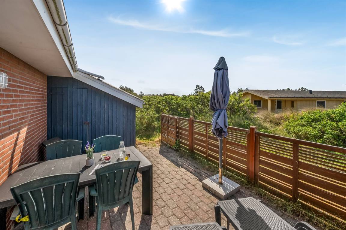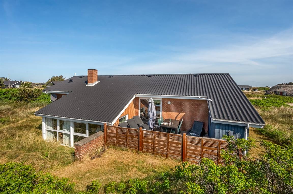 DraußenDie Ferienunterkunft liegt auf einem 1200 m² großen Dünengrundstück. Die Entfernung zum Meer beträgt 500 m. Die nächste Einkaufsmöglichkeit liegt 1000 m entfernt. In einem Abstand von 2500 m gibt es einen Golfplatz. Es steht ein 10 m² Terrassenareal zur Verfügung. Davon insgesamt 10 m² geschlossene Terrasse. Parkplatz auf dem Grundstück.