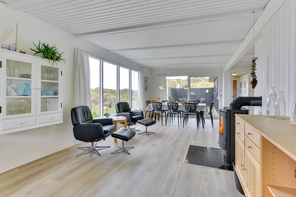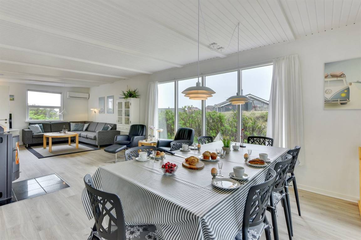 Auf einem schönen, leicht hügeligen Dünengrundstück, nur 200 m von der Nordsee entfernt und mit herrlicher Aussicht auf die Dünen liegt dieses besonders schöne und gemütlich eingerichtete Ferienhaus. Das Haus ist gepflegt und laufend modernisiert, letztens 2020 mit u.a neuer Küche, Badezimmer, Fußböden, Wohnzimmer und Mobilar. Zum Haus gehören eine teilweise überdachte und abgeschirmte Terrasse in Richtung Westen und eine abgeschirmte Terrasse in Richtung Osten. Somit können Sie sich an sonnigen Tagen den ganzen Tag hindurch auf den Terrassen aufhalten.