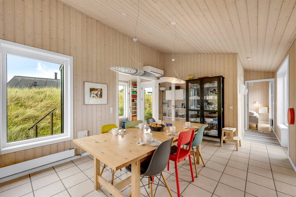 Das Ferienhaus, das mit versetzten Etagen gestaltet ist, hat eine angenehme, warme und einladende Atmosphäre mit hellen Decken und Wänden und großen Fensterpartien nach Westen. Der große Wohnbereich und das Wohnzimmer mit der fantastischen Aussicht sind ein schöner Mittelpunkt des Hauses und vermitteln die perfekte Sommerhausstimmung für viele Stunden Gemütlichkeit und Entspannung.
