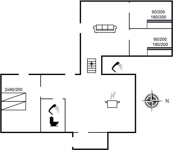 SchlafverhältnisseDie Schlafplätze verteilen sich auf 3 Schlafräume. 2 Schlafplätze in Einzelbetten. 6 Schlafplätze in Etagenbetten.