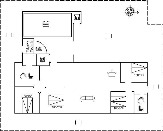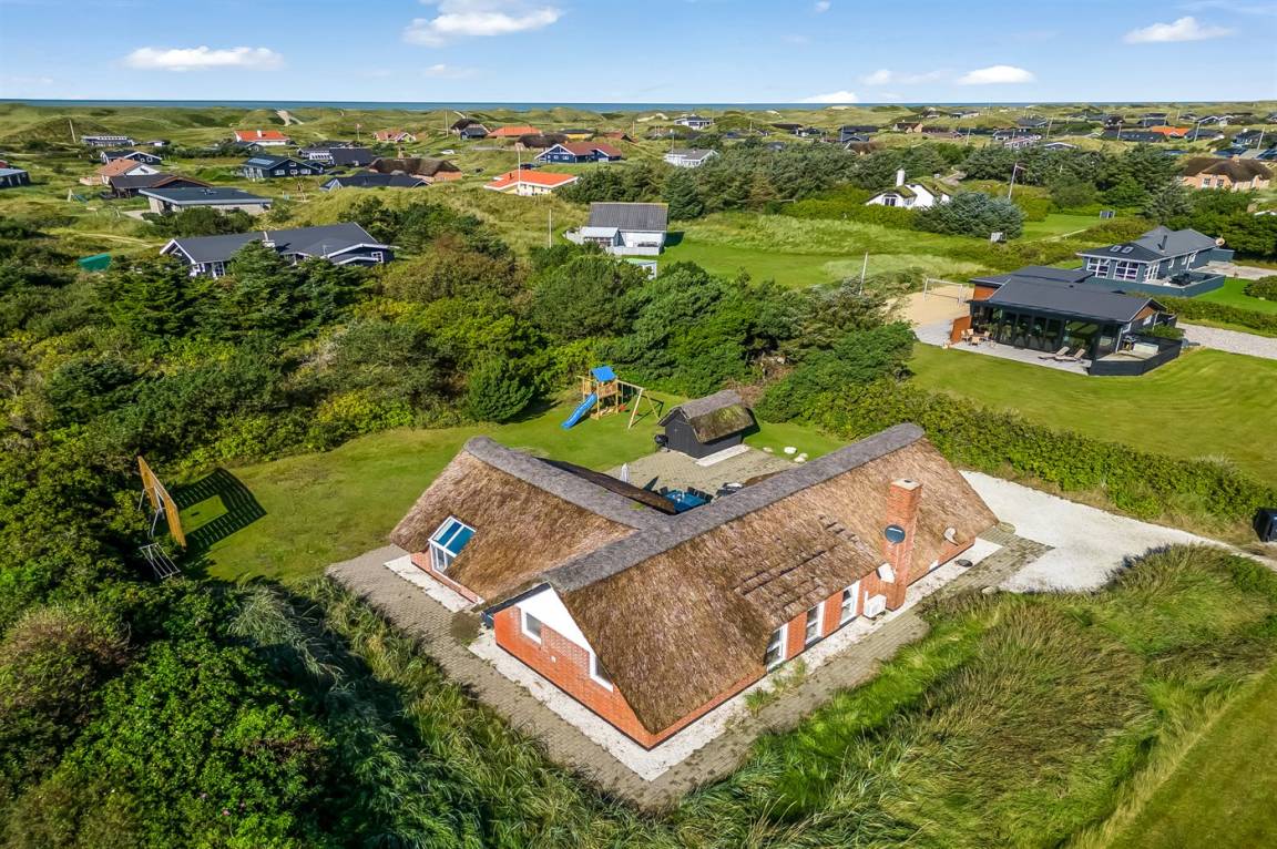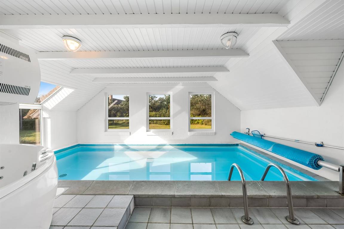Dieses gemütliche und energiegerechte Ferienhaus mit Pool, Sauna und Whirlpool hat eine schöne Lage dicht an Søndervig und der Nordsee. Das reetgedeckte Ferienhaus ist aus Stein 1967/1993 gebaut und 2020 völlig renoviert u.a. mit Installation einer Lüftungsanlage mit Wärmerückgewinnung im ganzen Haus. Außerdem sind 2 energiesparende Wärmepumpen installiert, von denen die eine das Wasser im Swimmingpool erwärmt.