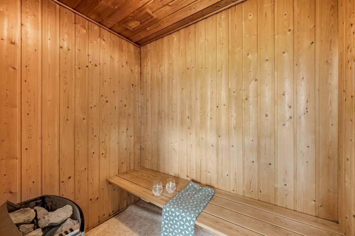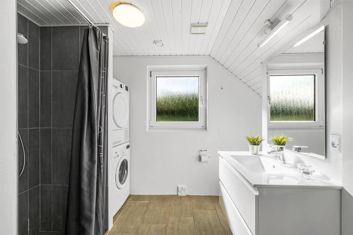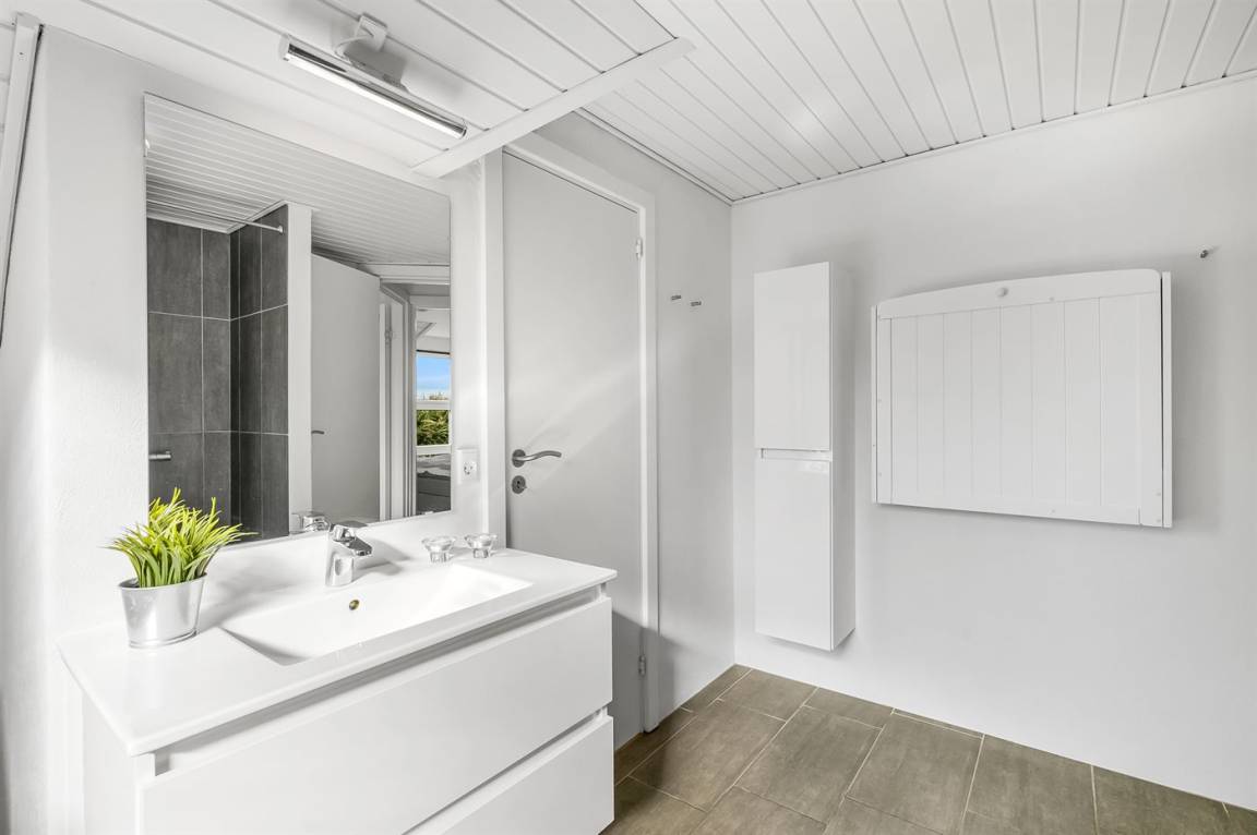 Schöne Poolabteilung mit Pool (3 x 5,5 x 1,25 m), Gegenstromsanlage, 2-Pers.-Whirlpool und direktem Zugang zur Sauna. 2 Badezimmer mit Duschnische und Fußbodenheizung. Im großen Badezimmer gibt es viel Schrankplatz und Waschmaschine und Wäschetrockner.