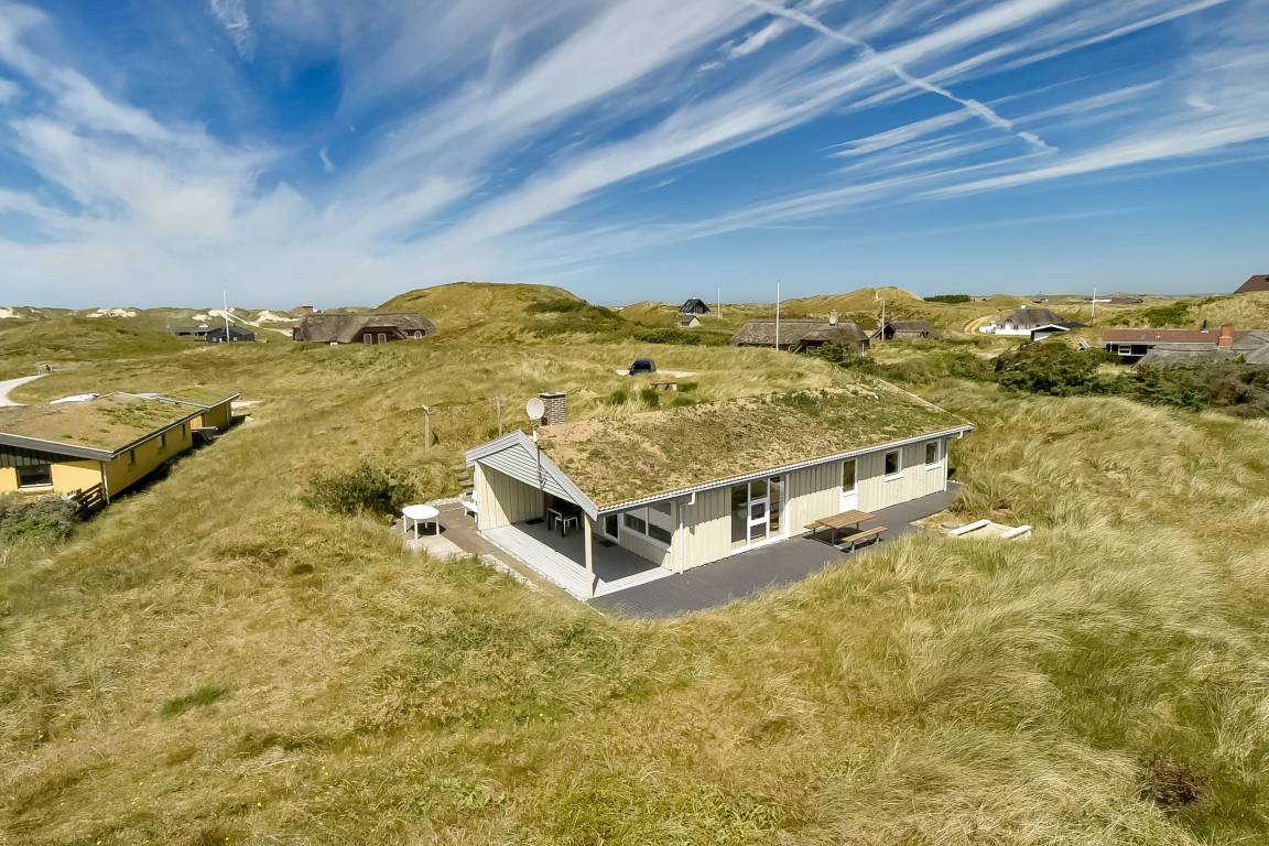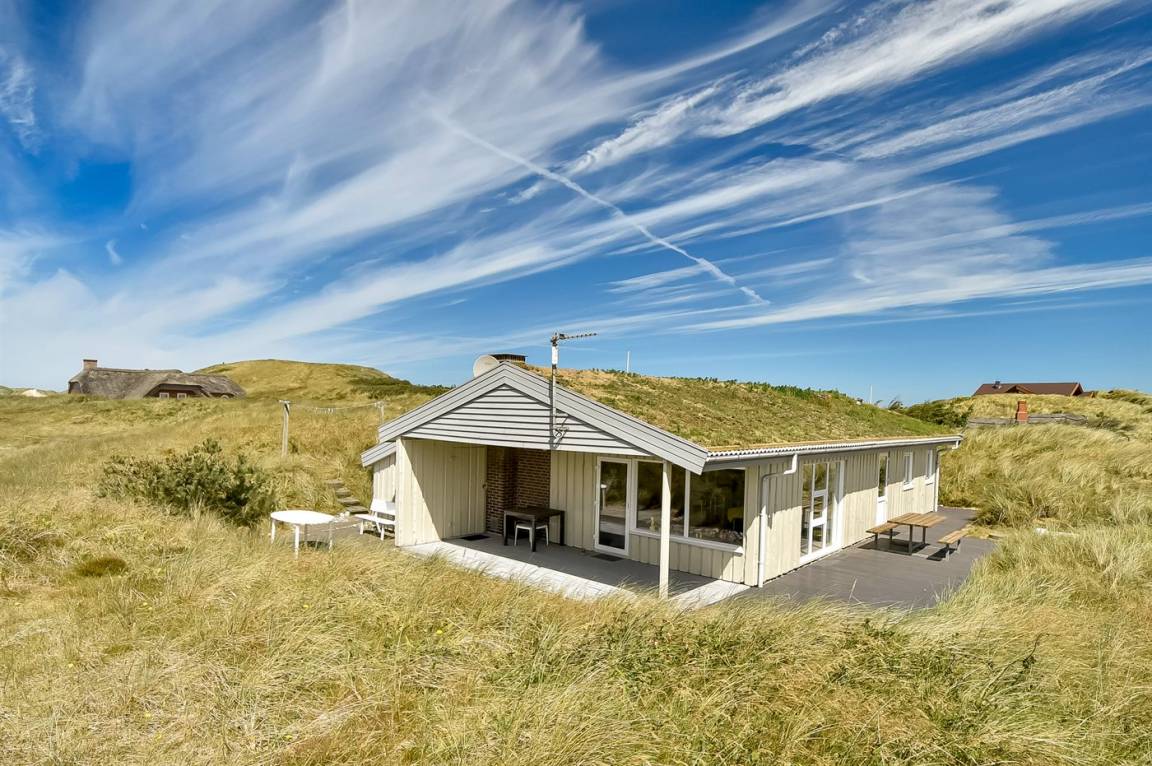 Dieses gepflegte und nett möblierte Ferienhaus aus Holz, laufend modernisiert, letztens 2010, liegt auf einem hübschen, leicht hügeligen Dünengrundstück - nur 250 m von der Nordsee entfernt. Zum Haus gehören eine große offene sowie eine überdachte Terrasse mit Gartenmöbeln, von der Sie die herrliche Aussicht über die Dünenlandschaft genießen können. Badezimmer mit Duschnische. Die moderne und gut eingerichtete Küche (2010) ist u. a. mit Tiefkühlgerät und Herd mit Ceran-Feld ausgestattet. Das Wohnzimmer enthält Kaminofen, Radio mit CD-Spieler sowie 32"-LCD TV mit digitalem Satellitenanschluss sowie komb. Video/DVD-Spieler. Ferner kostenlose, kabellose Internetverbindung vorhanden (Computer ist mitzubringen). Die Schlafplätze verteilen sich auf 1 Zimmer mit Doppelbett und 2 Zimmer mit je 2 Einzelbetten. Sandkasten für die kleinen Gäste. Ein ideales Ferienhaus in schöner Umgebung.