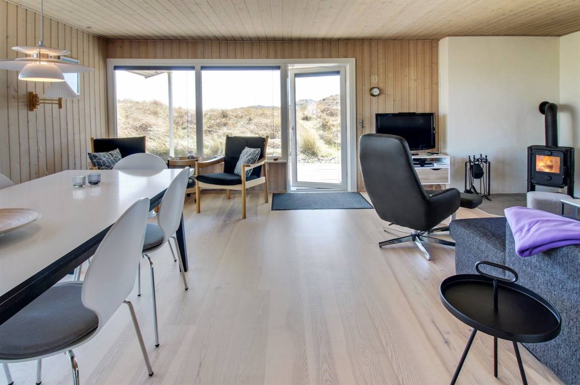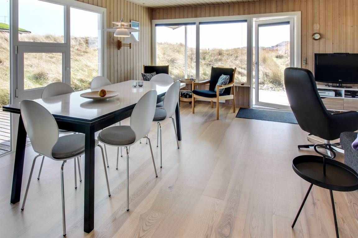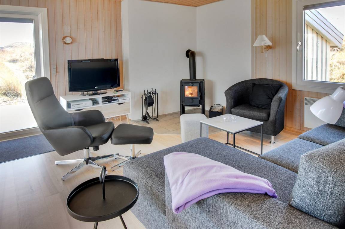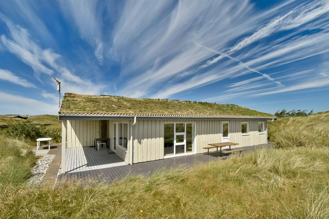 „Advice to other guests: Das Haus liegt in einem ruhigen Dünengebiet. Die Hauptstraße (181) ist zwar zu hören, die Dünen wirken aber dämpfend wie ein Lärmschutzwall. Das Haus selber ist von außen eher unscheinbar, mit einem grün bewachsenen Dach. Drinnen ist es jedoch sehr hell und modern eingerichtet. Sitzgelegenheiten auf Sesseln und Sofa sind ausreichend und bequem vorhanden. Die Zimmer sind nicht sehr groß, Schränke und auch genügend Haken zum Aufhängen von Kleidung etc. sind jedoch vorhanden. Die Küche lässt bei Geschirr, Töpfen und vielem anderen keine Wünsche offen! Und es ist sogar Schrankplatz für eigene Einkäufe vorhanden, leider keine Selbstverständlichkeit in Ferienhäusern! Rundum ein sehr schönes Haus!“