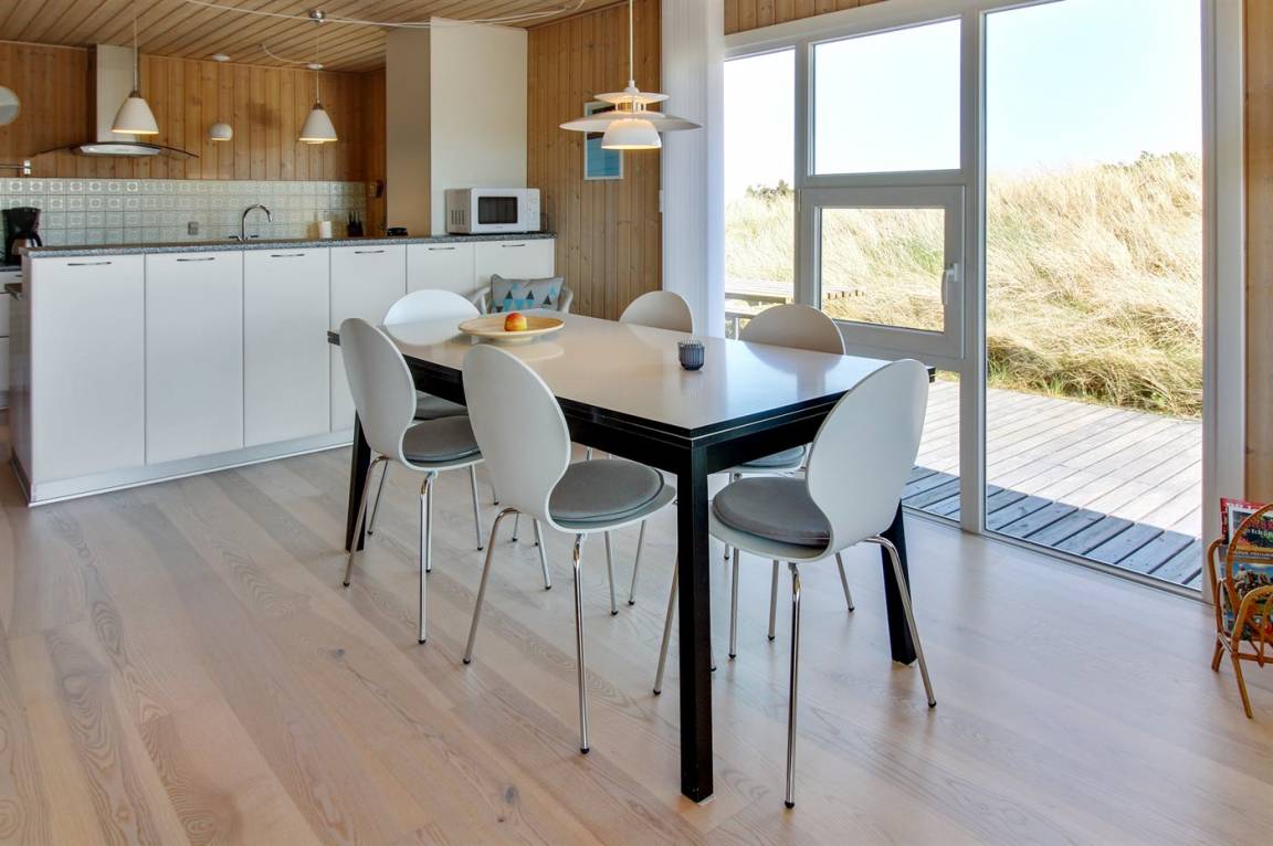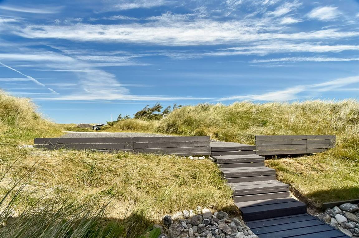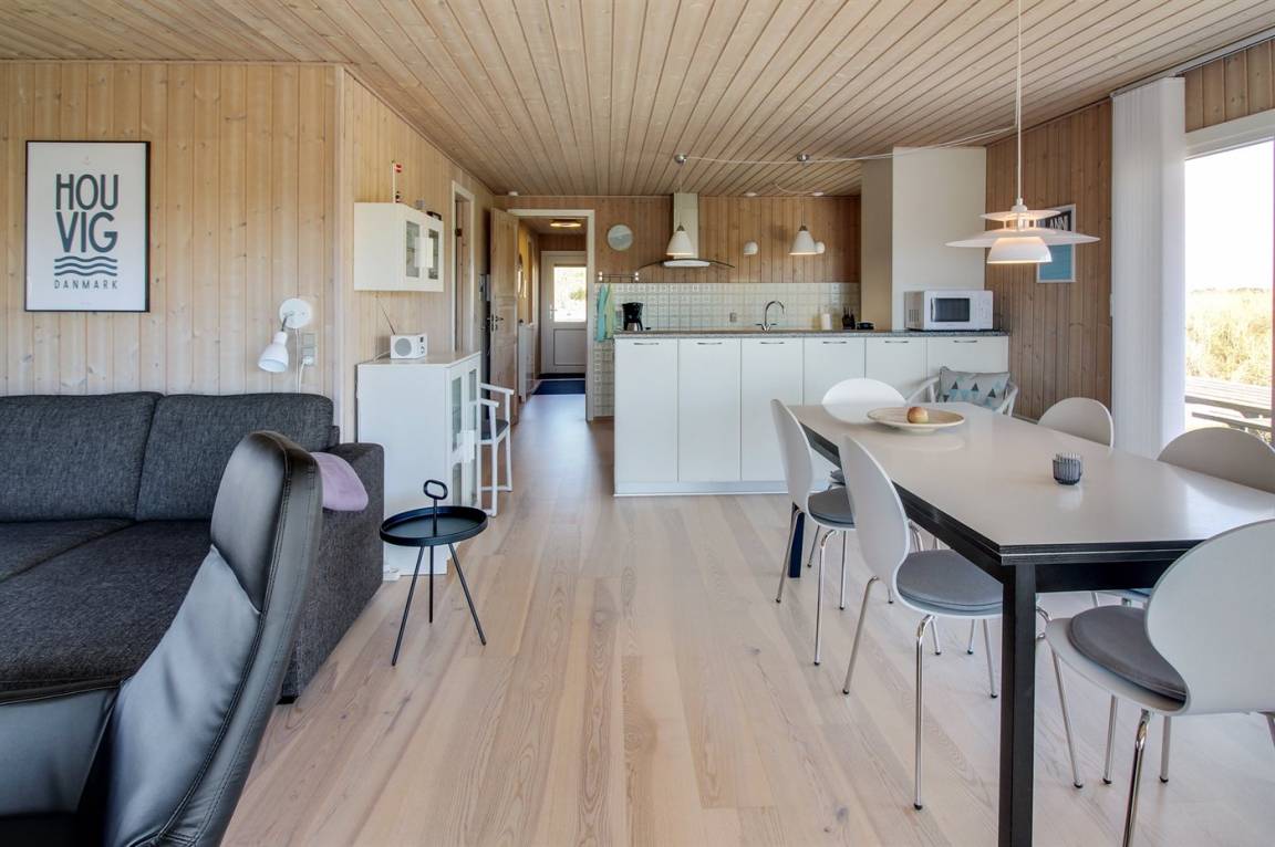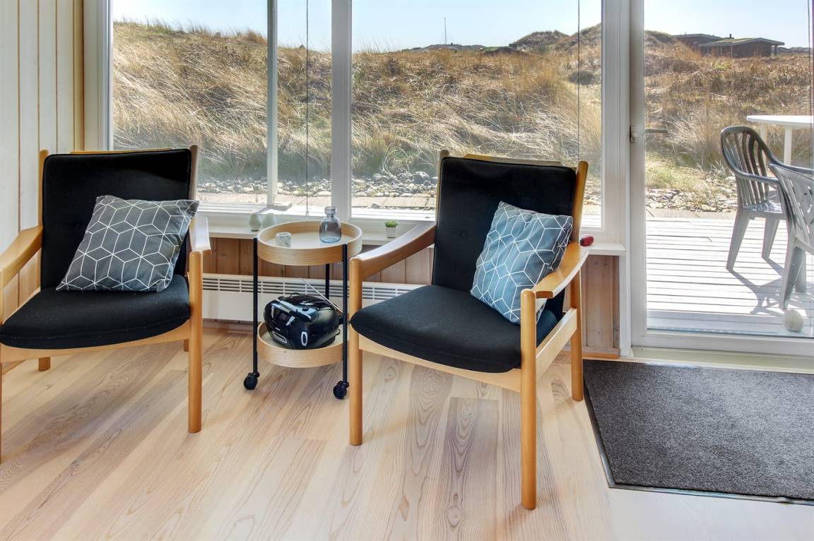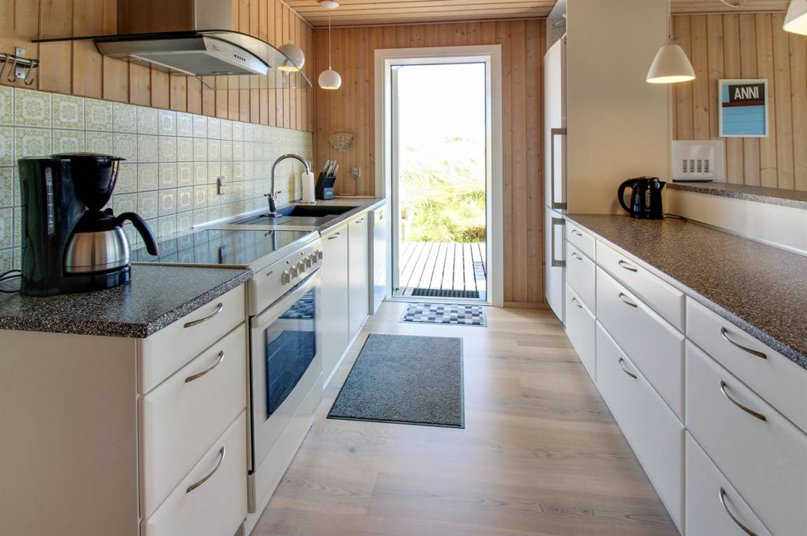 „Advice to other guests: Das Haus liegt in einem ruhigen Dünengebiet. Die Hauptstraße (181) ist zwar zu hören, die Dünen wirken aber dämpfend wie ein Lärmschutzwall. Das Haus selber ist von außen eher unscheinbar, mit einem grün bewachsenen Dach. Drinnen ist es jedoch sehr hell und modern eingerichtet. Sitzgelegenheiten auf Sesseln und Sofa sind ausreichend und bequem vorhanden. Die Zimmer sind nicht sehr groß, Schränke und auch genügend Haken zum Aufhängen von Kleidung etc. sind jedoch vorhanden. Die Küche lässt bei Geschirr, Töpfen und vielem anderen keine Wünsche offen! Und es ist sogar Schrankplatz für eigene Einkäufe vorhanden, leider keine Selbstverständlichkeit in Ferienhäusern! Rundum ein sehr schönes Haus!“