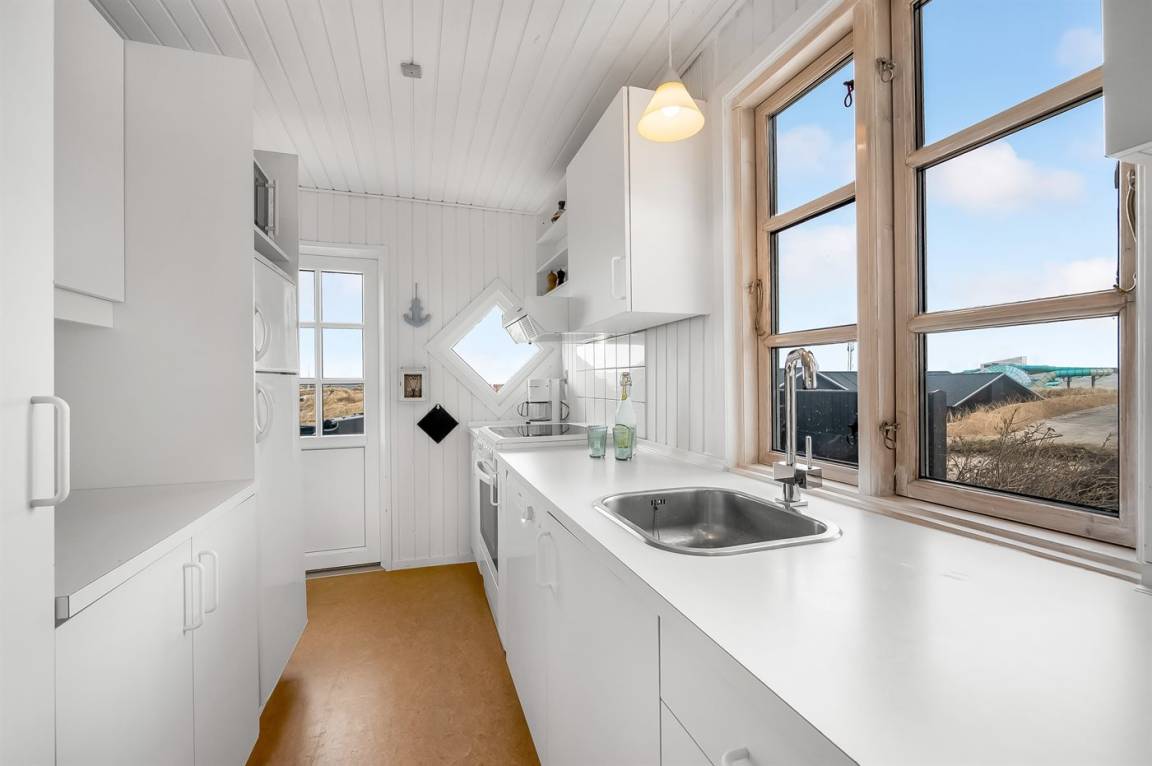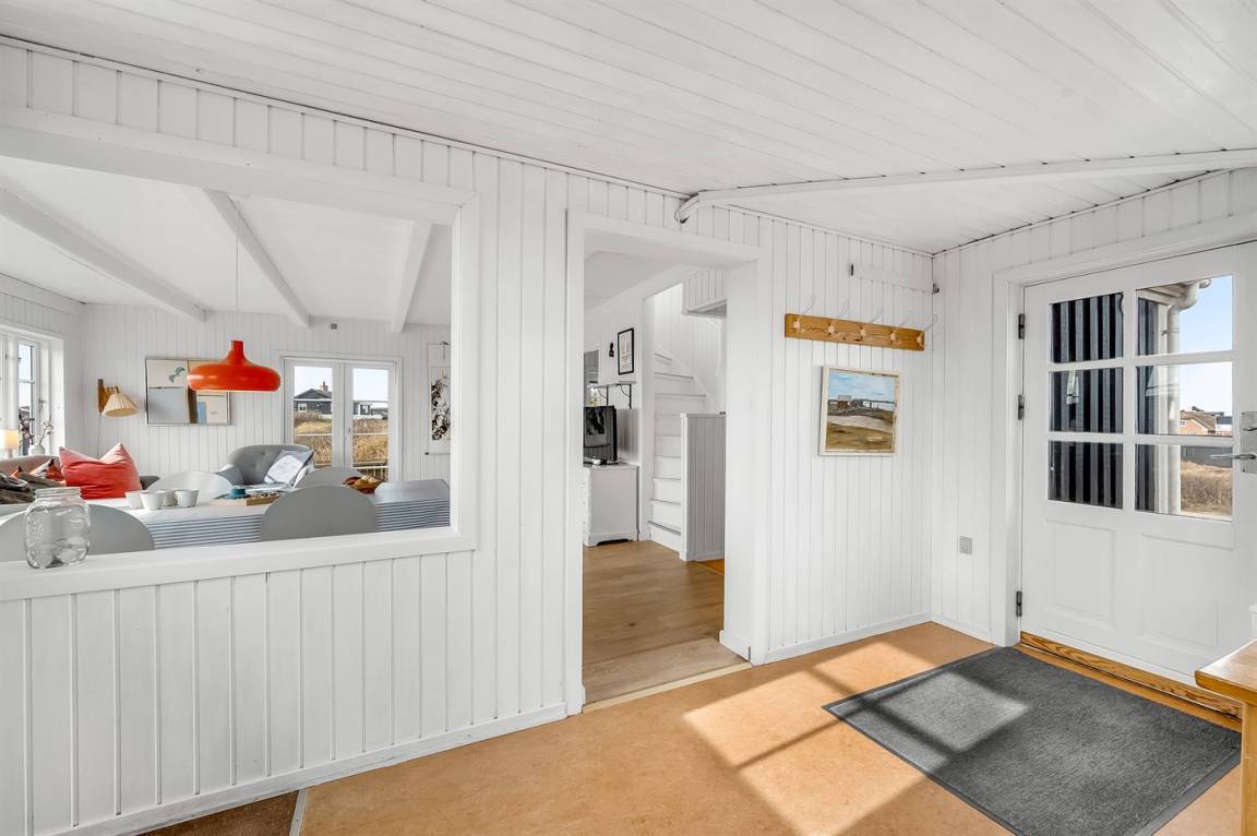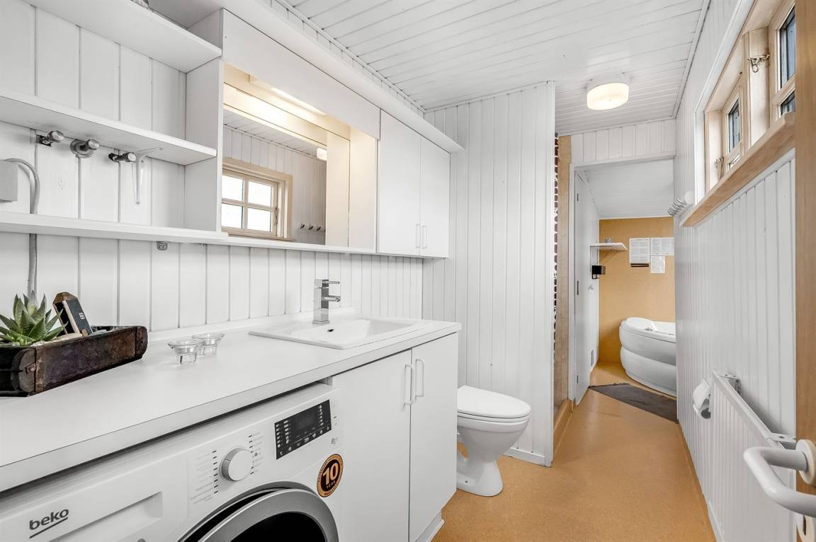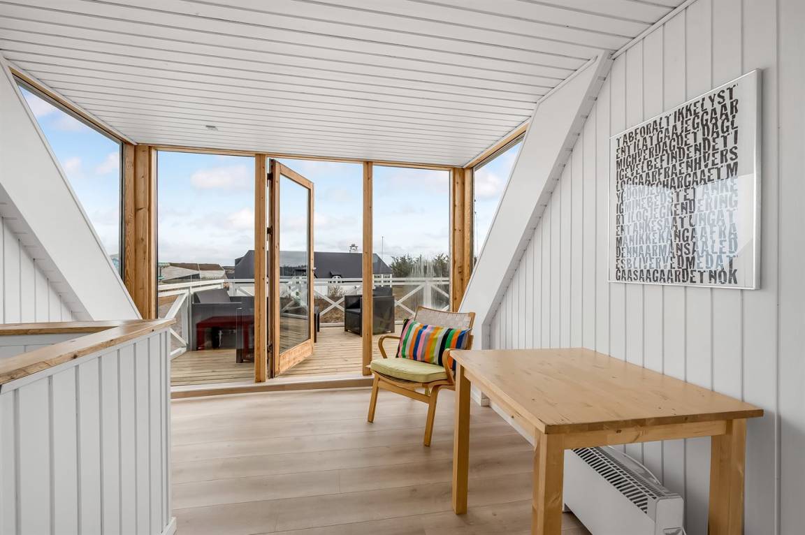DraußenDie Ferienunterkunft liegt auf einem 1040 m² großen Naturgrundstück. Die Entfernung zum Meer beträgt 250 m. Die Entfernung zum Fjord beträgt 750 m. Die nächste Einkaufsmöglichkeit liegt 100 m entfernt. In einem Abstand von 1000 m gibt es einen Golfplatz. Es steht ein offenes Terrassenareal zur Verfügung. Außendusche. Parkplatz auf dem Grundstück.