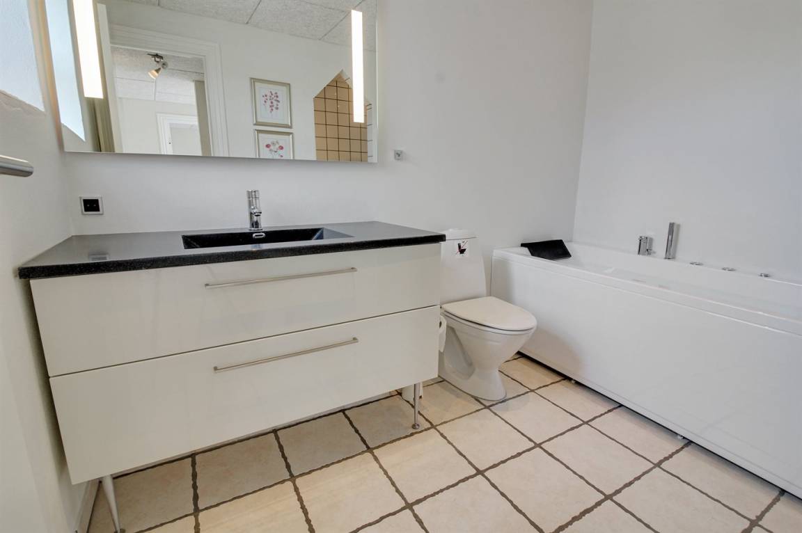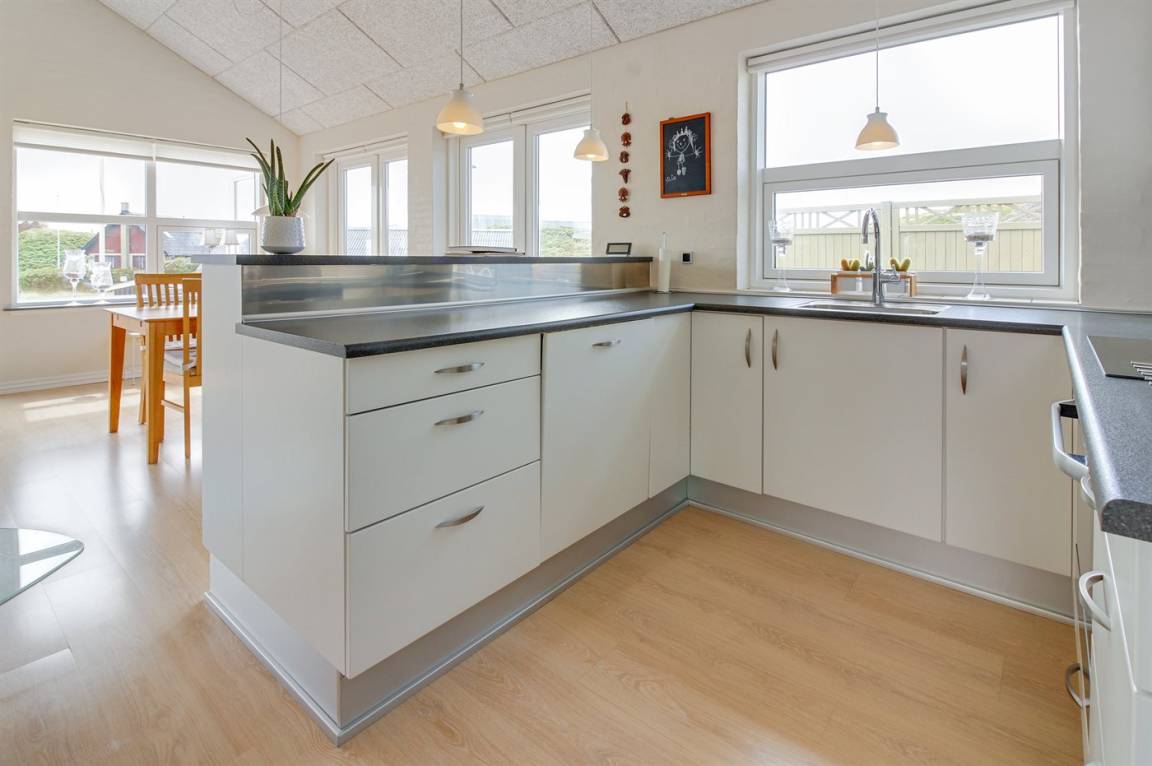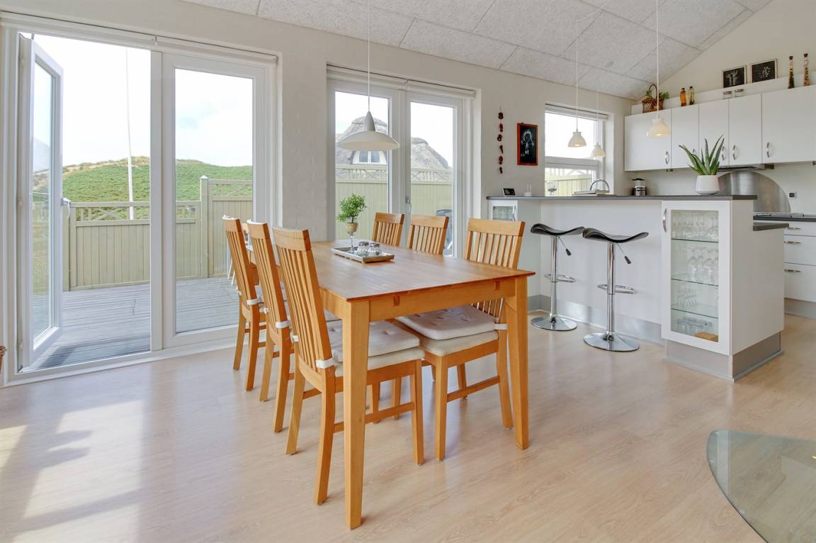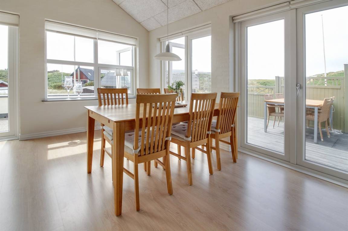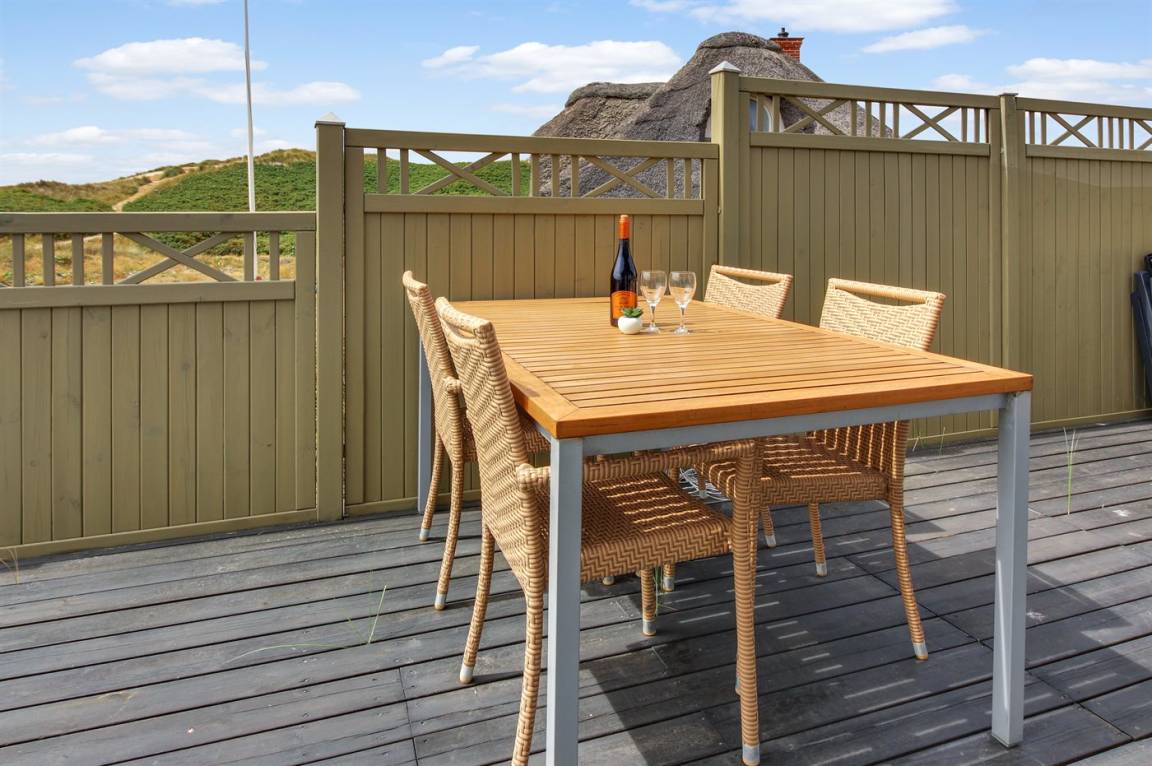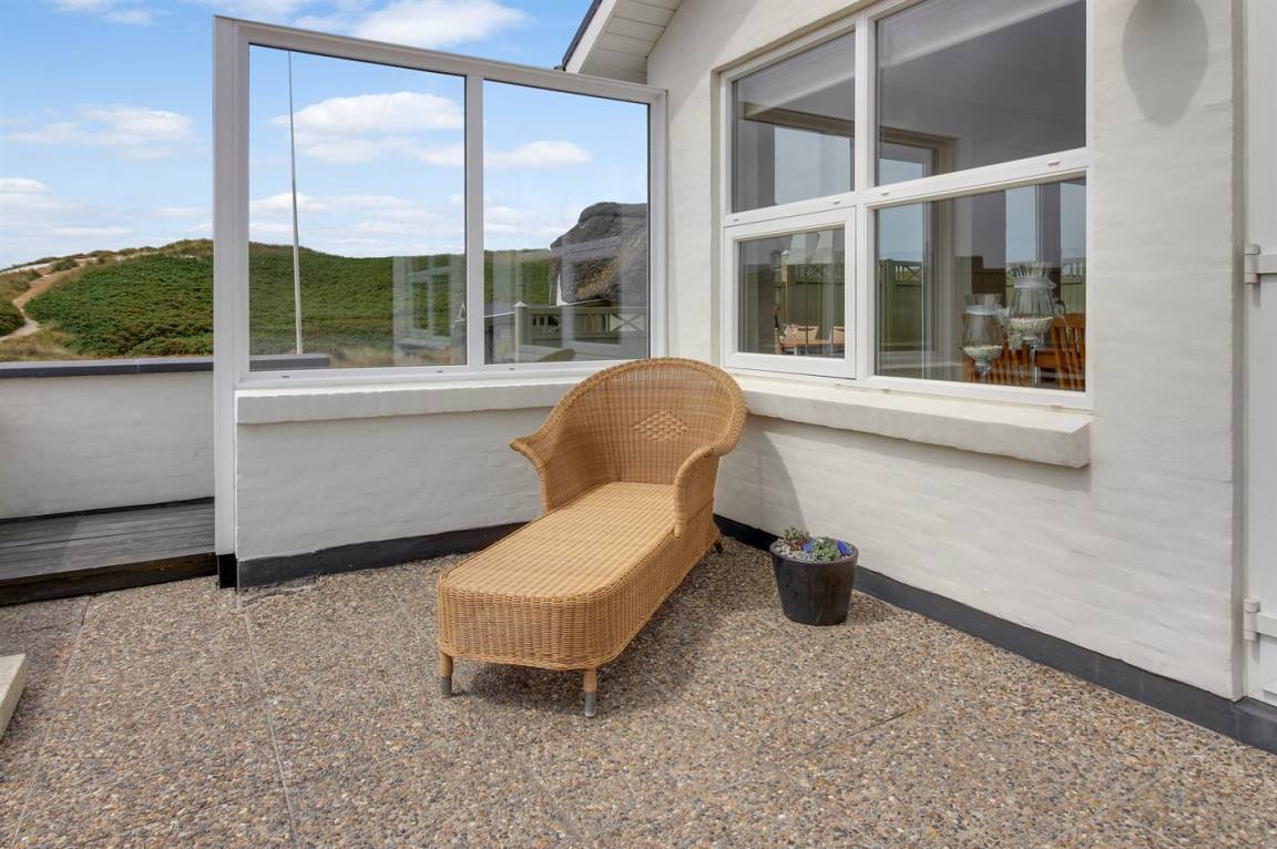 In der Nähe von Søndervig findest du dieses idyllisch gelegene Ferienhaus nahe an der Nordsee, auf einem hügeligen Grundstück mit fantastischem Blick über die umliegende Dünenlandschaft. Das Ferienhaus bietet mehrere schöne Terrassen an, darunter eine nach Osten ausgerichtete, private Terrasse, auf der du deinen Morgenkaffee in der Sonne genießen kannst, während das Rauschen der Nordseewellen eine ruhige Hintergrundkulisse schafft.