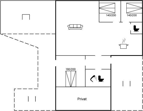 DraußenDie Ferienunterkunft liegt auf einem 2279 m² großen Naturgrundstück. Das Grundstück ist eingezäunt. Die Entfernung zum Meer beträgt 1800 m. Die Entfernung zum Fjord beträgt 800 m. Die nächste Einkaufsmöglichkeit liegt 1800 m entfernt. In einem Abstand von 500 m gibt es einen Golfplatz. Es stehen 60 m² offene sowie 20 m² überdachte Terrasse zur Verfügung. Davon sind insgesamt 20 m² geschlossen. Schaukel. Sandkasten. Es ist ein Ladestecker für Elektroautos installiert. CEE Stecker. Parkplatz auf dem Grundstück.