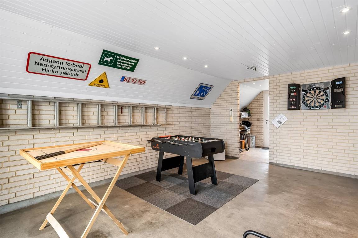 Im Hobbyraum findest du: Dartscheibe, Tischfußball und Bobspiel.