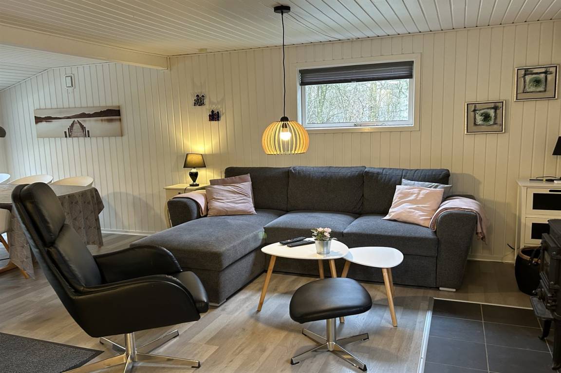 Dieses gemütliche Ferienhaus liegt auf einem großen Grundstück, mit viel Bepflanzen rund um das Haus, in einer landschaftlich schönen Gegend zwischen Meer und Fjord. Das Haus verfügt über schöne Terrassenbereiche.