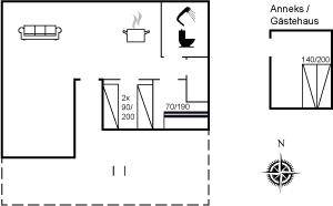 SchlafverhältnisseDie Schlafplätze verteilen sich auf 3 Schlafräume. 4 Schlafplätze in Einzelbetten. 2 Schlafplätze in einem Etagenbett. 2 von diesen Schlafplätzen befinden sich im Gästehaus. Ferner steht ein Kinderbett zur Verfügung.