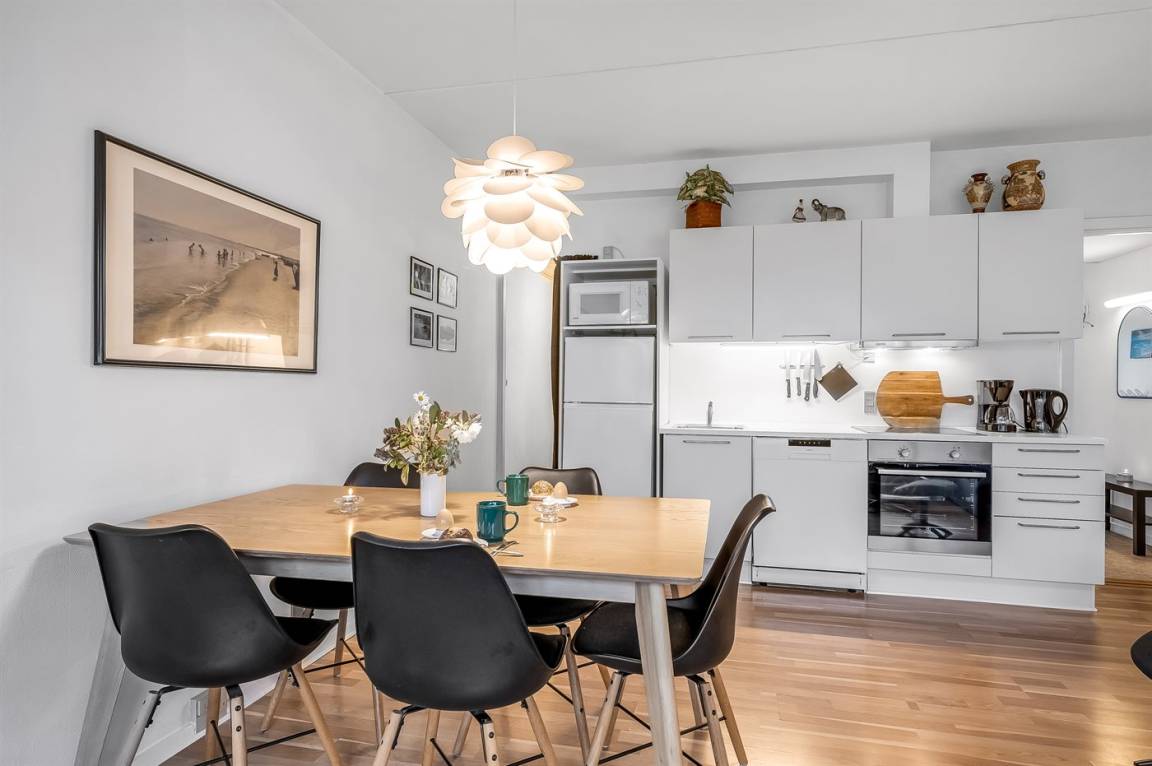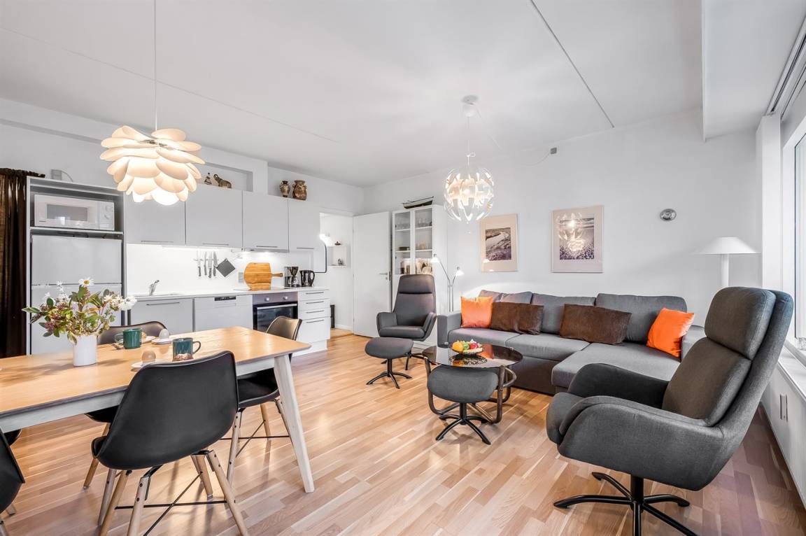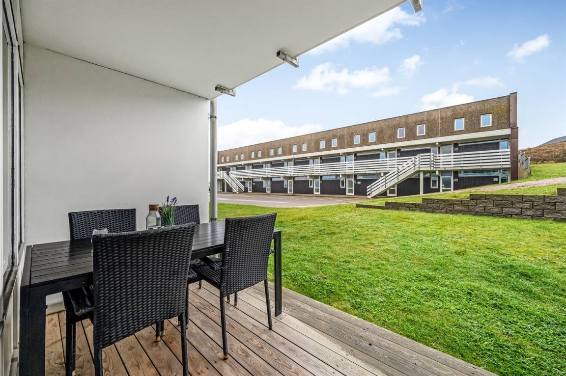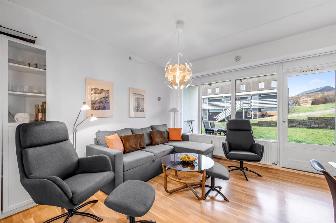 Zur Wohnung gehört überdachte Terrasse mit Gartenmöbeln. Gutes Badezimmer mit Duschnische und Fußbodenheizung. Die Küche ist u. a. mit Geschirrspüler, Mikrowelle, Tiefkühlgerät und Herd mit Ceran-Feld ausgestattet. Wohnzimmer mit TV und Chromecast sowie eine Schlafcouch. Ferner kostenlose, kabellose Internetverbindung vorhanden (Computer ist mitzubringen). Die Schlafplätze verteilen sich auf ein großes Schlafzimmer mit Doppelbett und ein kleines Zimmer mit Einzelbett. Es ist eine energiefreundliche Luft-Luft- Wärmepumpe installiert. Sandkasten für die Kinder.