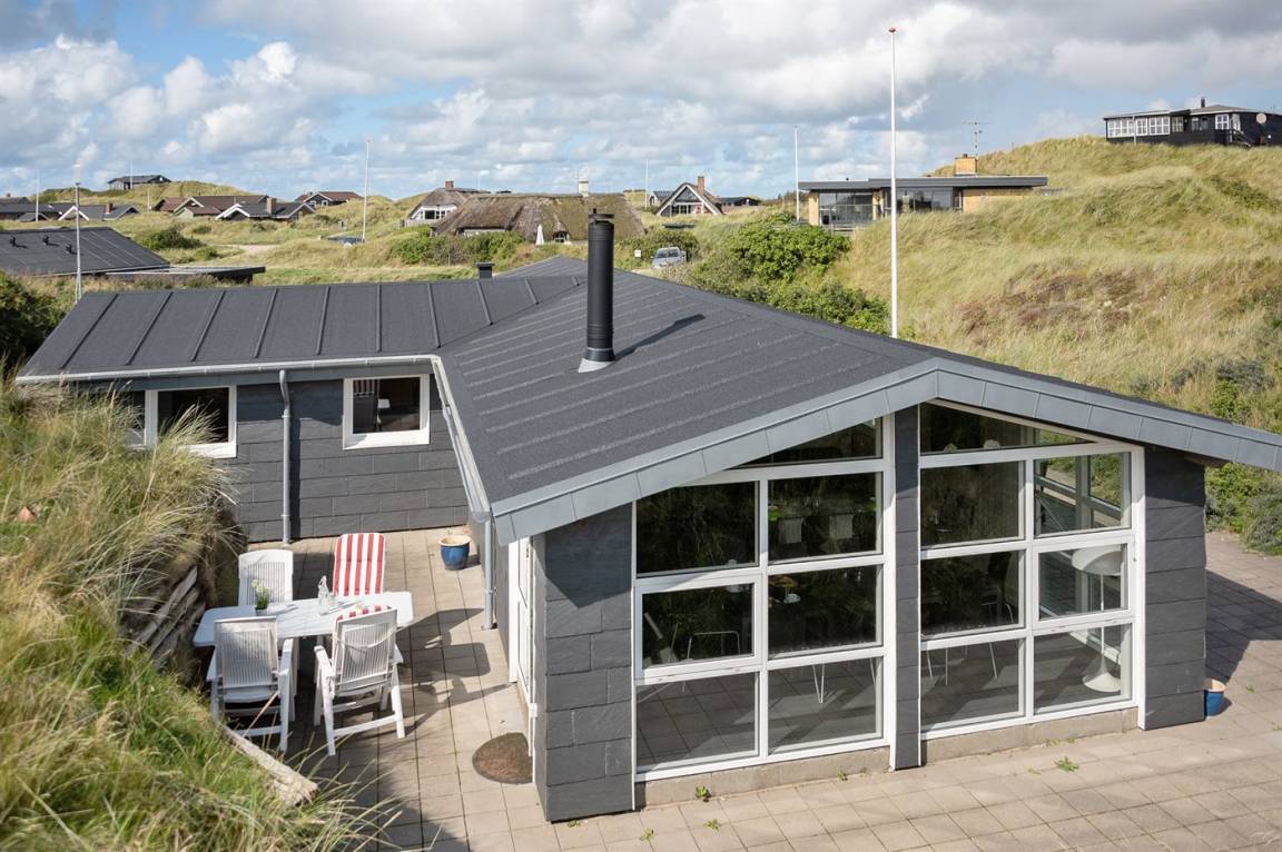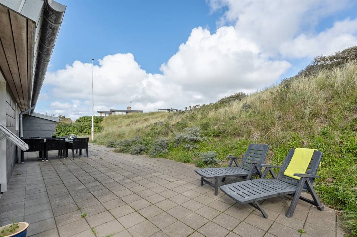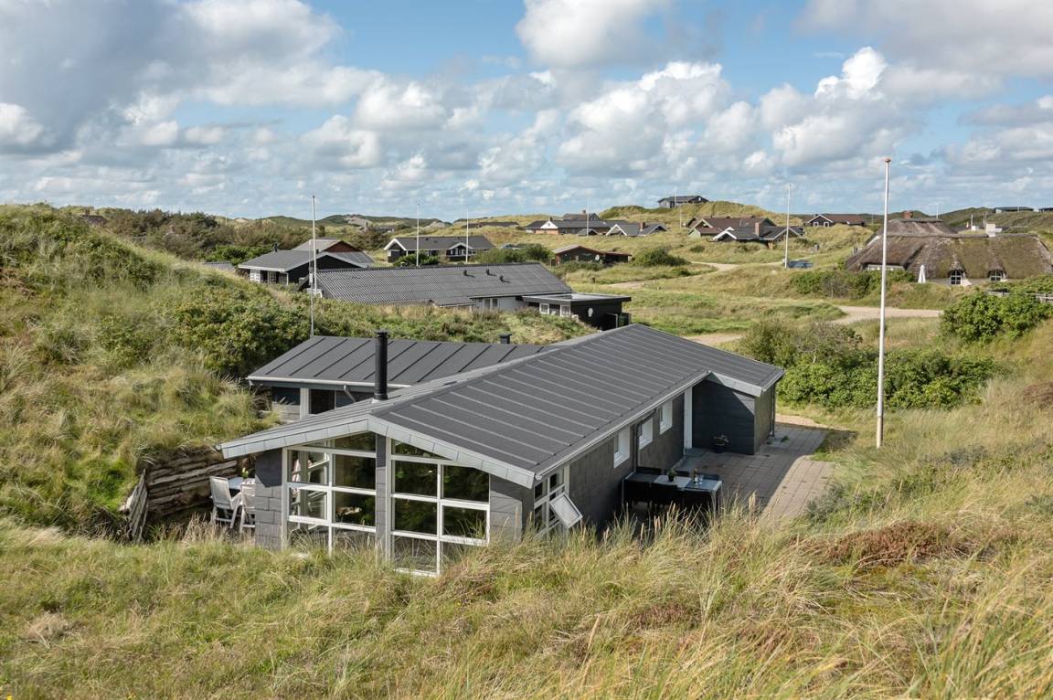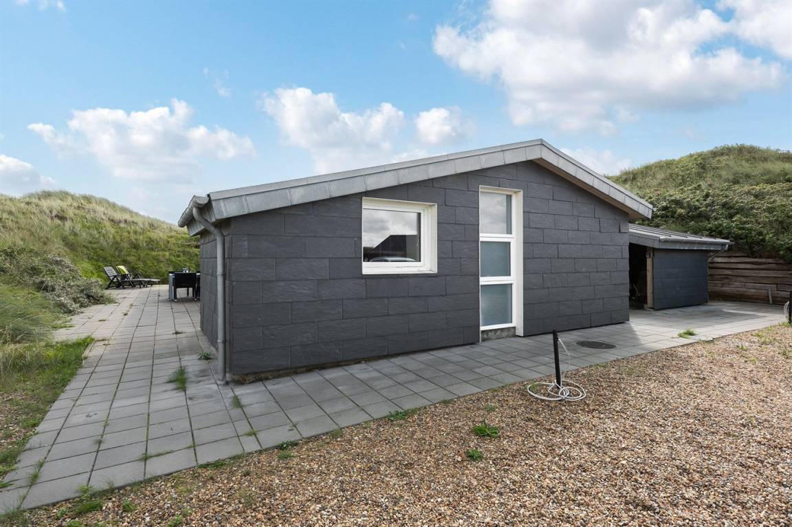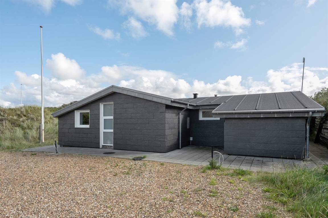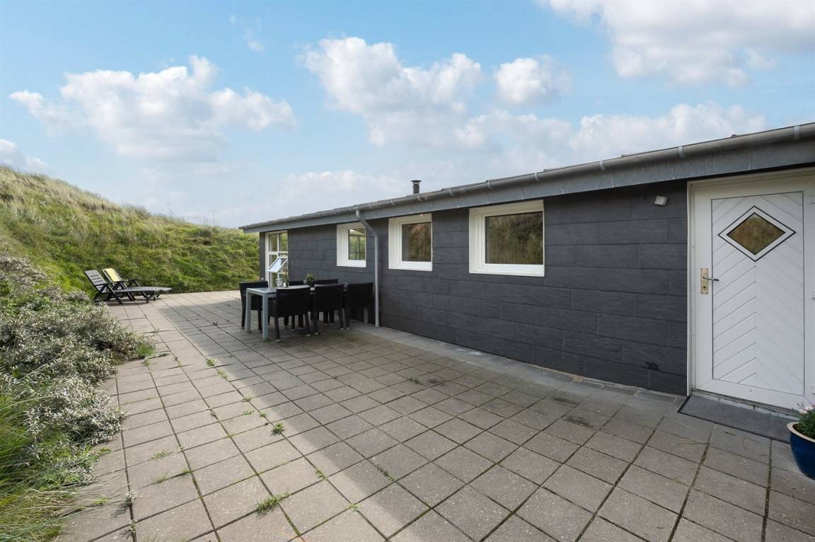 DraußenDie Ferienunterkunft liegt auf einem 1200 m² großen Dünengrundstück. Die Entfernung zum Meer beträgt 400 m. Die Entfernung zum Fjord beträgt 4000 m. Die nächste Einkaufsmöglichkeit liegt 400 m entfernt. Es steht ein 35 m² Terrassenareal zur Verfügung. Parkplatz auf dem Grundstück.