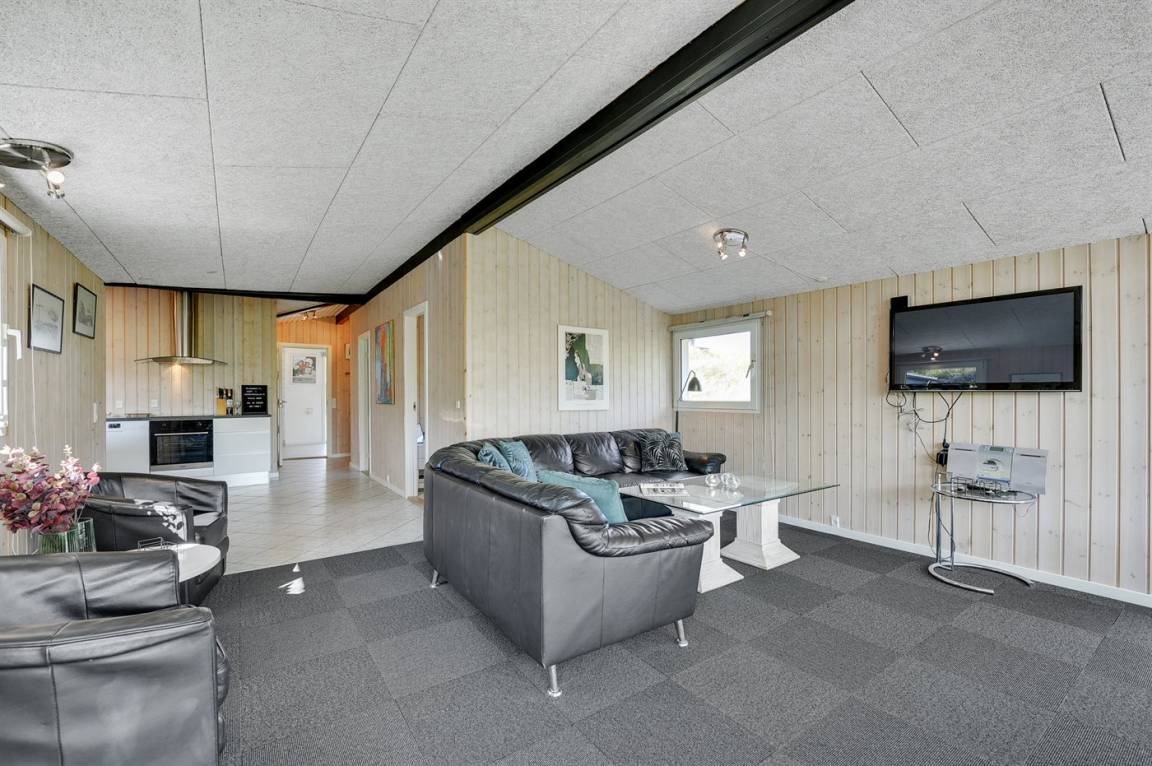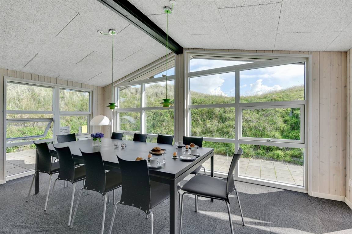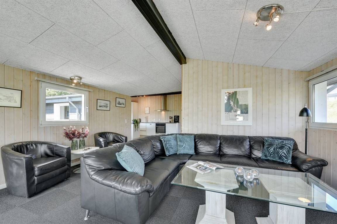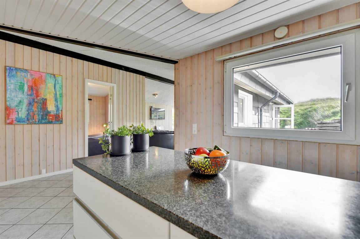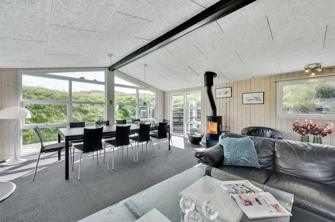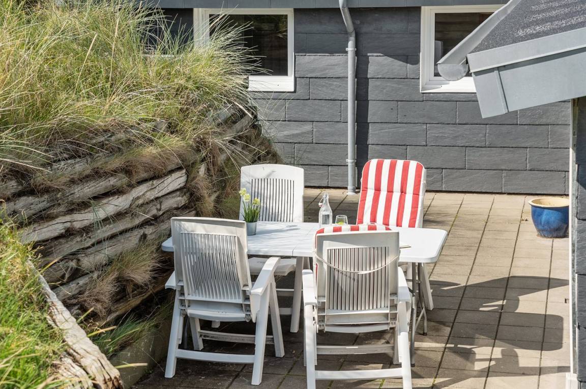 DraußenDie Ferienunterkunft liegt auf einem 1200 m² großen Dünengrundstück. Die Entfernung zum Meer beträgt 400 m. Die Entfernung zum Fjord beträgt 4000 m. Die nächste Einkaufsmöglichkeit liegt 400 m entfernt. Es steht ein 35 m² Terrassenareal zur Verfügung. Parkplatz auf dem Grundstück.