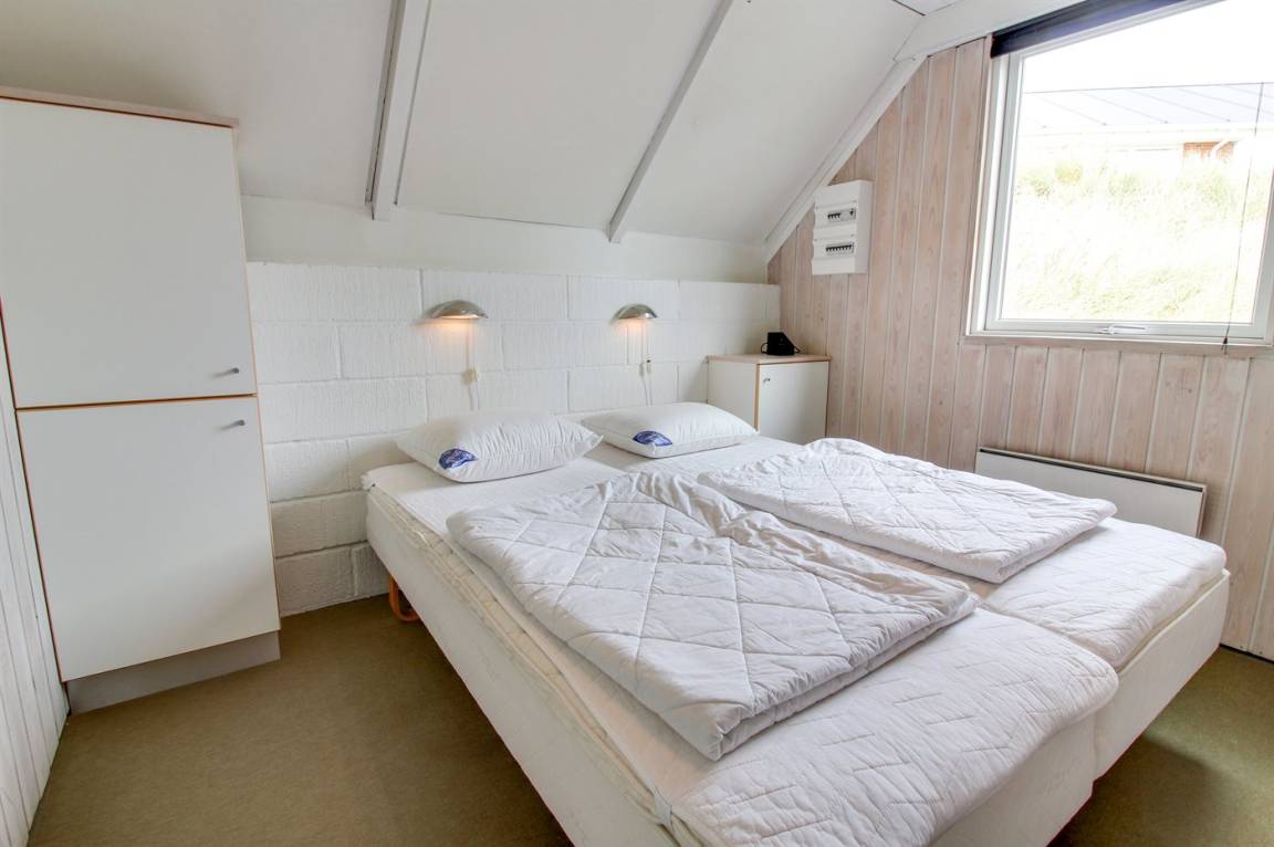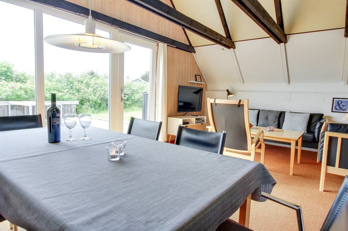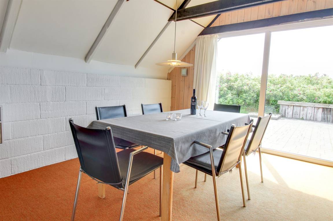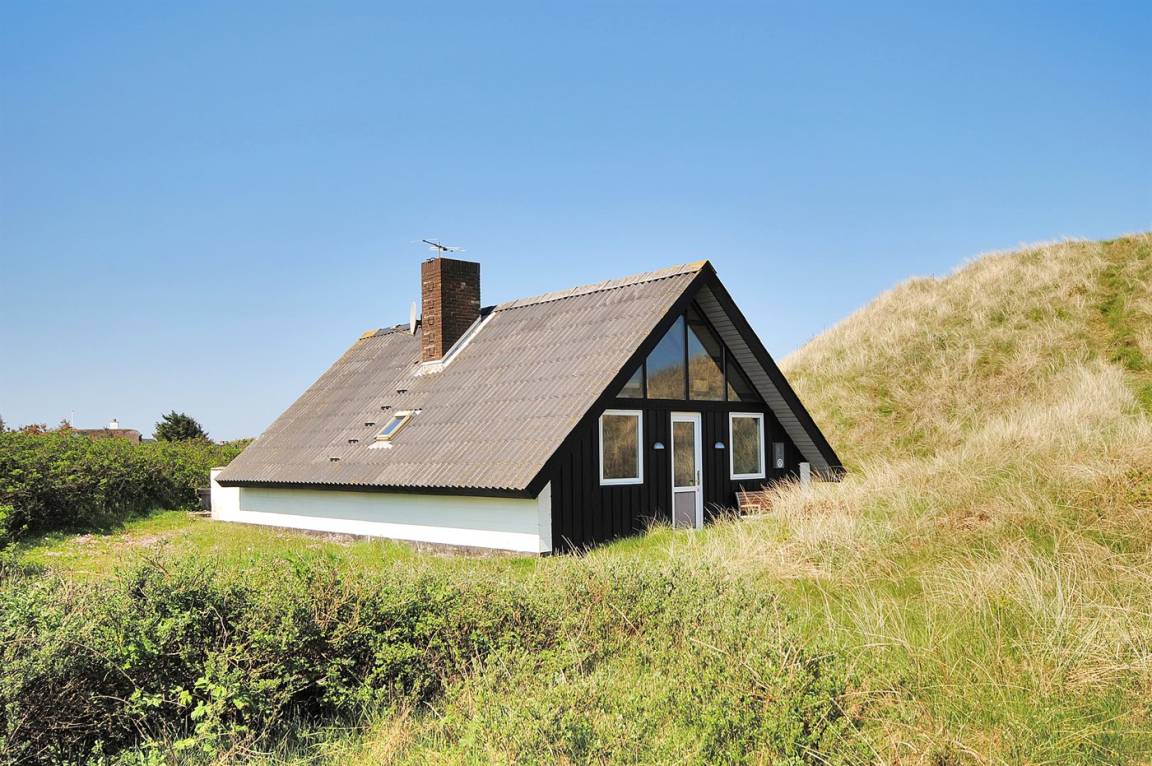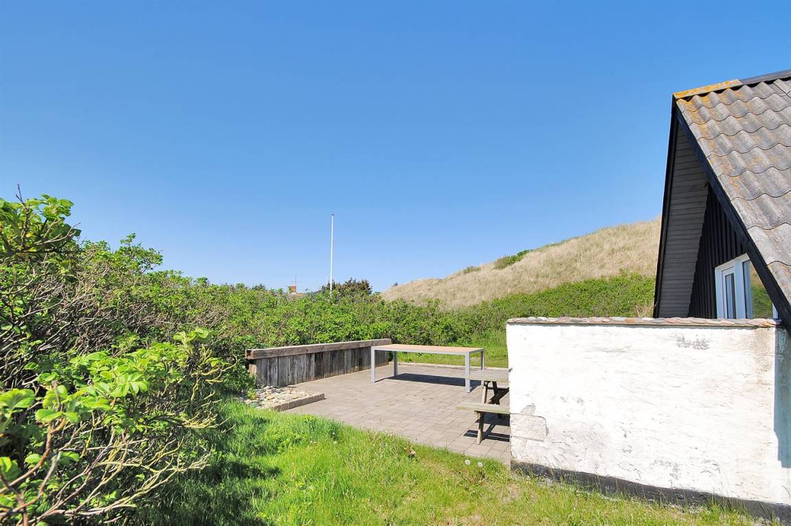 Kleines, gemütliches Ferienhaus, 1975 gebaut und 2004 renoviert, auf einem völlig ungestörten Dünengrundstück nur 600 m vom schönen Badestrand gelegen. Zum Haus gehört eine offene Terrasse mit diversen Gartenmöbeln. Badezimmer mit Duschnische. Die offene, funktionelle Küche mit u. a. Geschirrspüler und Mikrowelle liegt in Verbindung mit dem Wohnzimmer, das mit u. a. TV mit digitalem Satellitenanschluss, CD-Spieler und Kaminofen ausgestattet ist. Zugang zur Terrasse vom Wohnzimmer. 1 Schlafzimmer mit Doppelbett und 1 mit 2 Einzelbetten. Offenes Obergeschoss mit 2 Schlafplätzen (Einzelbetten) sowie TV mit DVD-Spieler. Übrigens: Das Haus wird höchstens an 6 Erwachsene vermietet.