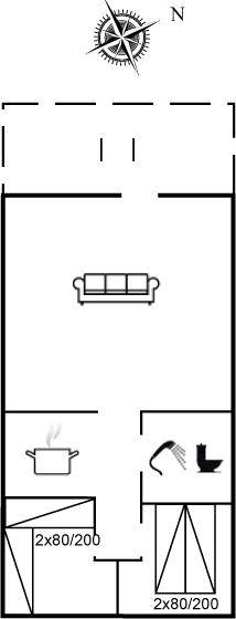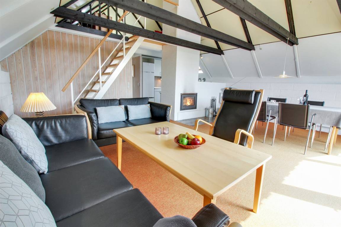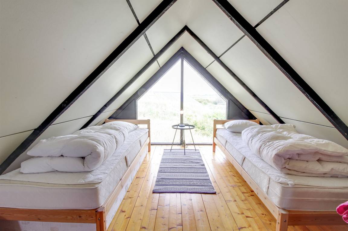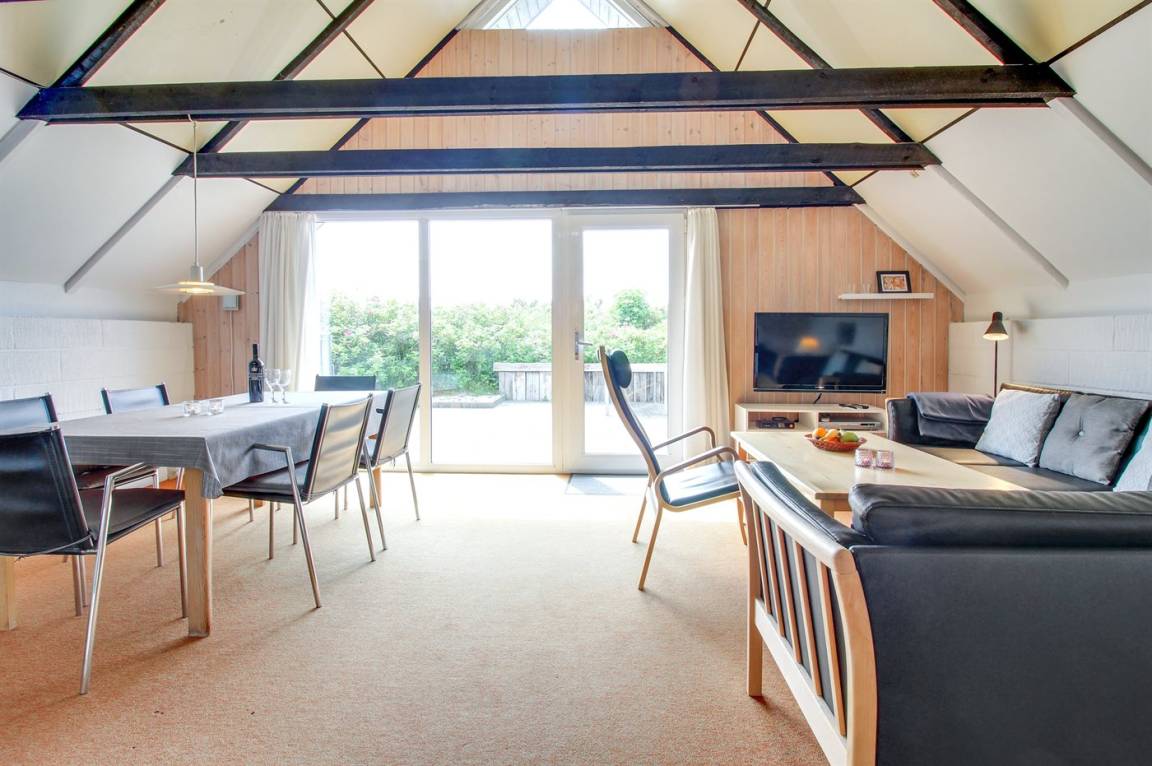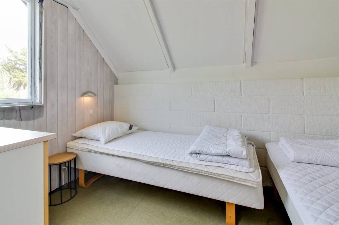 Kleines, gemütliches Ferienhaus, 1975 gebaut und 2004 renoviert, auf einem völlig ungestörten Dünengrundstück nur 600 m vom schönen Badestrand gelegen. Zum Haus gehört eine offene Terrasse mit diversen Gartenmöbeln. Badezimmer mit Duschnische. Die offene, funktionelle Küche mit u. a. Geschirrspüler und Mikrowelle liegt in Verbindung mit dem Wohnzimmer, das mit u. a. TV mit digitalem Satellitenanschluss, CD-Spieler und Kaminofen ausgestattet ist. Zugang zur Terrasse vom Wohnzimmer. 1 Schlafzimmer mit Doppelbett und 1 mit 2 Einzelbetten. Offenes Obergeschoss mit 2 Schlafplätzen (Einzelbetten) sowie TV mit DVD-Spieler. Übrigens: Das Haus wird höchstens an 6 Erwachsene vermietet.