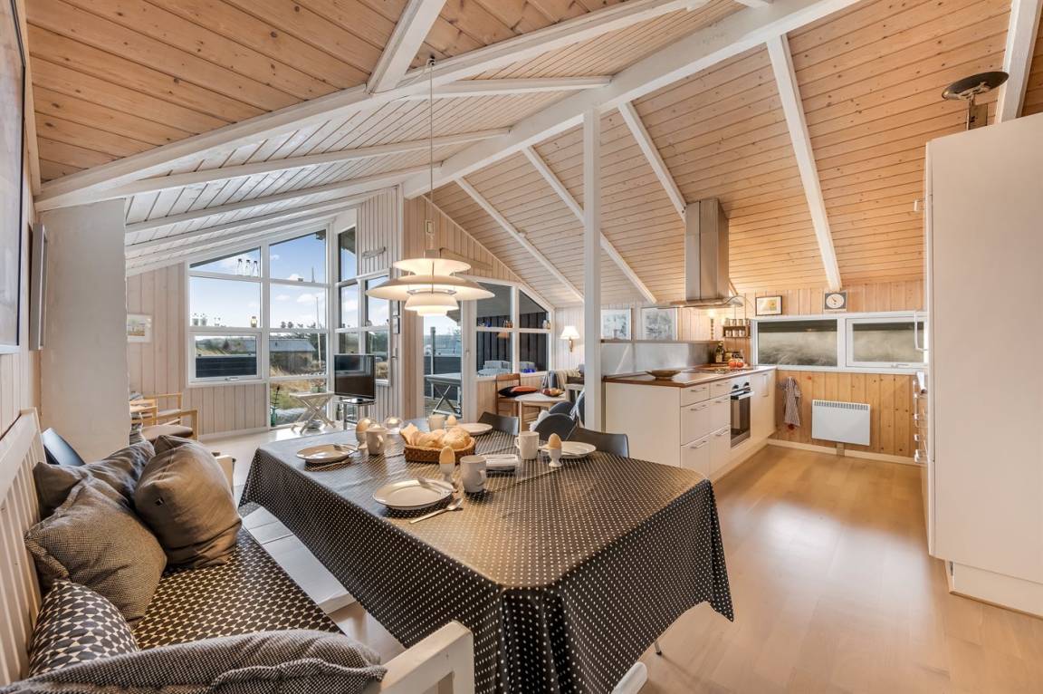 Genieße deinen Urlaub in diesem netten Ferienhaus, mit schöner Lage auf einem hügeligen Dünengrundstück im naturschönen Feriengebiet Houvig – nur 400 Meter vom Strand entfernt. Hier erlebst du echte Küstenstimmung mit Ruhe, frischer Meeresluft und viel Platz zum Entspannen.