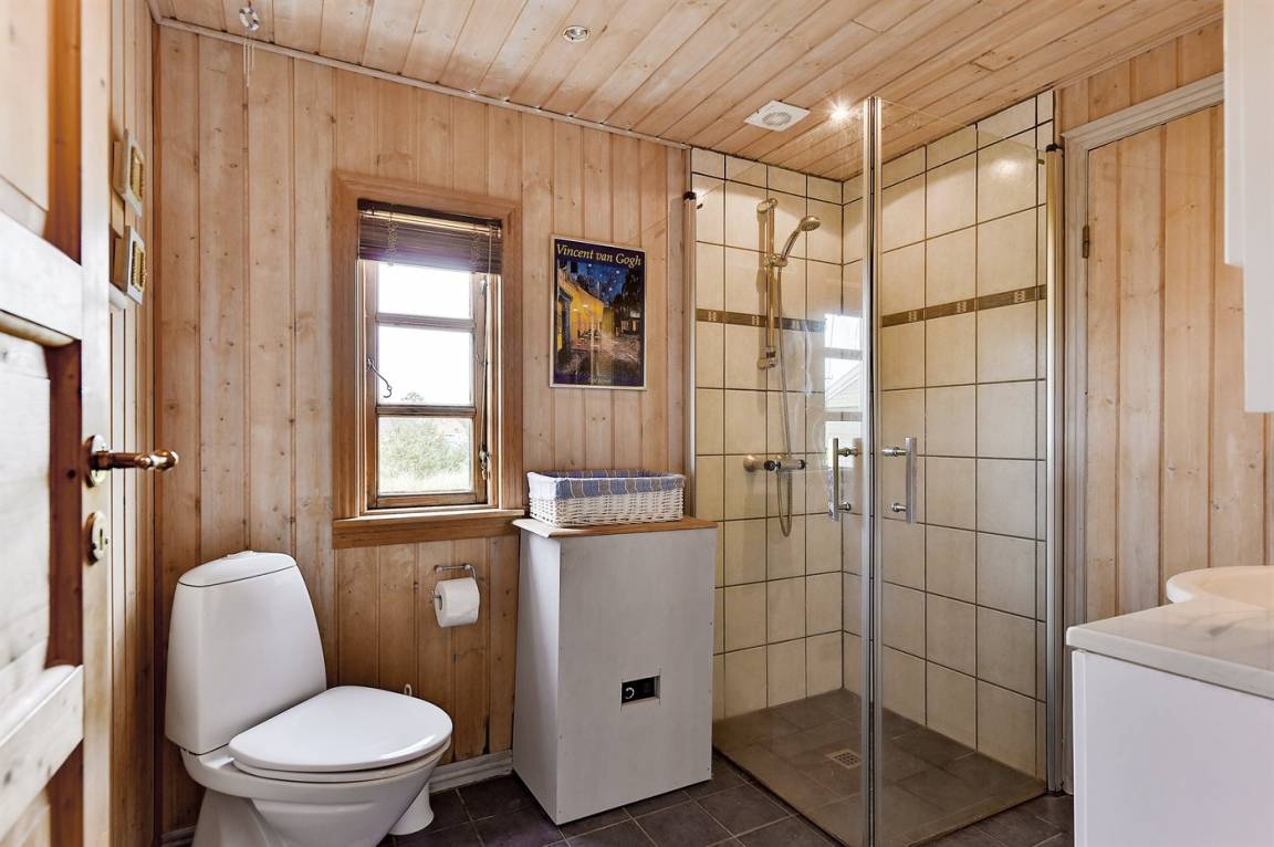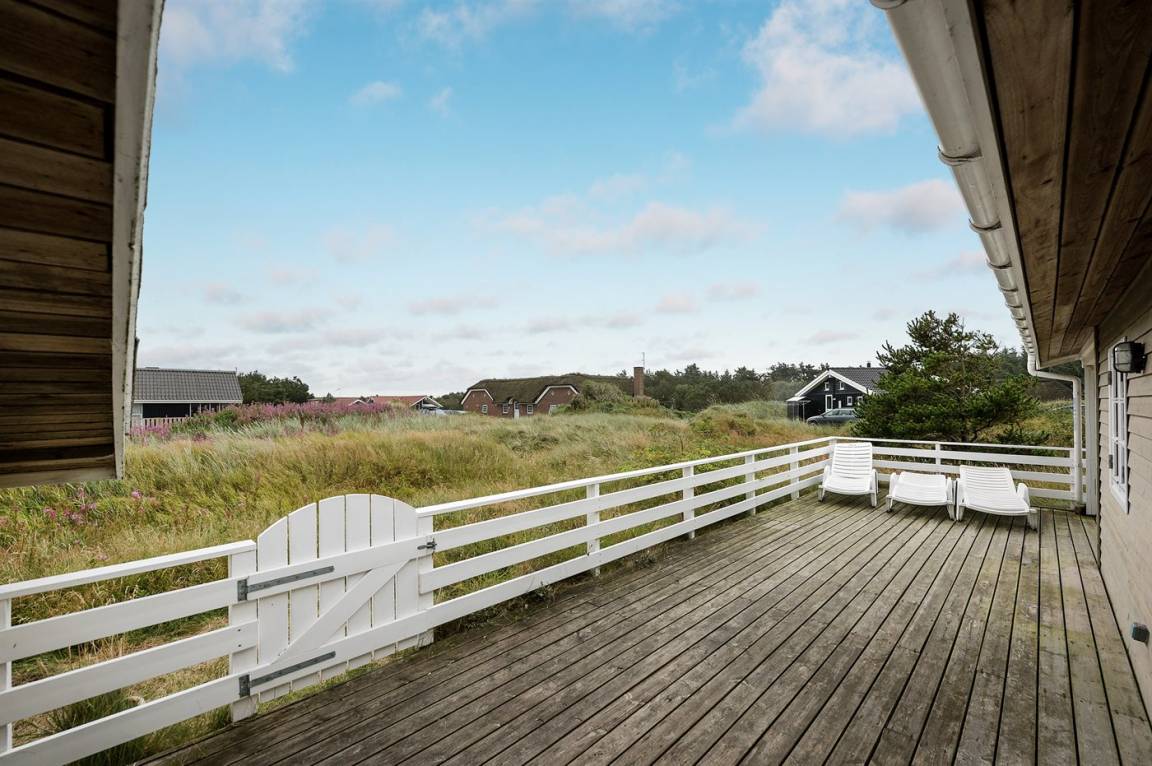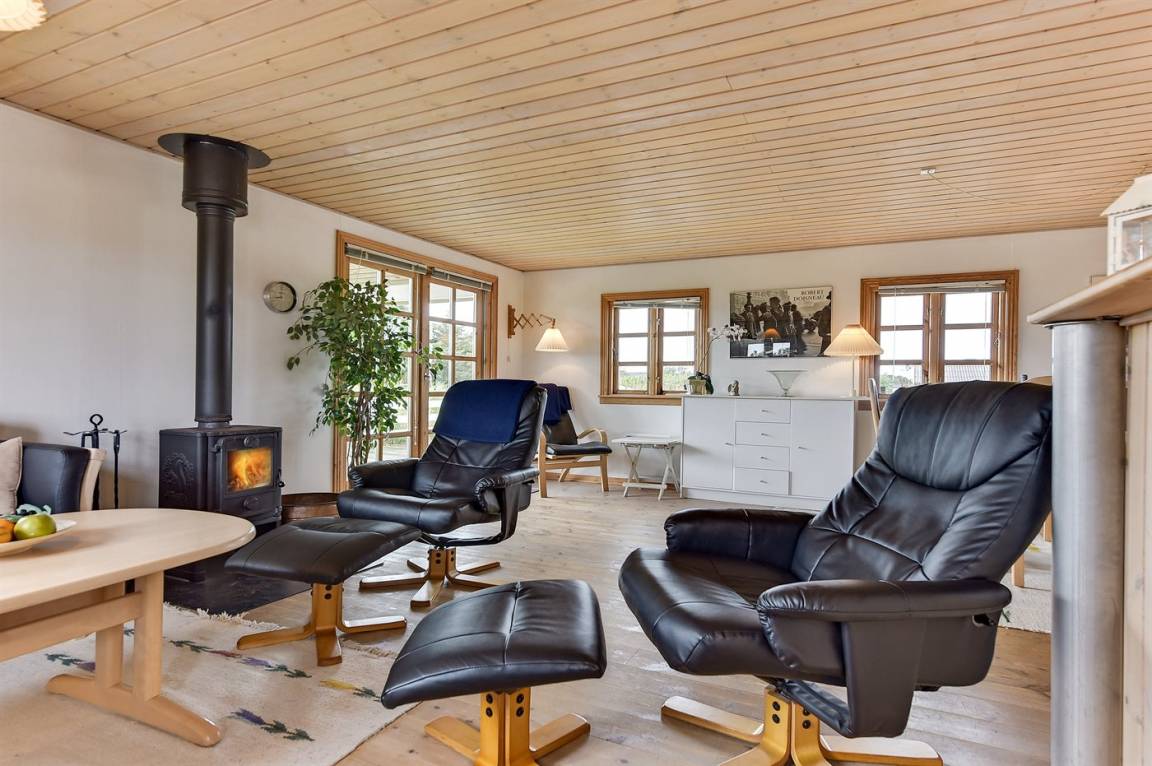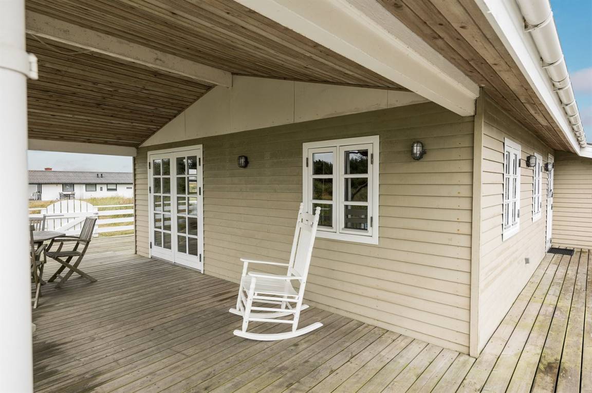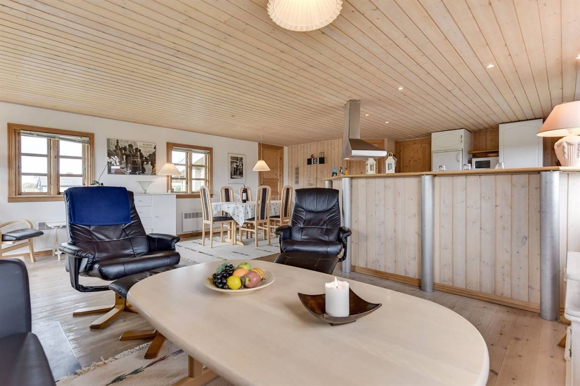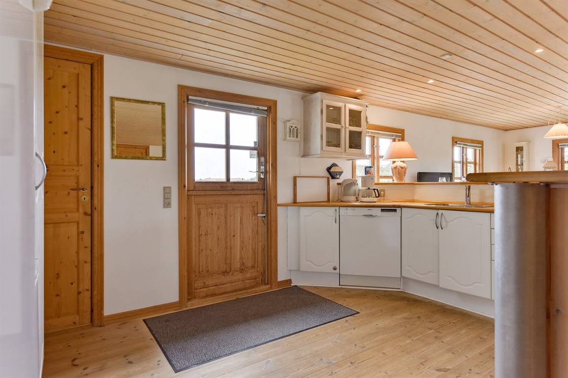 Schönes Ferienhaus aus Holz, 2000 gebaut, auf einem schönen Naturgrundstück gelegen, nur 600 m vom Strand entfernt. Schöne offene sowie überdachte Terrassen mit Gartenmöbeln. Hell gebeizte Holzböden und -decken. Gestrichene Wände. Badezimmer mit beheiztem Klinkerboden und Duschnische. Vom Badezimmer hat man direkten Zutritt zur Sauna. Die Küche ist gut ausgestattet mit u. a. Herd mit Ceran-Feld, Mikrowelle, Warmluftofen, Tiefkühlgerät und Geschirrspüler. Das gemütliche Wohnzimmer enthält Kaminofen, TV mit digitalem Satellitenanschluss und Radio. Kinderbett, Kinderhochstuhl, Sandkasten und Schaukel für die Kinder. Waschmaschine und Wäschetrockner vorh. Ausserdem kostenlose kabellose Internetverbindung. Ein wirklich herrliches Ferienhaus! Gute Aktivitätsmöglichkeiten in der Gegend.
