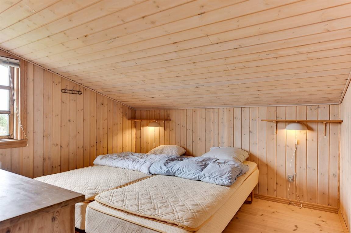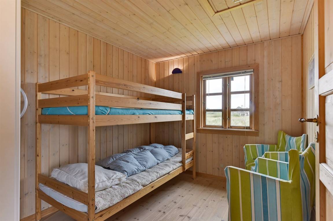 „The vacation at the holiday home: Wir machen pro Jahr 2-3 Urlaube in Dänemark in einem Ferienhaus. Ich weiß das in einem dänischen Ferienhaus immer wenig Schrankraum für Kleidung vorhanden ist, aber so wenig wie in diesem Haus hatten wir noch nie. Das Ferienhaus ist für 6 Personen, das Schlafzimmer mit dem großen Doppelbett hat keinen Kleiderschrank sondern nur eine Kommode, das Schlafzimmer mit dem kleinen Doppelbett hat keinen Schrank und auch keine anderweitige Möglichkeit seine Kleidung irgendwo unterzubringen und in dem Etagenbettzimmer ist zwar ein Kleiderschrank, dieser hat auf der linken Seite eine Kleiderstange, die rechte Seite hat keine Regalböden und war vollgestopft mit Bettdecken. Für 5 Personen, die wir waren, sehr wenig Möglichkeiten die Kleidung unterzubringen. Das sollte im Internet bei der Hausbeschreibung auf alle Fälle mitgeteilt werden, wir hätten dieses Haus nicht gemietet wenn wir das gewußt hätten. Dann möchte ich noch die Dusche erwähnen, die unten so undicht ist das beim duschen das ganze Badezimmer überflutet wird und bei dem Etagenbett müssten mal die Schrauben erneuert werden, es wackelte so stark das darin sicher keine Erwachsenen schlafen können. ich habe das bei der Abreise erwähnt, hoffentlich wird dann aud etwas gemacht.“