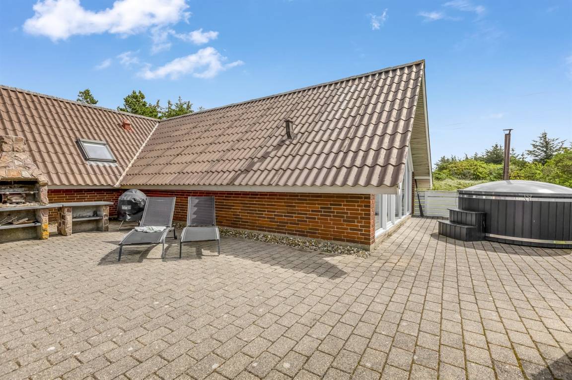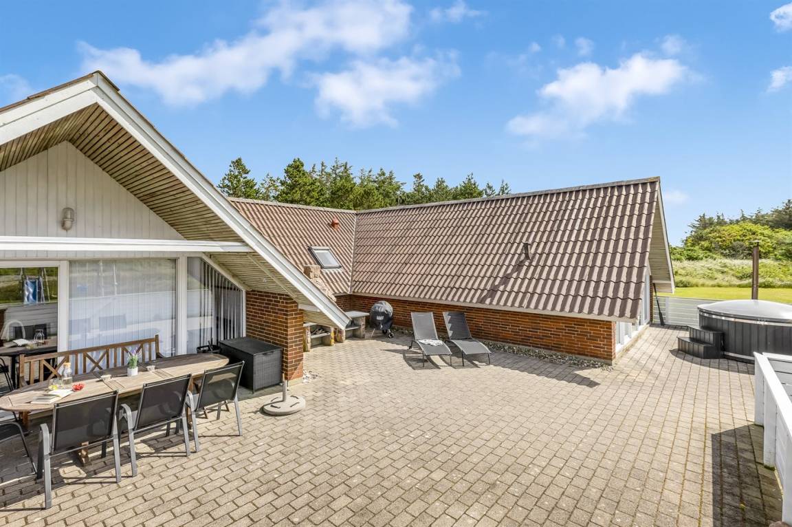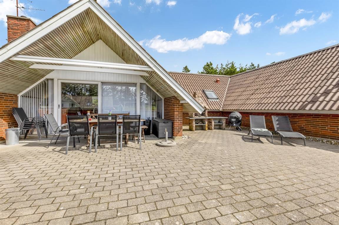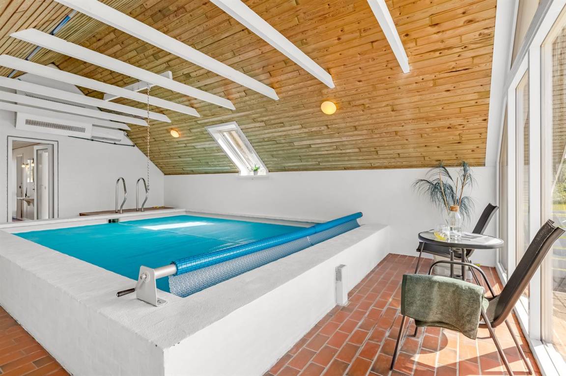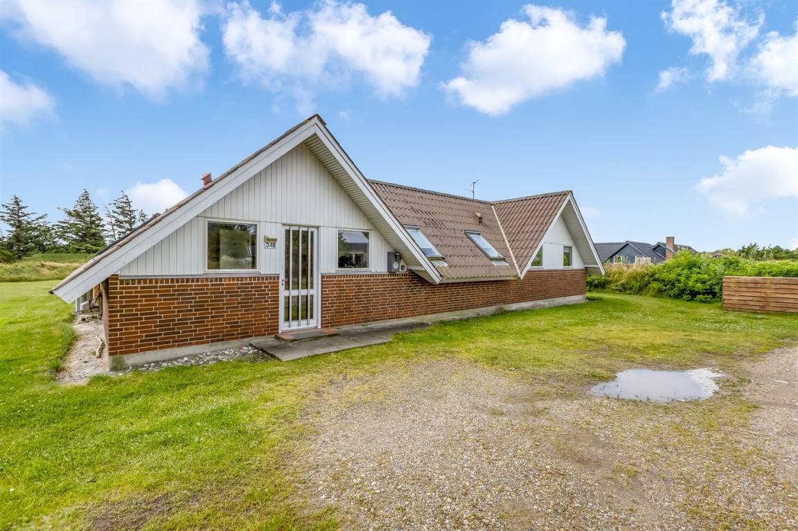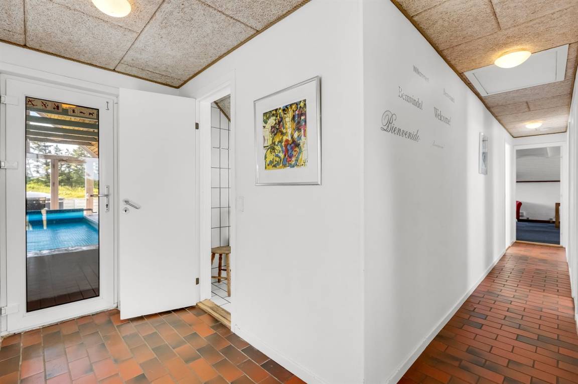 Ein geräumiges und gepflegtes Ferienhaus mit Swimmingpool und Sauna. Das Ferienhaus ist laufend modernisiert, und liegt auf einem großen Naturgrundstück. Zum Haus gehört ein schönes, großes Terrassenareal mit gutem Windschutz, Gartenmöbeln und Grill/Kamin. Auf dem Grundstück, mit guten Spielmöglichkeiten, finden Sie Spielturm mit Rutsche und Schaukel sowie Sandkasten. Es sind zwei energiesparende Wärmepumpen installiert: Eine Luft-Wasser Wärmepumpe in der Swimmingpool-Abteilung und eine Luft-Luft Wärmepumpe im Wohnzimmer. Ein gutes Ferienhaus - in einem Gebiet mit guten Aktivitätsmöglichkeiten gelegen und nur wenige Minuten Fahrt vom Badeort Søndervig entfernt.