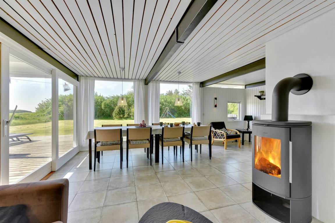 Tolles Ferienhaus in schöner Lage am Ende einer Sackgasse, direkt angrenzend an die ländliche Umgebung mit wunderschöner Natur. Das Haus liegt zurückgezogen auf einem sehr großen Grundstück und dennoch nicht weit vom Golfplatz, dem Ortskern von Søndervig und einem Angelsee entfernt.