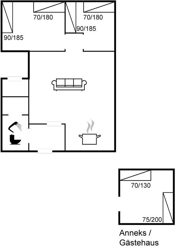 SchlafverhältnisseDie Schlafplätze verteilen sich auf 3 Schlafräume. 6 Schlafplätze in Einzelbetten. 2 von diesen Schlafplätzen befinden sich im Gästehaus.