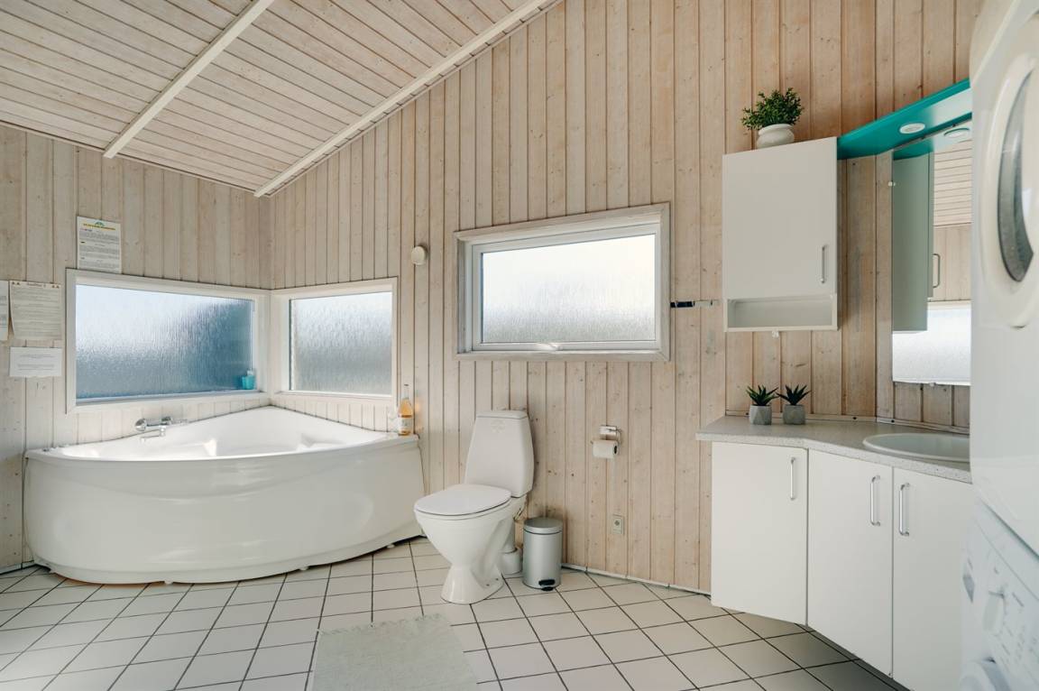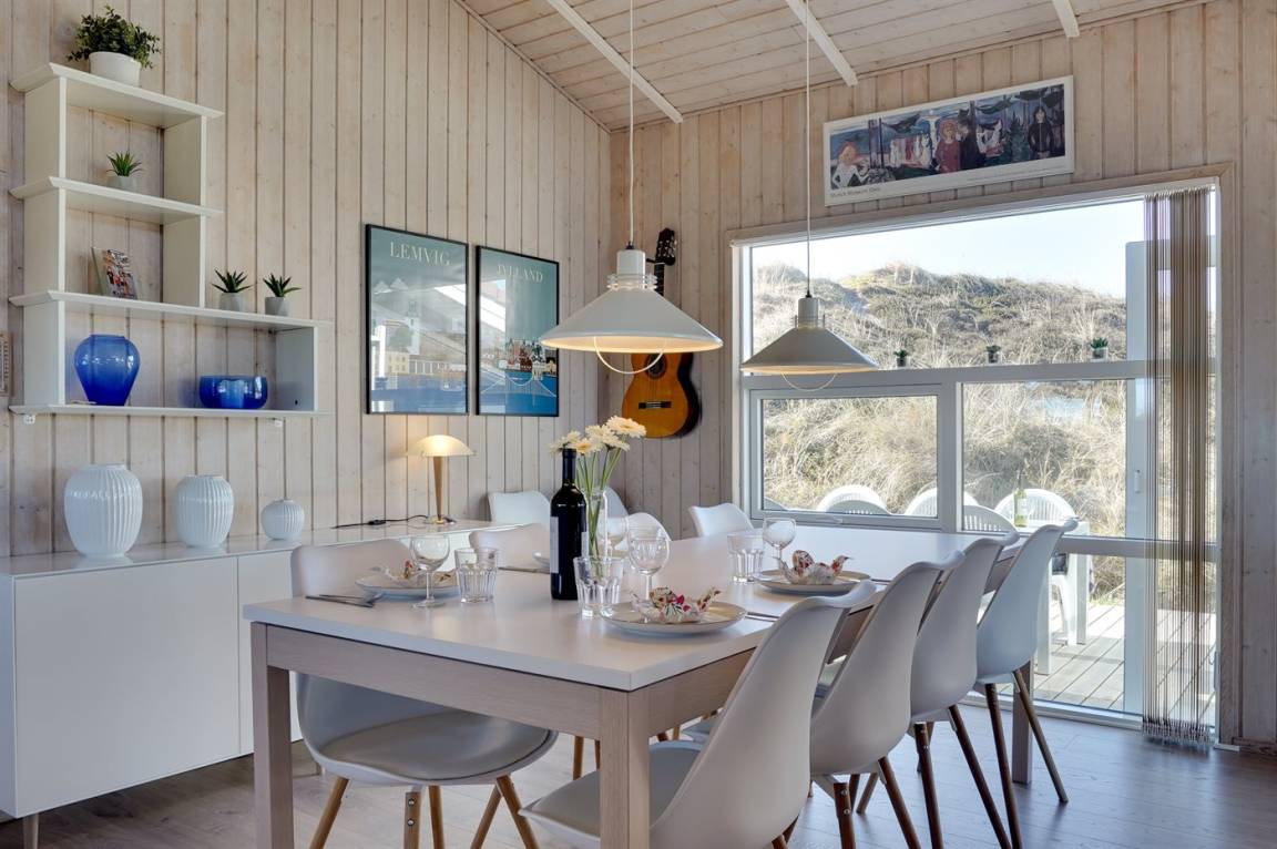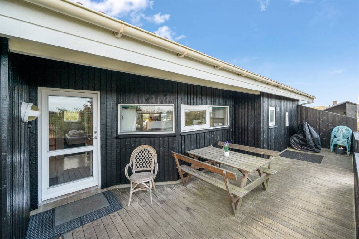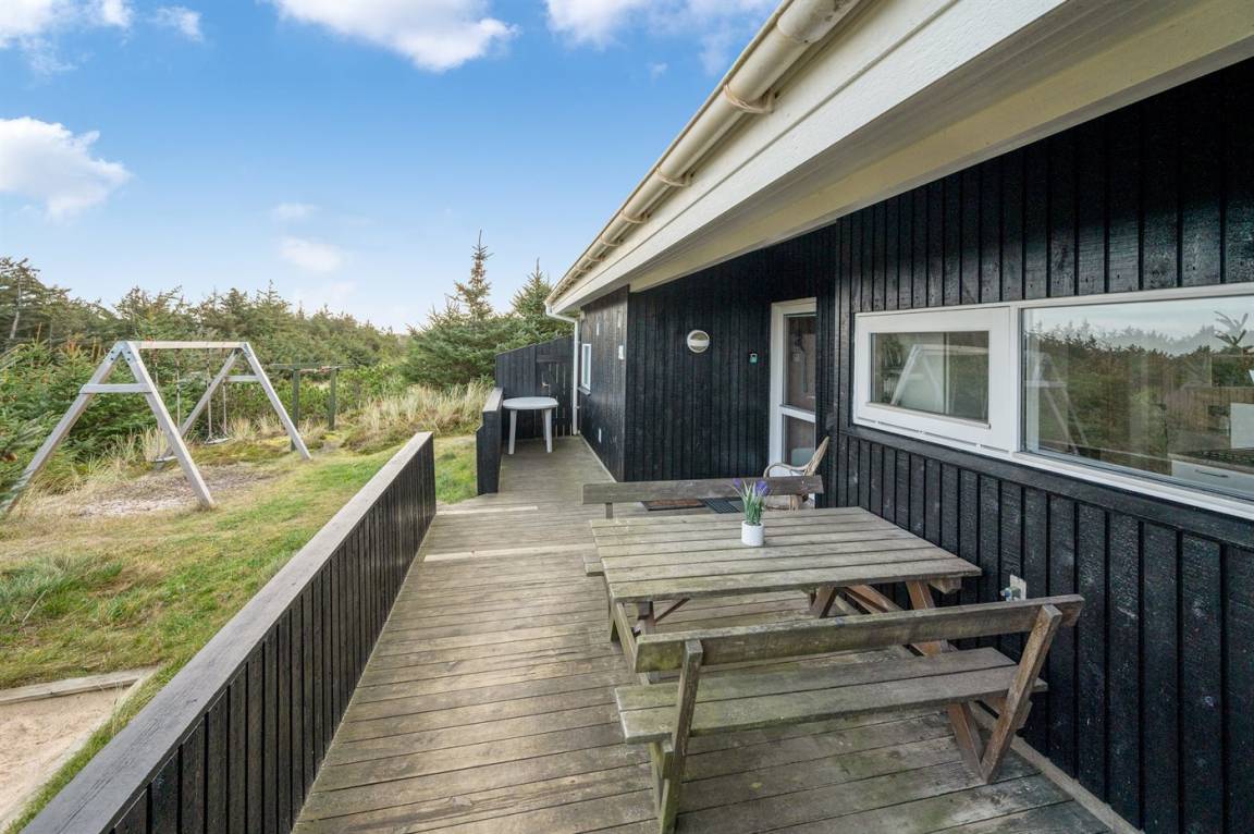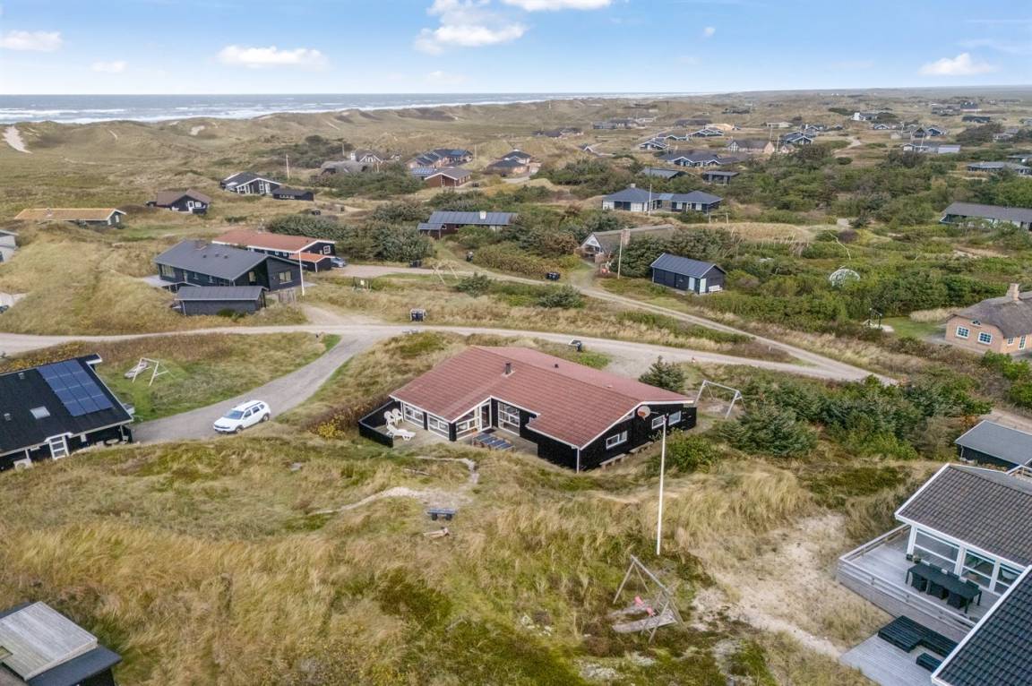 Schönes Ferienhaus aus Holz, 1993, auf einem hügeligen Dünengrundstück gelegen, nur 250 m vom Strand entfernt. Meeresblick vom höchsten Punkt des Grundstücks. Zum Haus gehören 2 schöne Terrasse mit gutem Windschutz und Gartenmöbeln. Teils Teppichböden und teils Holzböden. Das Haus ist besonders gut eingerichtet, mit u.a. 2 Badezimmern. Im großen Badezimmer gibt es 2-Pers. Whirlpool, Duschnische und Fußbodenheizung. Von hier direkter Zutritt zur Sauna. Extra Badezimmer mit Duschnische und Fußbodenheizung. Die Küchenabteilung ist mit Geschirrspüler, Tiefkühlgerät, Mikrowelle, Warmluftofen und Herd mit Ceran-Feld ausgestattet. Im gemütlichen Wohnzimmer finden Sie Kaminofen, Stereoanlage mit CD-Spieler sowie 55" TV mit digitalem Satellitenanschluss, DVD-Spieler und vintage Spielkonsole Super Nintendo. An weiterer Ausstattung können kostenlose, kabellose Internetverbindung (eigener Computer muss mitgebracht werden), Radio, Waschmaschine, Wäschetrockner, 2 Kinderbetten und Kinderhochstuhl erwähnt werden. 4 schöne Schlafzimmer mit gutem Schrankplatz. Ferner hat das Haus 2 offene Obergeschosse, das eine mit 2 Schlafplätzen und Meeresblick sowie 32" TV mit Chromecast und vintage Spielkonsole Nintendo - hier können es sich die etwas größeren Kinder so richtig gemütlich machen (Schaumgummimatratzen - nicht aus dem Grundriß ersichtlich). Sandkasten und Schaukel. Das Haus liegt in einem ruhigen und naturschönen Gebiet mit guten Aktivitätsmöglichkeiten - nur wenige min. Fahrt vom Badeort Søndervig entfernt.