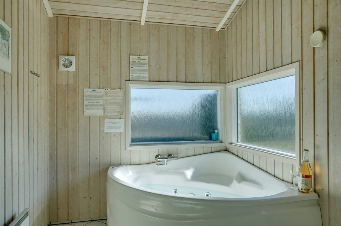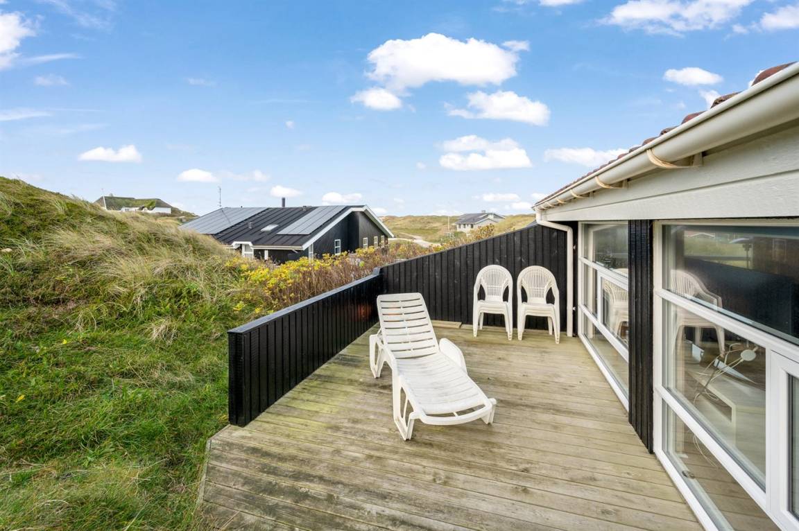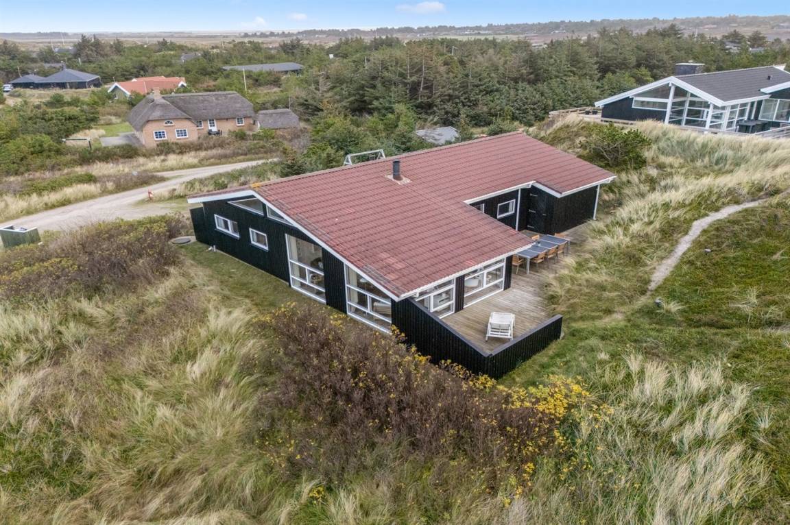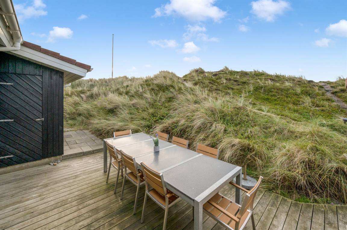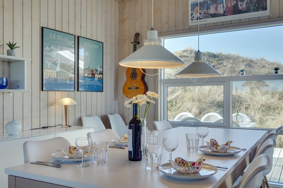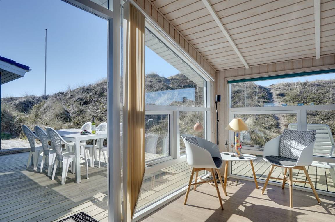 Schönes Ferienhaus aus Holz, 1993, auf einem hügeligen Dünengrundstück gelegen, nur 250 m vom Strand entfernt. Meeresblick vom höchsten Punkt des Grundstücks. Zum Haus gehören 2 schöne Terrasse mit gutem Windschutz und Gartenmöbeln. Teils Teppichböden und teils Holzböden. Das Haus ist besonders gut eingerichtet, mit u.a. 2 Badezimmern. Im großen Badezimmer gibt es 2-Pers. Whirlpool, Duschnische und Fußbodenheizung. Von hier direkter Zutritt zur Sauna. Extra Badezimmer mit Duschnische und Fußbodenheizung. Die Küchenabteilung ist mit Geschirrspüler, Tiefkühlgerät, Mikrowelle, Warmluftofen und Herd mit Ceran-Feld ausgestattet. Im gemütlichen Wohnzimmer finden Sie Kaminofen, Stereoanlage mit CD-Spieler sowie 55" TV mit digitalem Satellitenanschluss, DVD-Spieler und vintage Spielkonsole Super Nintendo. An weiterer Ausstattung können kostenlose, kabellose Internetverbindung (eigener Computer muss mitgebracht werden), Radio, Waschmaschine, Wäschetrockner, 2 Kinderbetten und Kinderhochstuhl erwähnt werden. 4 schöne Schlafzimmer mit gutem Schrankplatz. Ferner hat das Haus 2 offene Obergeschosse, das eine mit 2 Schlafplätzen und Meeresblick sowie 32" TV mit Chromecast und vintage Spielkonsole Nintendo - hier können es sich die etwas größeren Kinder so richtig gemütlich machen (Schaumgummimatratzen - nicht aus dem Grundriß ersichtlich). Sandkasten und Schaukel. Das Haus liegt in einem ruhigen und naturschönen Gebiet mit guten Aktivitätsmöglichkeiten - nur wenige min. Fahrt vom Badeort Søndervig entfernt.