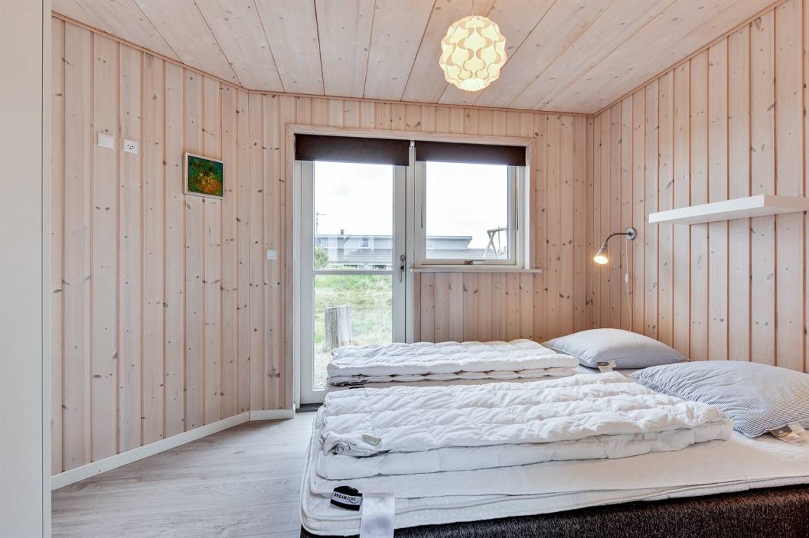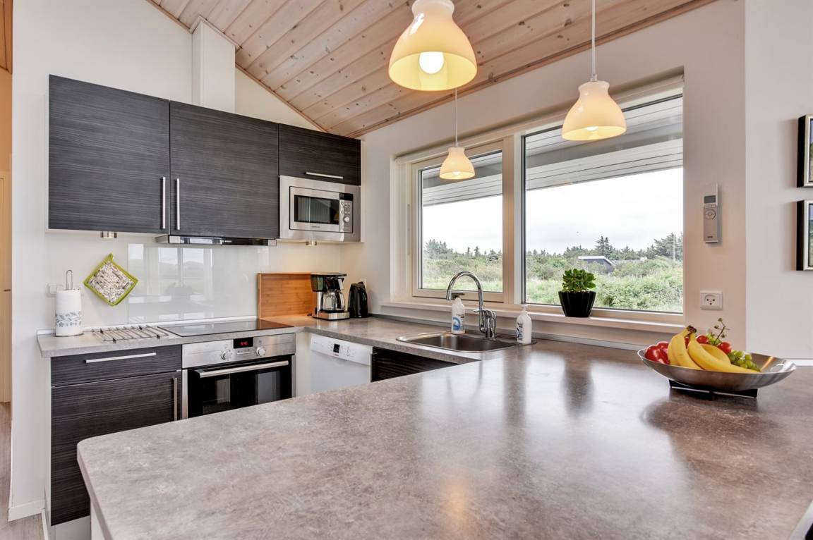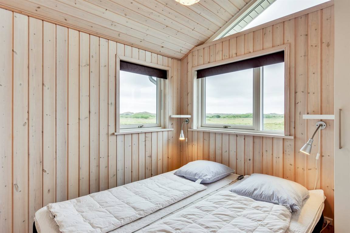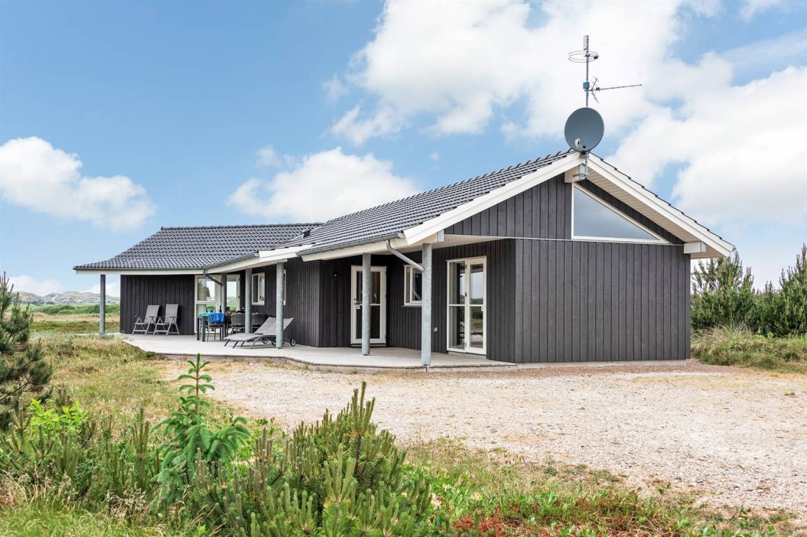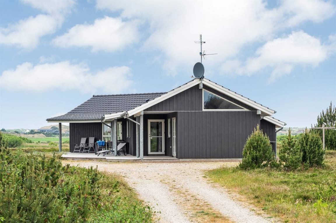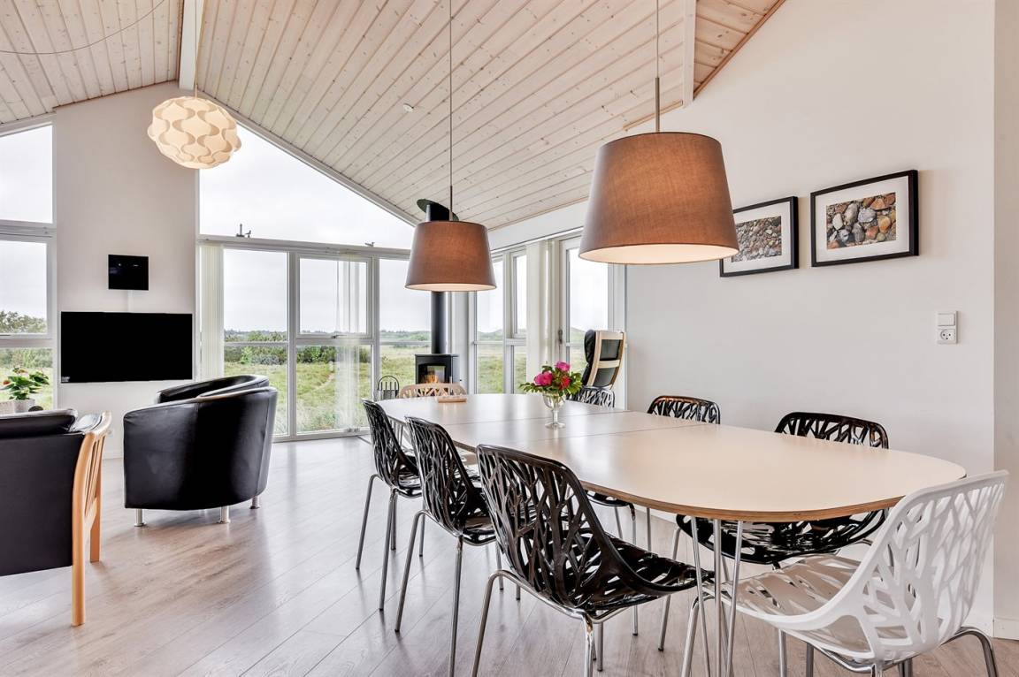 Dieses herrliche Luxusferienhaus mit unglaublich gutem Lichteinfall liegt auf einem Naturgrundstück mit schöner Aussicht über das Gebiet und der Dünenlandschaft. Das Haus ist gut gedämmt und 2012 aus Qualitätsmaterialien gebaut. Es gibt ein schönes, zum Teil überdachtes Terrassenareal mit Gartenmöbeln. 2 herrliche Badezimmer, beide mit Duschnische und beheizbarem Klinkerboden. Das eine enthält ferner einen 2-Pers.-Whirlpool und Sauna. Beheizbare Holzböden in den übrigen Räumen. Die schicke und gut ausgestattete Küche enthält u. a. Geschirrspüler, Mikrowelle, Tiefkühlgerät (100 l), Umluftofen und Herd mit Ceran-Feld. Das schöne Esszimmer ist mit dem geschmackvoll eingerichteten Wohnzimmer, von dem Sie die Aussicht auf die schöne Natur mit der Dünenlandschaft im Hintergrund genießen können, kombiniert. Im Wohnzimmer finden Sie Kaminofen, TV mit digitalem Satellitenanschluss, DVD-Spieler und Stereoanlage mit CD-Spieler. Die Schlafplätze verteilen sich auf 4 gute Schlafzimmer, alle mit Doppelbett. Von dem einen Zimmer haben Sie Ausgang zur Terrasse. Ein großer Aktivitätsraum mit Billard, Tischfußball, zusätzliches TV und einer kleinen Bar steht ebenfalls zu Ihrer Verfügung - der perfekte Platz zum gemütlichen Beisammensein. An weiterer Ausstattung können kostenlose, kabellose Internetverbindung (Computer ist mitzubringen), Waschmaschine und Wäschetrockner erwähnt werden. Für die jüngsten Feriengäste stehen Kinderbett und Kinderhochstuhl sowie Sandkasten und Schaukel zur Verfügung. Hinter dem Haus gibt es einen Außenfischreinigungsplatz. Es ist ein Ladestecker für Elektroautos installiert. Ein herrliches und modernes Ferienhaus mit einem guten Innenklima - sowohl für 1 als auch 2 Familien geeignet. Das Haus liegt in einem Gebiet mit guten Aktivitätsmöglichkeiten wie z. B. 27-Loch Golfplatz und Put & Take Angelsee. Ein Pfad führt vom Grundstück direkt an das Meer. Der Badeort Söndervig liegt nur wenige Minuten Fahrt vom Haus entfernt - hier finden Sie einen großen, modernen Supermarkt, Restaurants, verschiedene Läden, Bowling- und Fitnesscenter u. a. m. Übrigens: Das Haus ist voll gedämmt und es ist eine Erdheizung installiert, die die Heizkosten reduziert.