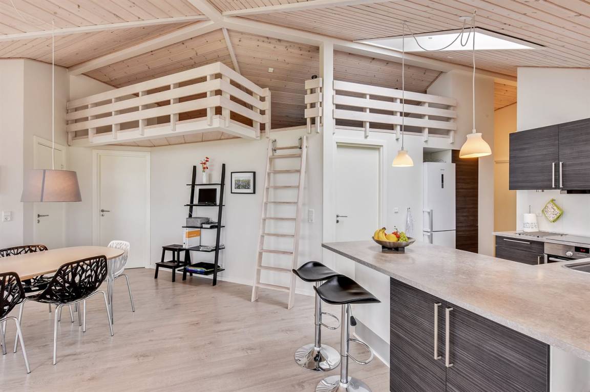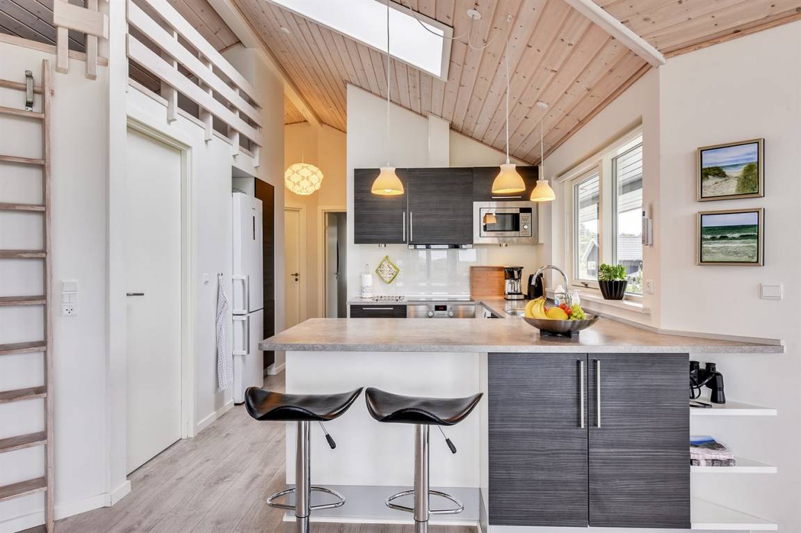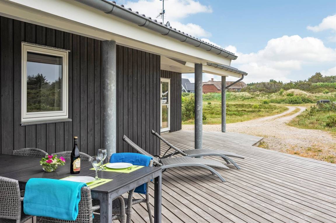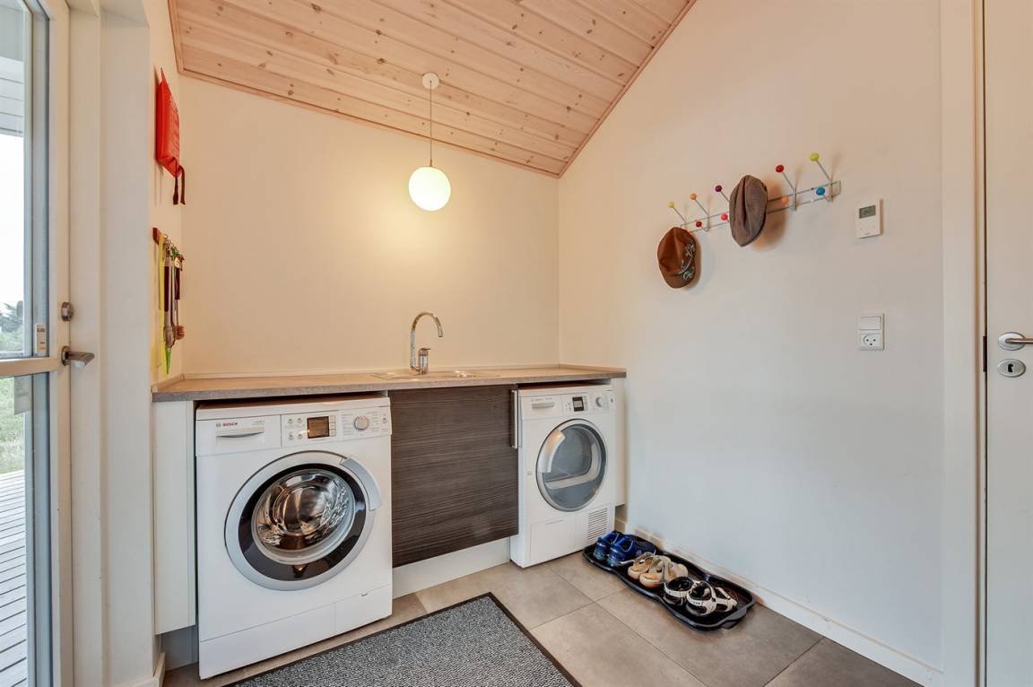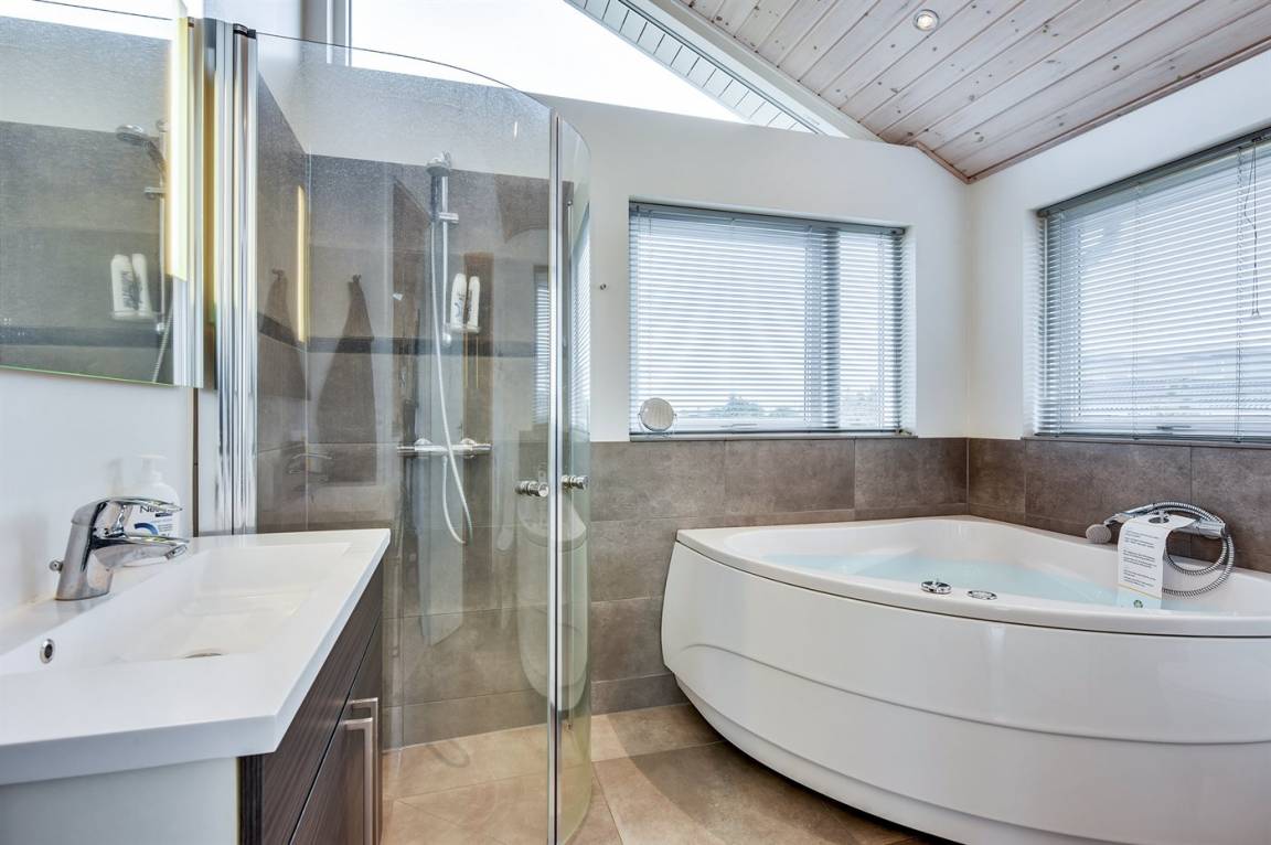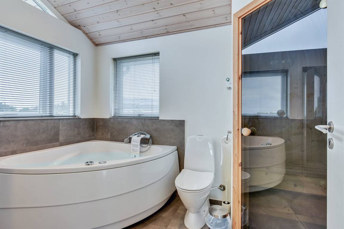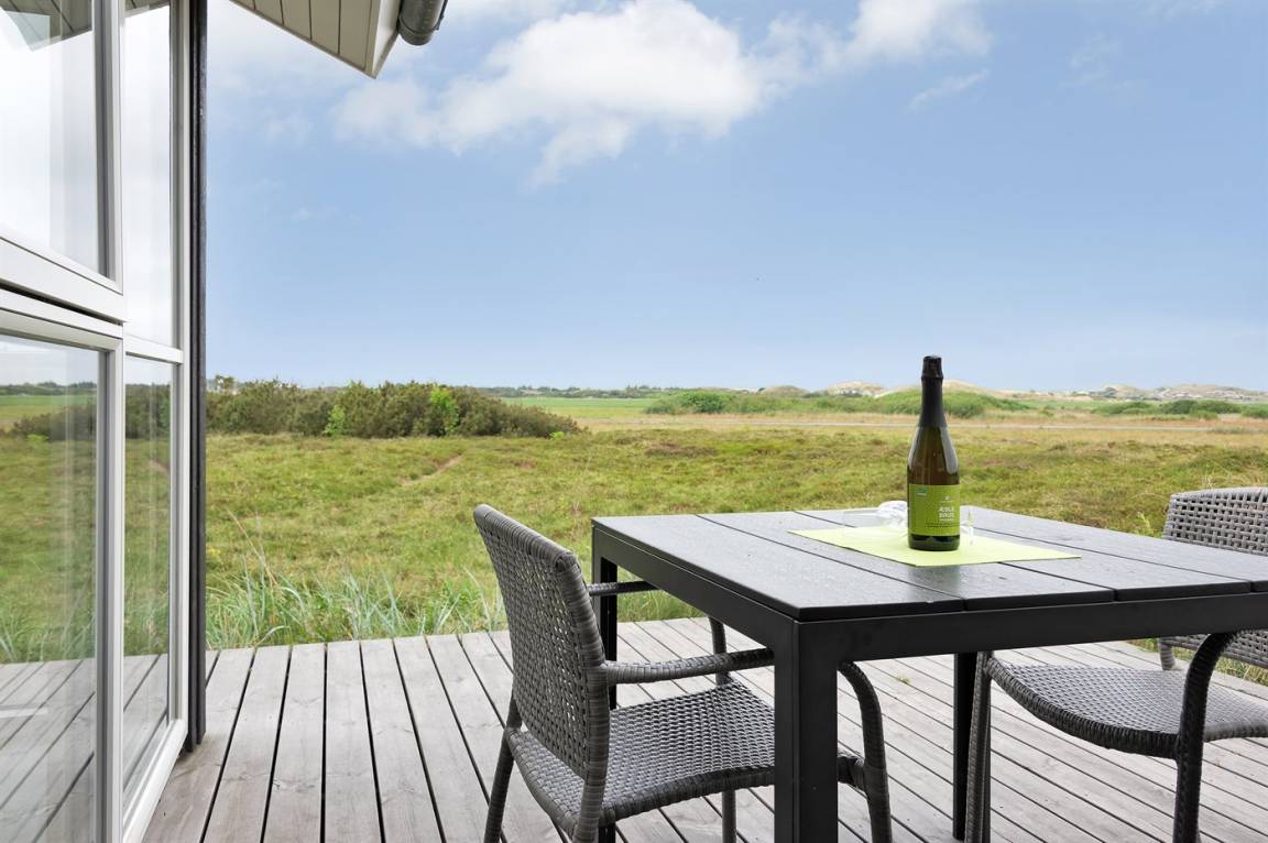 Dieses herrliche Luxusferienhaus mit unglaublich gutem Lichteinfall liegt auf einem Naturgrundstück mit schöner Aussicht über das Gebiet und der Dünenlandschaft. Das Haus ist gut gedämmt und 2012 aus Qualitätsmaterialien gebaut. Es gibt ein schönes, zum Teil überdachtes Terrassenareal mit Gartenmöbeln. 2 herrliche Badezimmer, beide mit Duschnische und beheizbarem Klinkerboden. Das eine enthält ferner einen 2-Pers.-Whirlpool und Sauna. Beheizbare Holzböden in den übrigen Räumen. Die schicke und gut ausgestattete Küche enthält u. a. Geschirrspüler, Mikrowelle, Tiefkühlgerät (100 l), Umluftofen und Herd mit Ceran-Feld. Das schöne Esszimmer ist mit dem geschmackvoll eingerichteten Wohnzimmer, von dem Sie die Aussicht auf die schöne Natur mit der Dünenlandschaft im Hintergrund genießen können, kombiniert. Im Wohnzimmer finden Sie Kaminofen, TV mit digitalem Satellitenanschluss, DVD-Spieler und Stereoanlage mit CD-Spieler. Die Schlafplätze verteilen sich auf 4 gute Schlafzimmer, alle mit Doppelbett. Von dem einen Zimmer haben Sie Ausgang zur Terrasse. Ein großer Aktivitätsraum mit Billard, Tischfußball, zusätzliches TV und einer kleinen Bar steht ebenfalls zu Ihrer Verfügung - der perfekte Platz zum gemütlichen Beisammensein. An weiterer Ausstattung können kostenlose, kabellose Internetverbindung (Computer ist mitzubringen), Waschmaschine und Wäschetrockner erwähnt werden. Für die jüngsten Feriengäste stehen Kinderbett und Kinderhochstuhl sowie Sandkasten und Schaukel zur Verfügung. Hinter dem Haus gibt es einen Außenfischreinigungsplatz. Es ist ein Ladestecker für Elektroautos installiert. Ein herrliches und modernes Ferienhaus mit einem guten Innenklima - sowohl für 1 als auch 2 Familien geeignet. Das Haus liegt in einem Gebiet mit guten Aktivitätsmöglichkeiten wie z. B. 27-Loch Golfplatz und Put & Take Angelsee. Ein Pfad führt vom Grundstück direkt an das Meer. Der Badeort Söndervig liegt nur wenige Minuten Fahrt vom Haus entfernt - hier finden Sie einen großen, modernen Supermarkt, Restaurants, verschiedene Läden, Bowling- und Fitnesscenter u. a. m. Übrigens: Das Haus ist voll gedämmt und es ist eine Erdheizung installiert, die die Heizkosten reduziert.