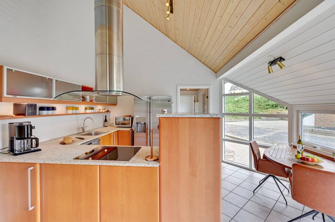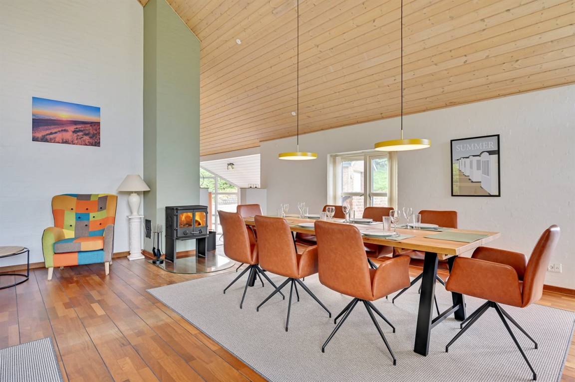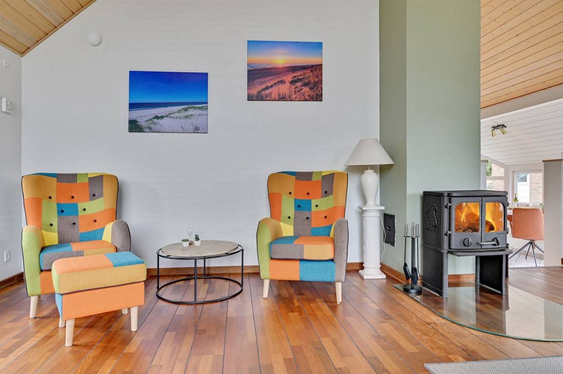 EinrichtungDas Ferienhaus eignet sich für 8 Personen sowie 1 Kleinkind bis zu 3 Jahren. Die Ferienunterkunft hat eine Wohnfläche von 144 m², ist 2-stöckig, und wurde 2003 gebaut. 2020 wurde die Ferienunterkunft teilweise renoviert. Es ist erlaubt 1 Haustier mitzubringen. Die Ferienunterkunft ist mit energiesparender Wärmepumpe ausgestattet. Fußbodenheizung im Wohnzimmer. Fußbodenheizung in allen Klinkerböden. Die Ferienunterkunft ist mit Waschmaschine ausgestattet. Wäschetrockner. Tiefkühlmöglichkeit mit 60 Liter Nutzinhalt. Es gibt außerdem einen Kaminofen.