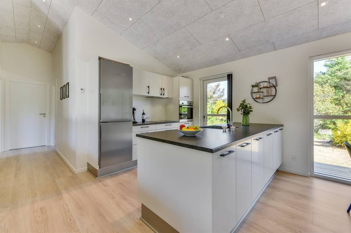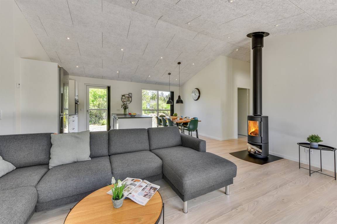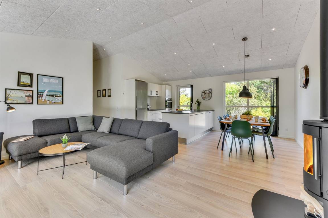 DraußenDie Ferienunterkunft liegt auf einem 2381 m² großen Naturgrundstück. Die Entfernung zum Meer beträgt 1800 m. Die Entfernung zum Fjord beträgt 800 m. Die nächste Einkaufsmöglichkeit liegt 1900 m entfernt. In einem Abstand von 700 m gibt es einen Golfplatz. Es steht ein 110 m² geschlossenes Terrassenareal zur Verfügung. Es ist ein Ladestecker für Elektroautos installiert. Ladestecker Typ 2. Parkplatz auf dem Grundstück.