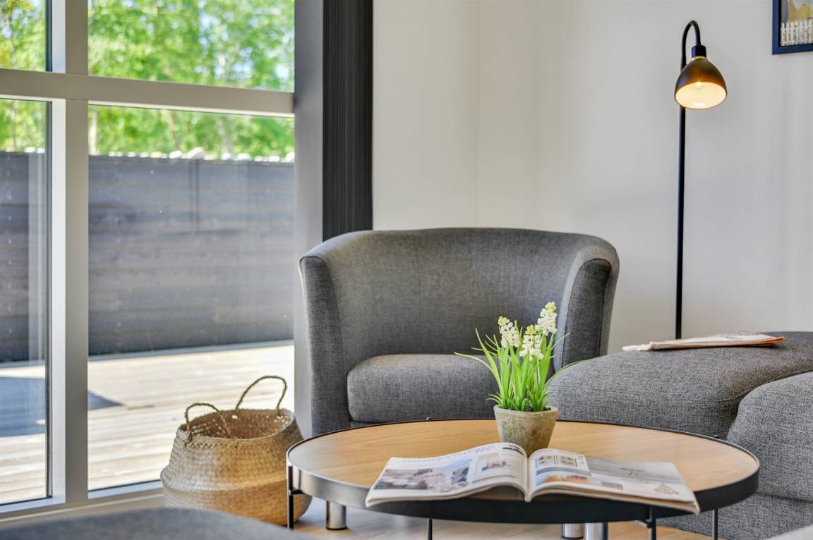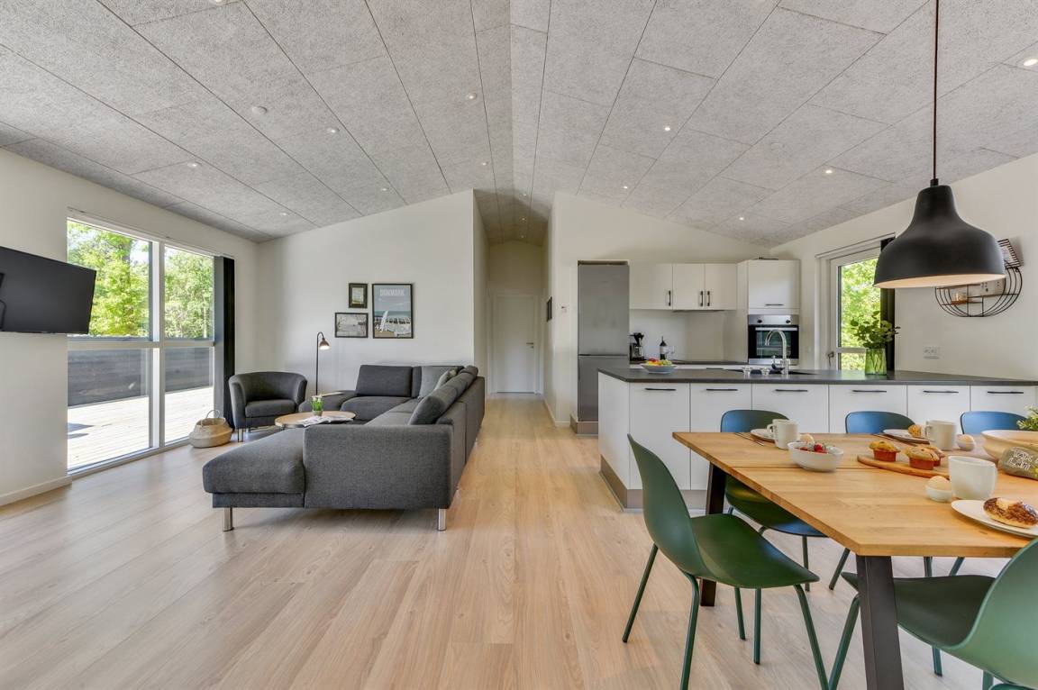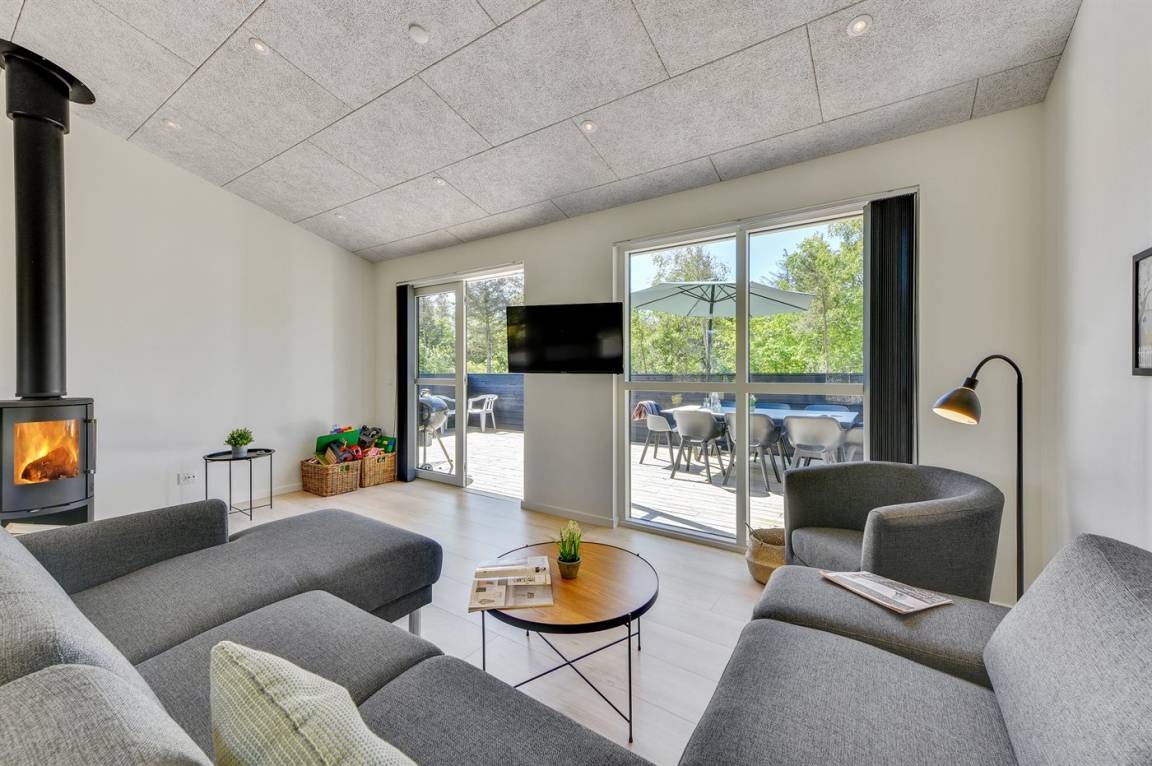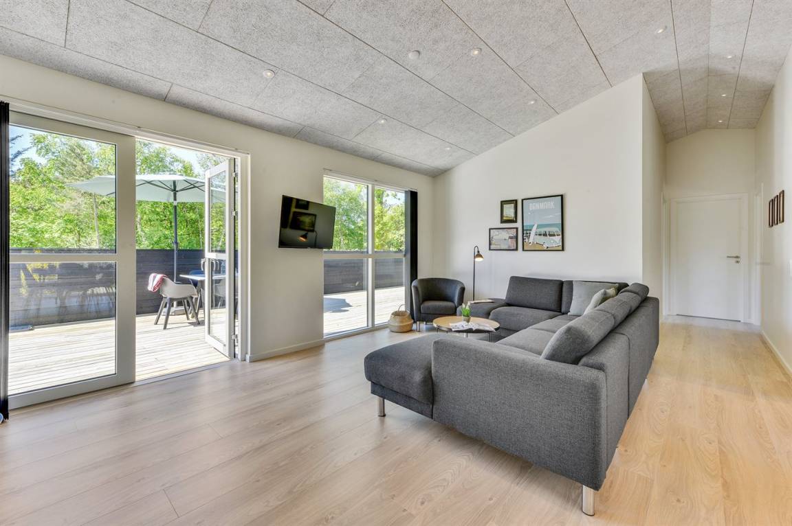 DraußenDie Ferienunterkunft liegt auf einem 2381 m² großen Naturgrundstück. Die Entfernung zum Meer beträgt 1800 m. Die Entfernung zum Fjord beträgt 800 m. Die nächste Einkaufsmöglichkeit liegt 1900 m entfernt. In einem Abstand von 700 m gibt es einen Golfplatz. Es steht ein 110 m² geschlossenes Terrassenareal zur Verfügung. Es ist ein Ladestecker für Elektroautos installiert. Ladestecker Typ 2. Parkplatz auf dem Grundstück.