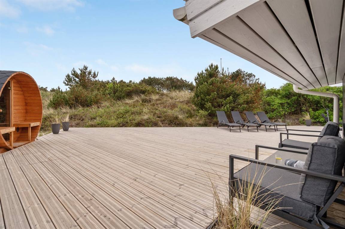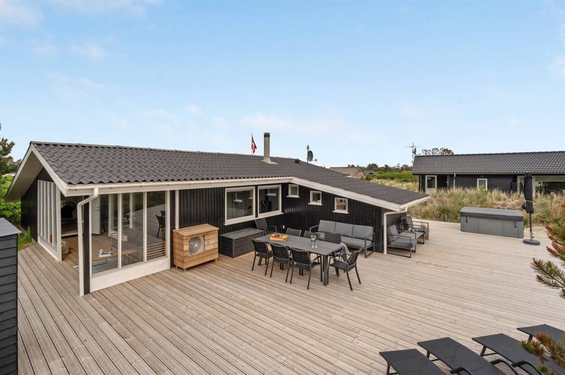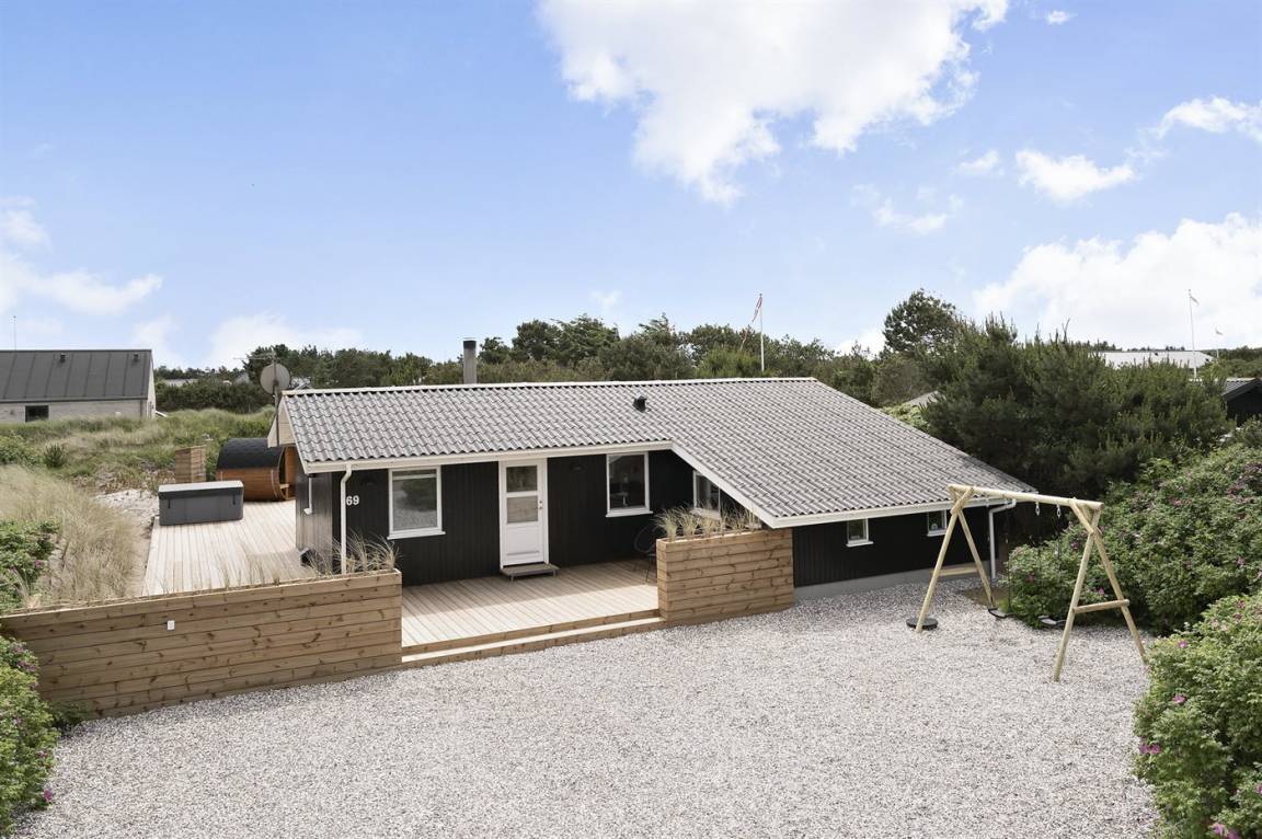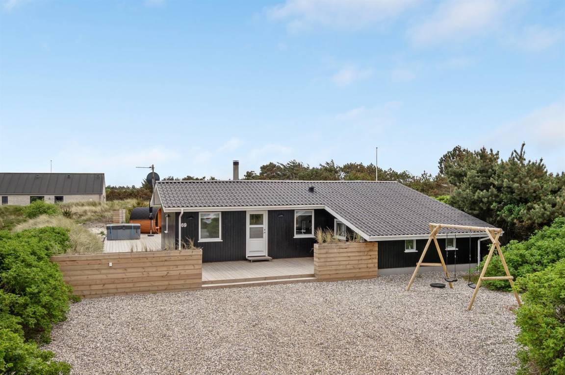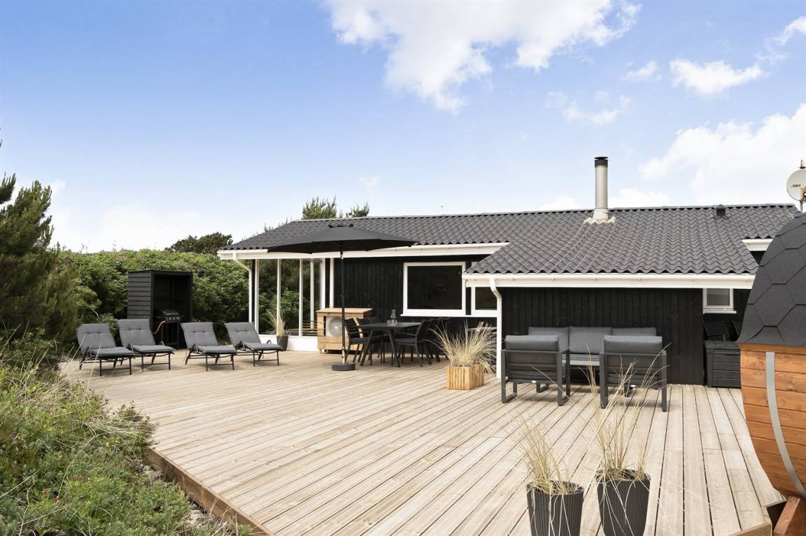 Dieses besonders schöne, neu renovierte Ferienhaus (2021) liegt in dem beliebten Feriengebiet Søndervig - zwischen Meer und Fjord. Genießen Sie die Auszeit mit einem guten Buch auf der Terrasse oder entspannen Sie im Außenwhirlpool oder in der Saunatonne.