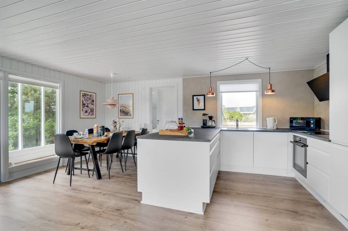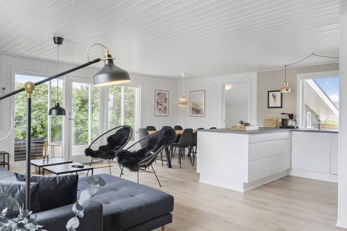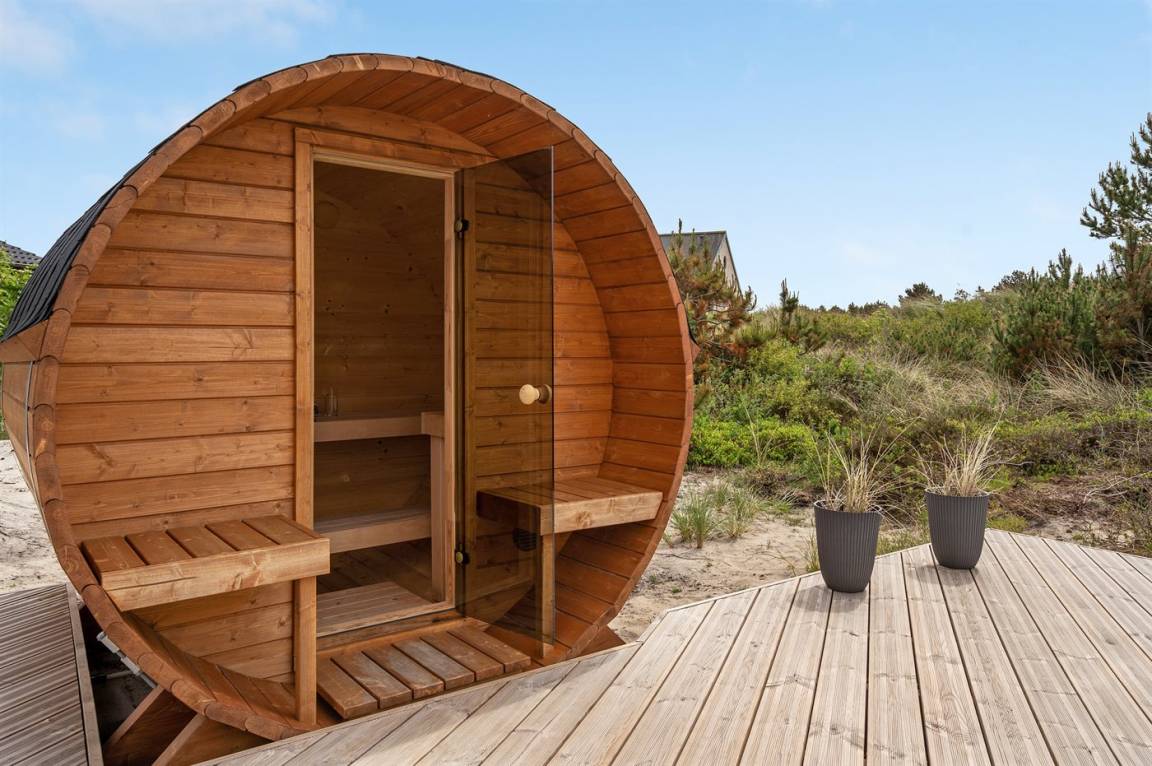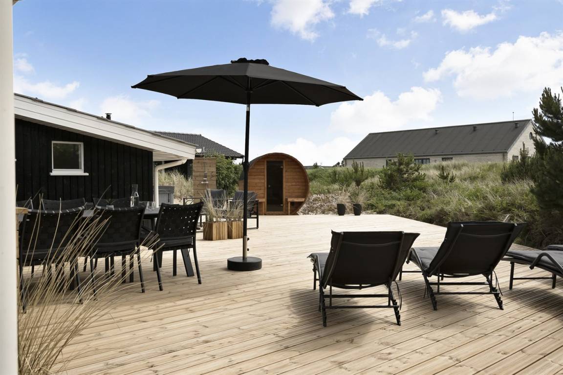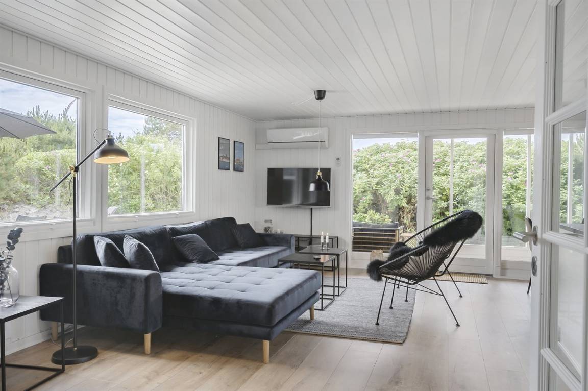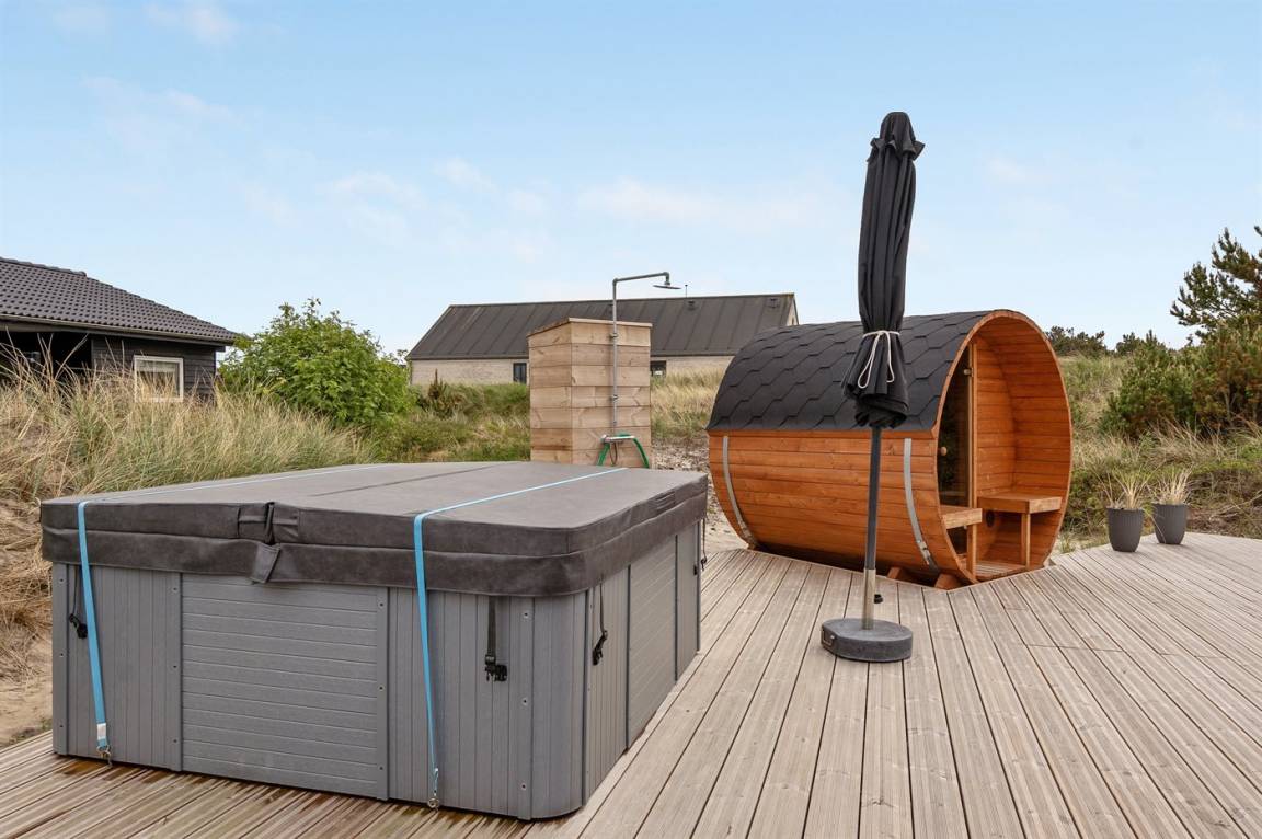 Dieses besonders schöne, neu renovierte Ferienhaus (2021) liegt in dem beliebten Feriengebiet Søndervig - zwischen Meer und Fjord. Genießen Sie die Auszeit mit einem guten Buch auf der Terrasse oder entspannen Sie im Außenwhirlpool oder in der Saunatonne.
