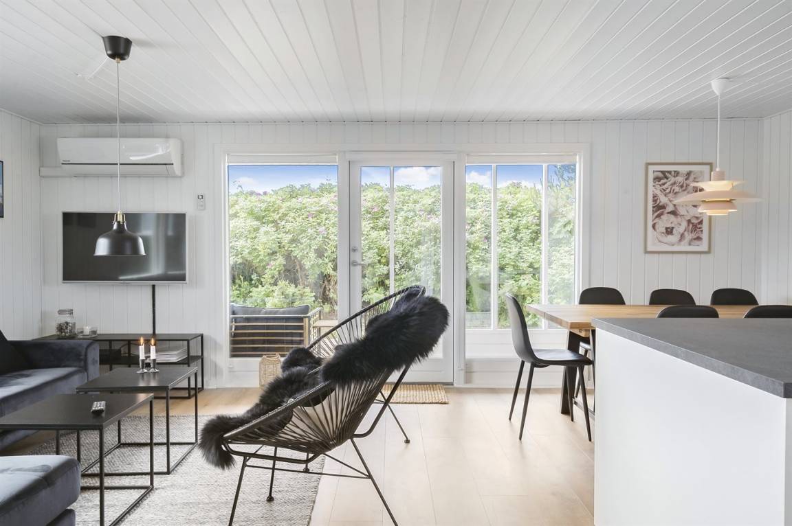 EinrichtungDas Ferienhaus eignet sich für 6 Personen sowie 1 Kleinkind bis zu 3 Jahren. Die Ferienunterkunft hat eine Wohnfläche von 90 m² und wurde 1967 gebaut. 2021 wurde die Ferienunterkunft renoviert. Haustiere dürfen nicht mitgebracht werden. Die Ferienunterkunft ist mit energiesparender Wärmepumpe ausgestattet. Die Ferienunterkunft ist mit Waschmaschine ausgestattet. Wäschetrockner. Tiefkühlmöglichkeit mit 60 Liter Nutzinhalt. Es gibt außerdem einen Kaminofen. Für die jüngsten Feriengäste ist 1 Kinderhochstuhl vorhanden.