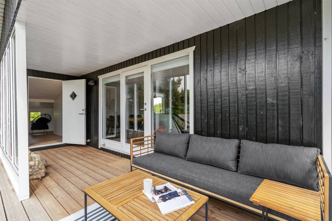 DraußenDie Ferienunterkunft liegt auf einem 1206 m² großen Naturgrundstück. Die Entfernung zum Meer beträgt 500 m. Die nächste Einkaufsmöglichkeit liegt 1000 m entfernt. Es steht ein 240 m² Terrassenareal zur Verfügung. Außerdem gibt es 10 m² überdachte Terrasse. Schaukel. Sandkasten. Außensauna. Außendusche. Parkplatz auf dem Grundstück.